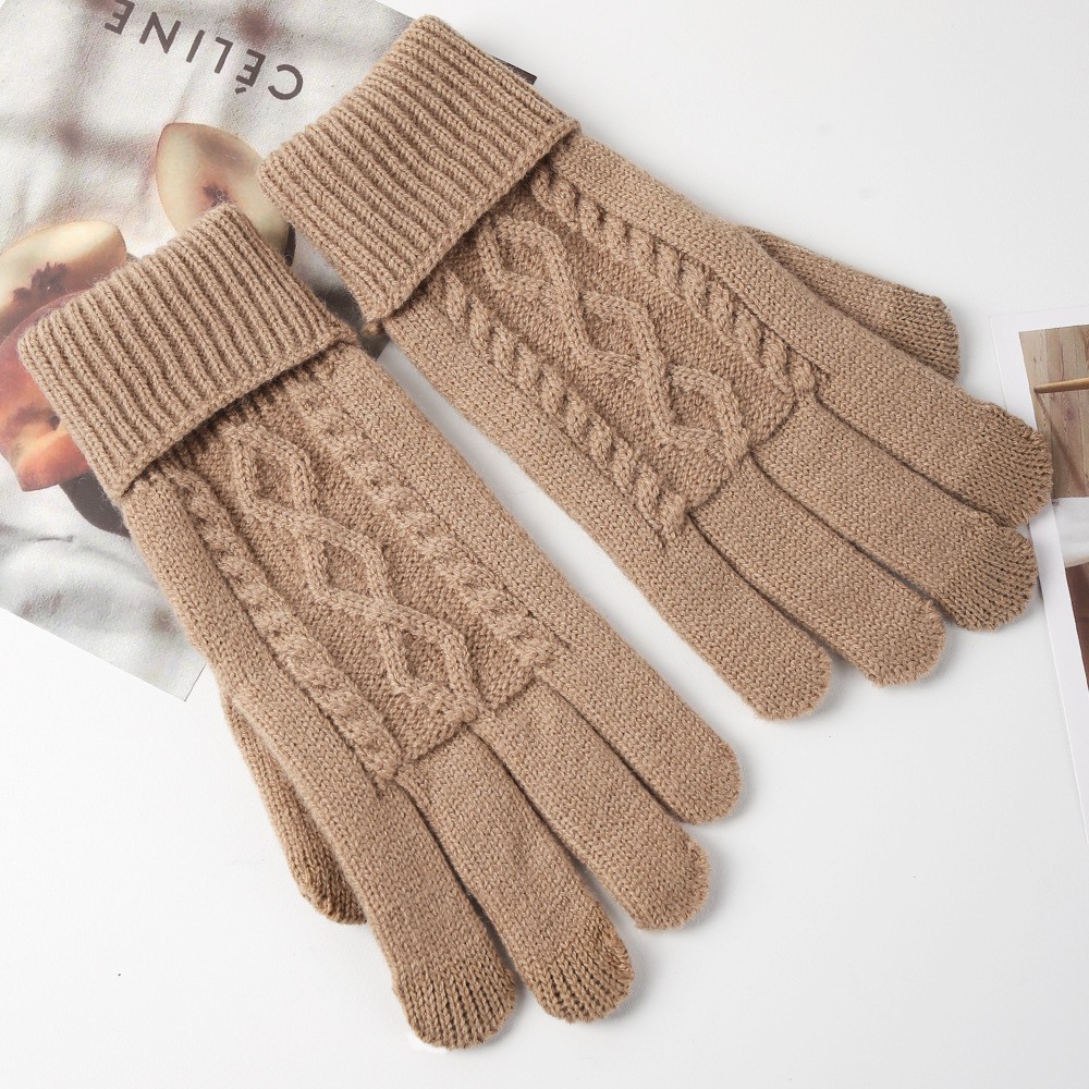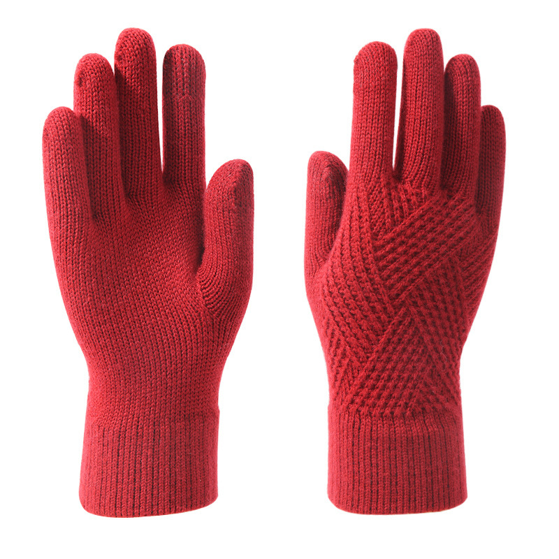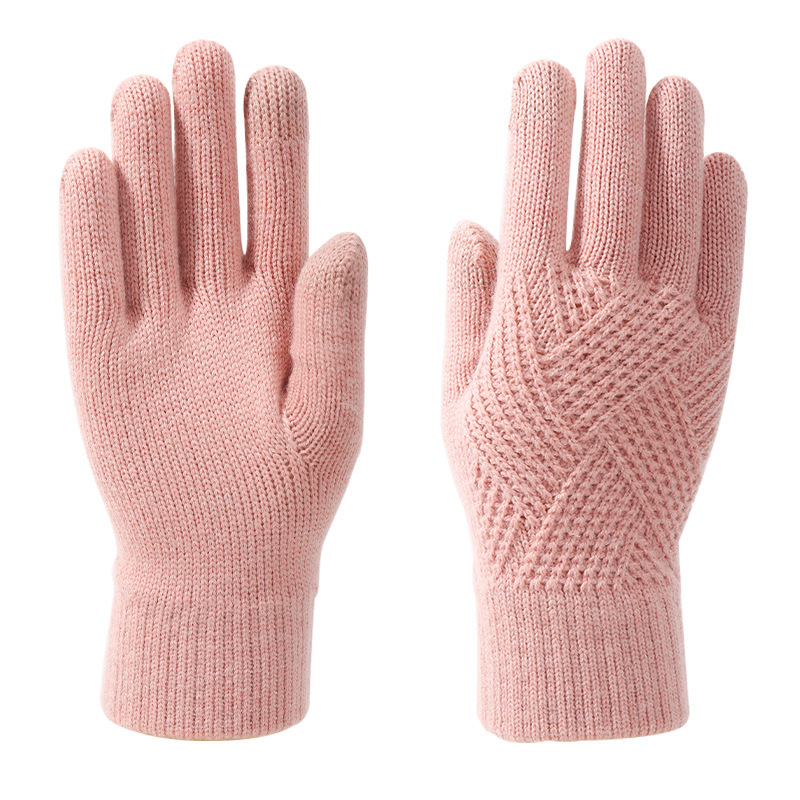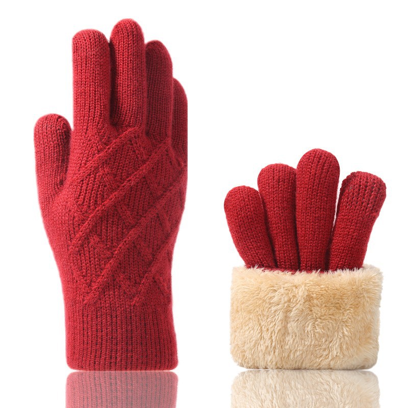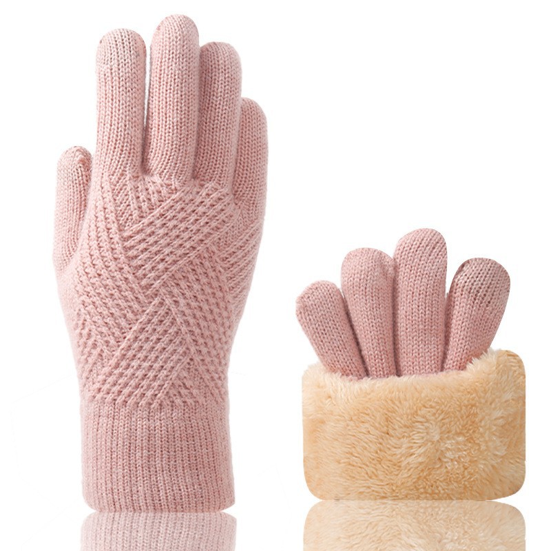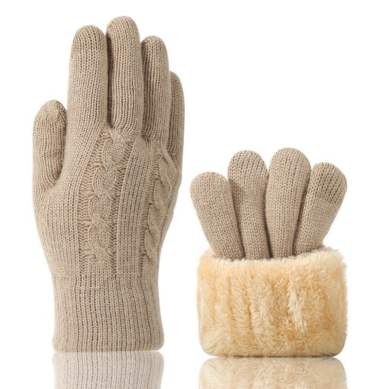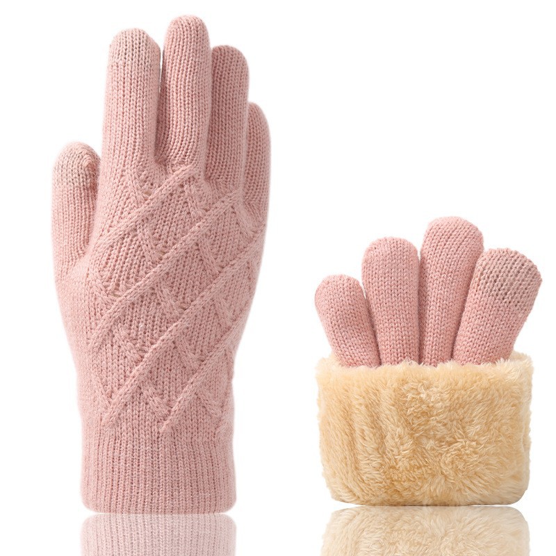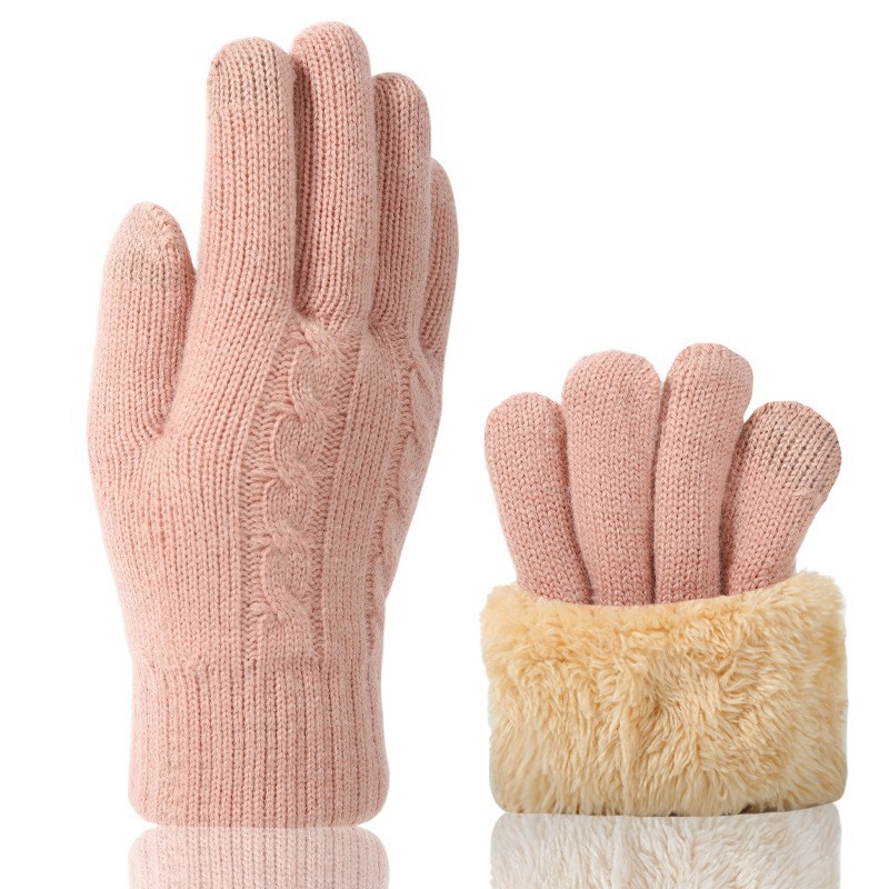 터치스크린이 있는 여성용 겨울 장갑, 이중 레이어 탄성 보온 니트, 플러시 안감, 추운 날씨 산책용