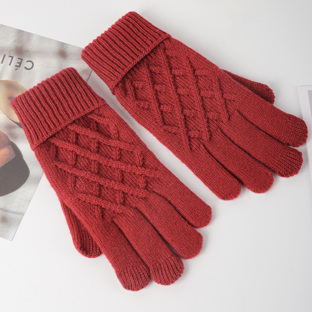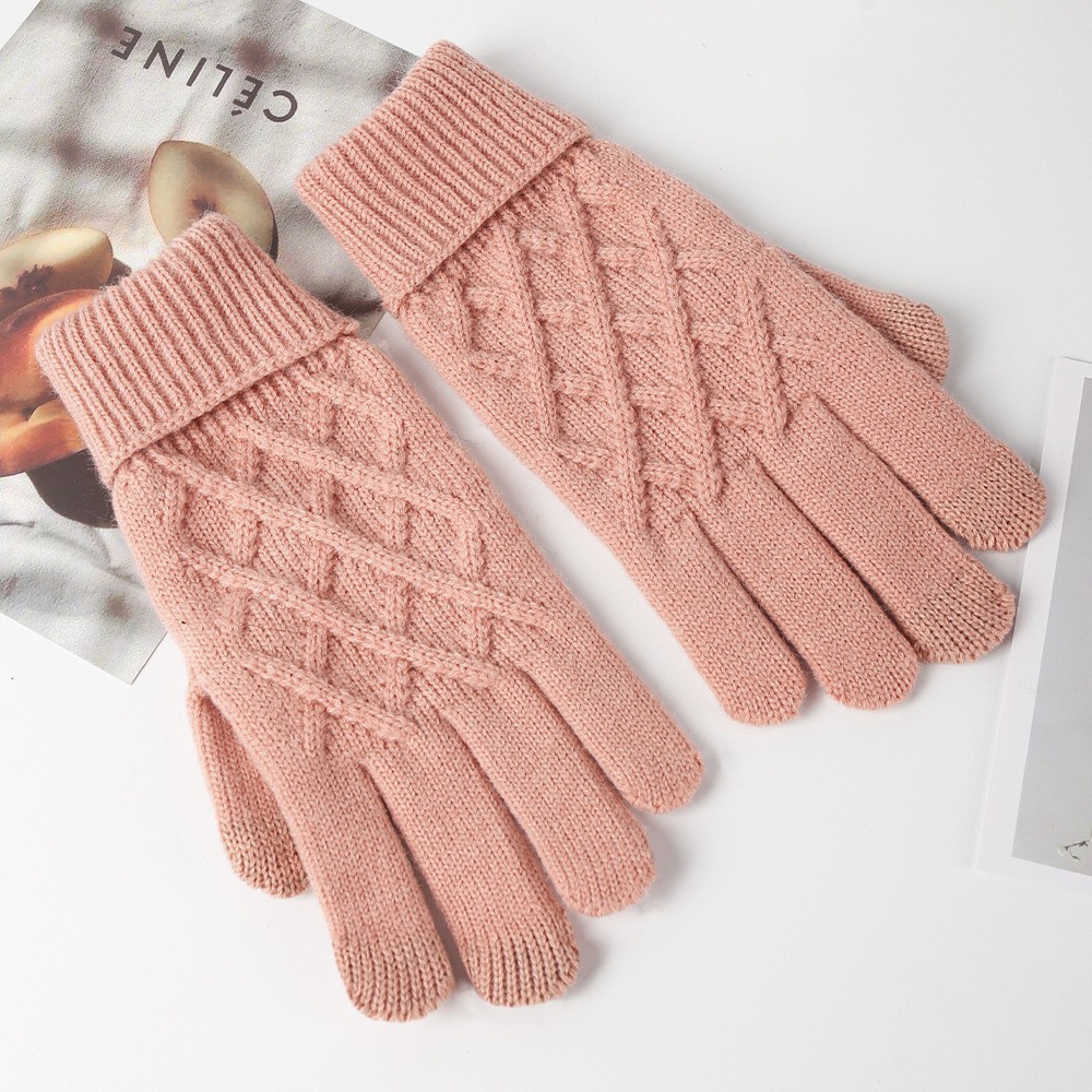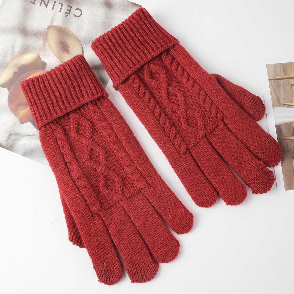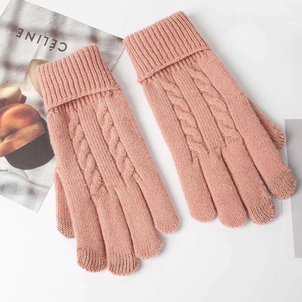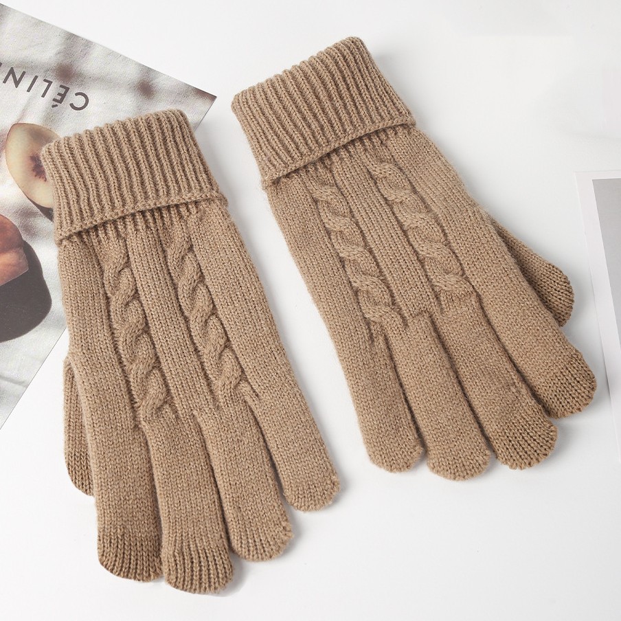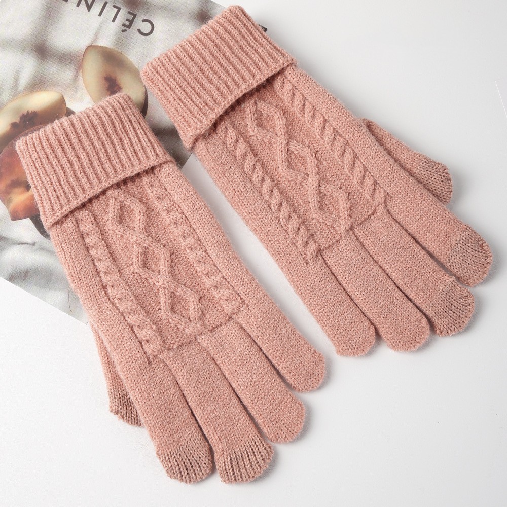 터치스크린이 있는 여성용 겨울 장갑, 이중 레이어 탄성 보온 니트, 플러시 안감, 추운 날씨 산책용