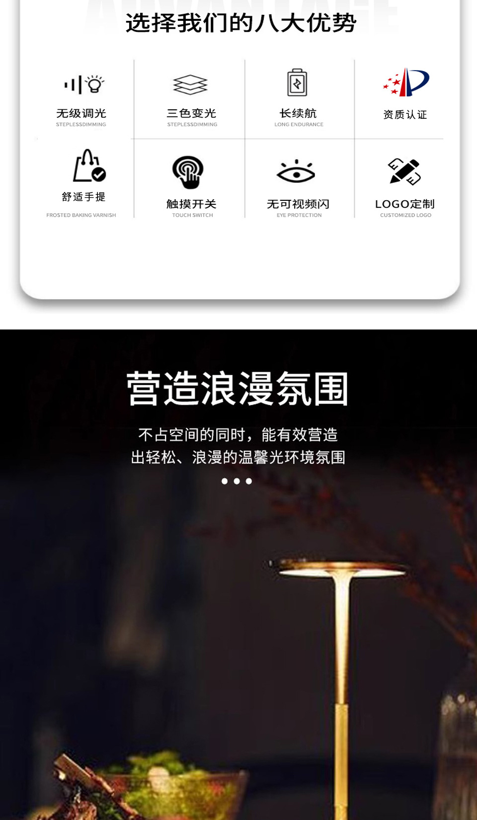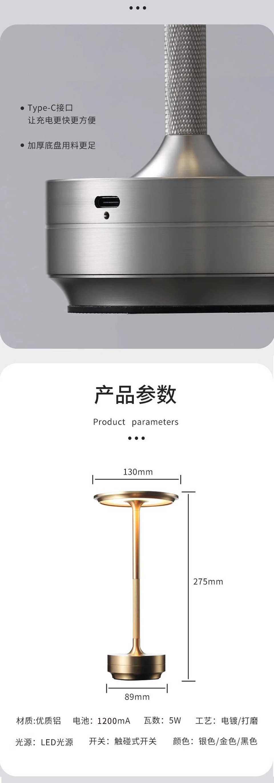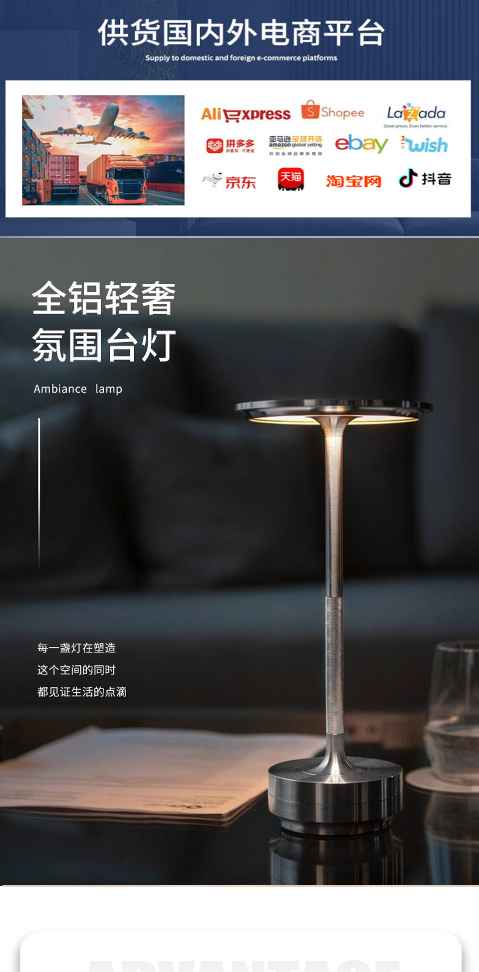 국경 산업 바람 모든 알루미늄 테이블 램프 LED 레스토랑 바 클리어 바 I 형 테이블 램프 터치 충전식 UFO 테이블 램프