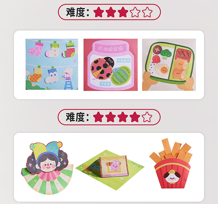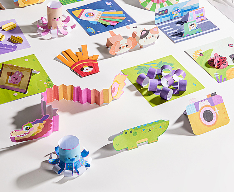 Meile 어린 시절 수제 종이 컷 스티커 세트 어린이 DIY 종이 접기 책 유치원 예술 작품 소재 장난감스토어 가기