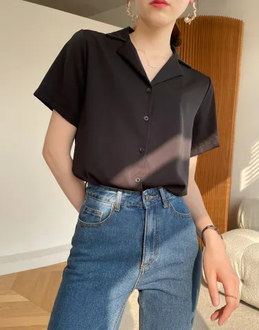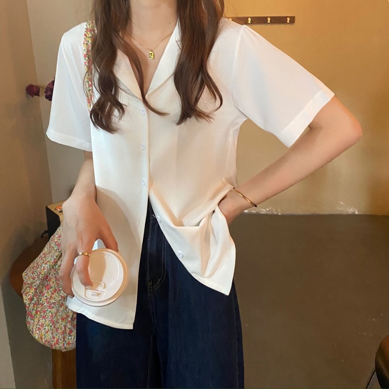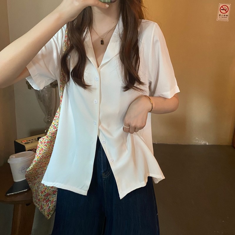 2024 년 봄과 가을 여자 올매치 반팔 셔츠 일본과 한국 캐주얼 루즈 옷깃 셔츠 톱 여자스토어 가기