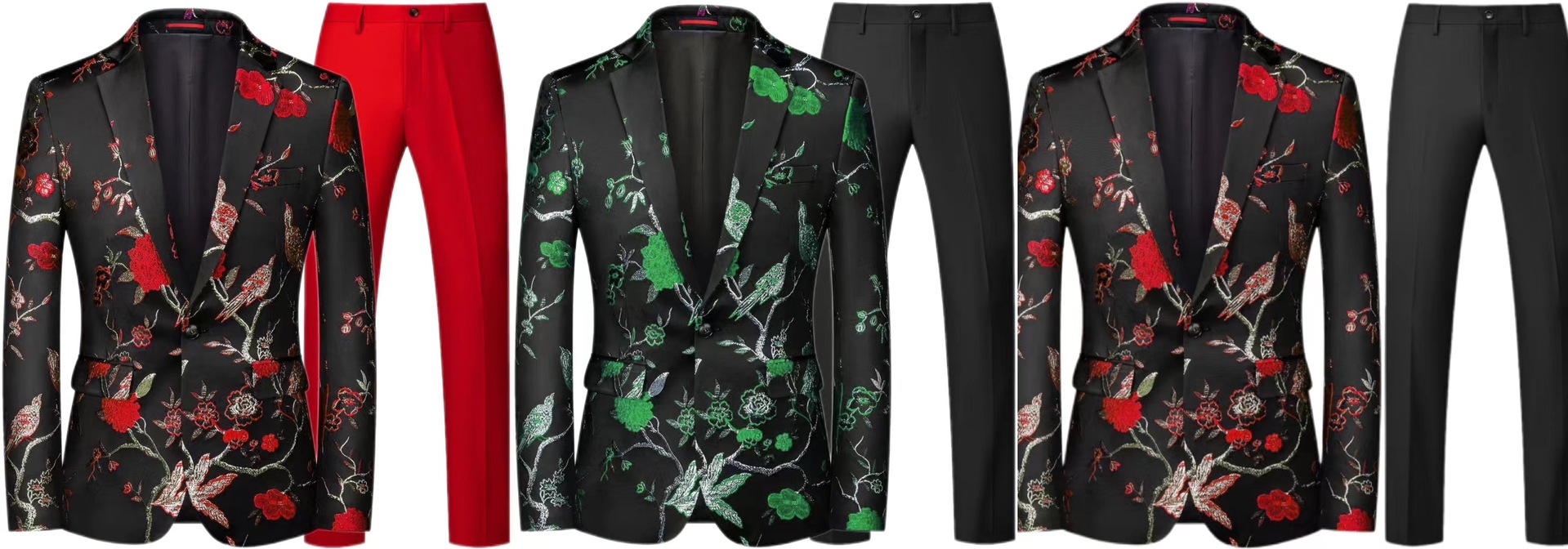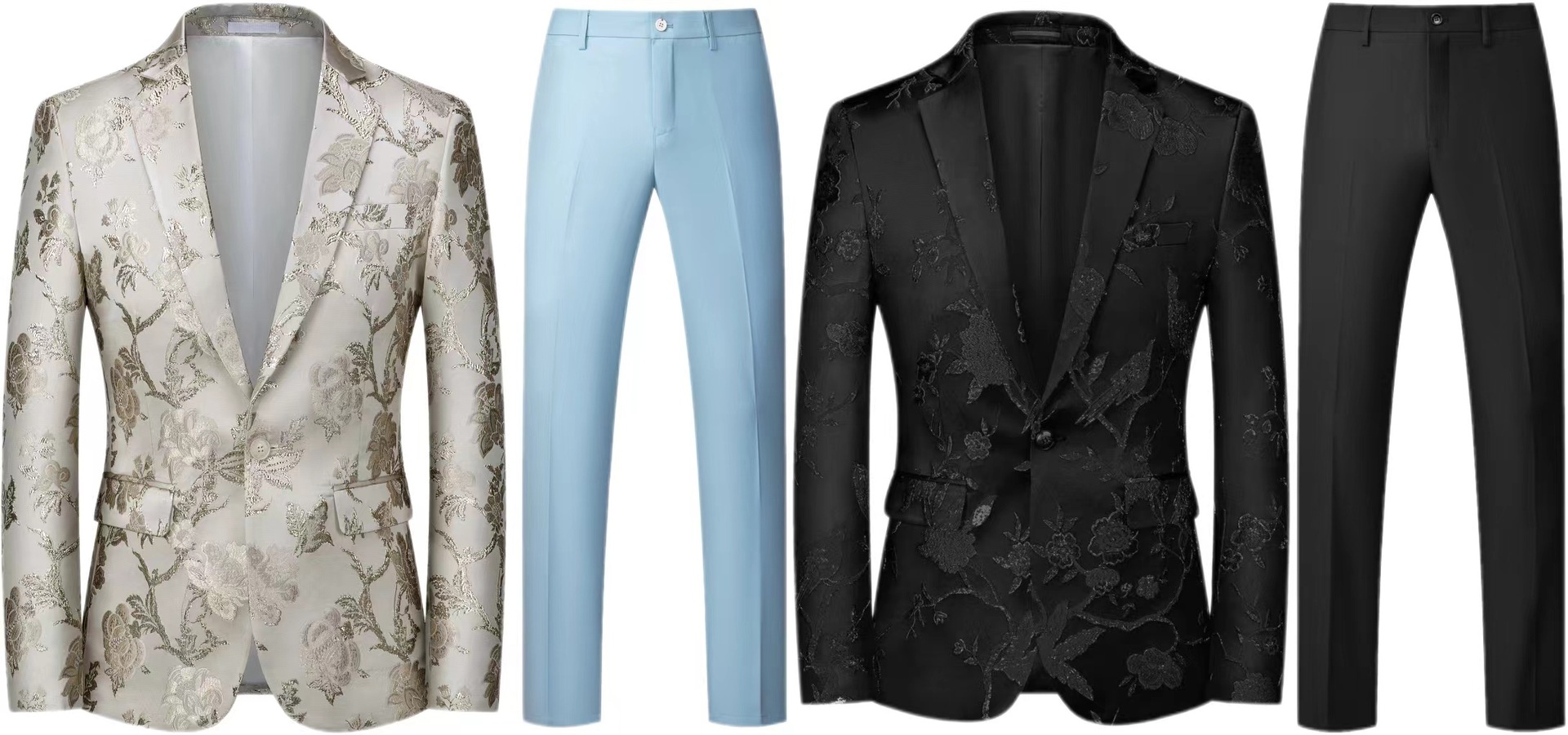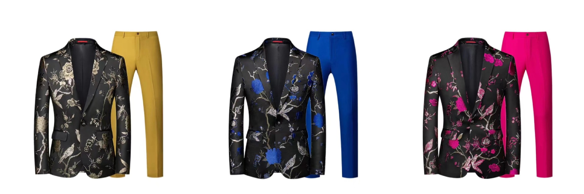 아마존 남성 패션 자카드 컬러 세트 세트 성격 무대 공연 연회 캐주얼 세트 투피스스토어 가기