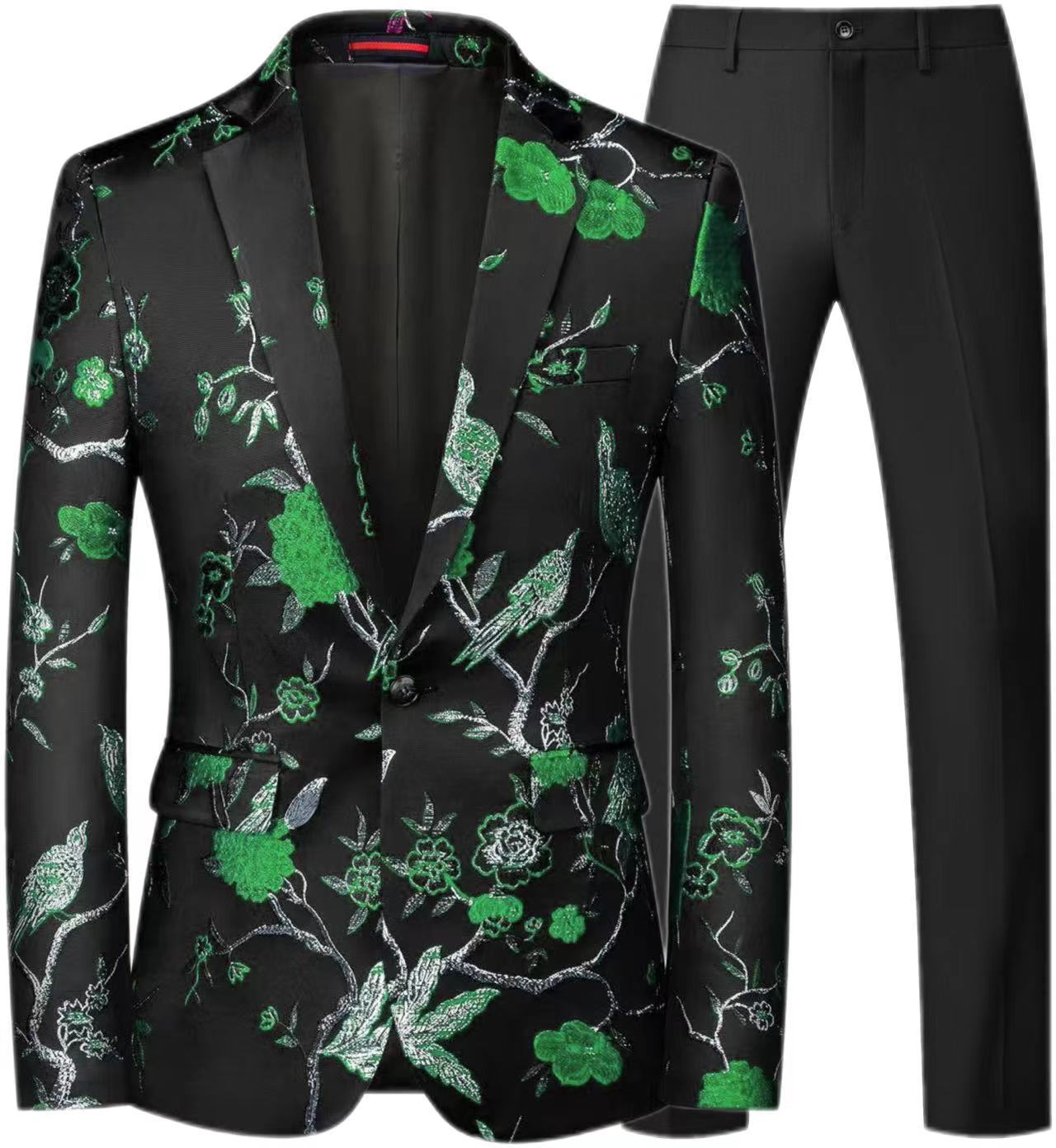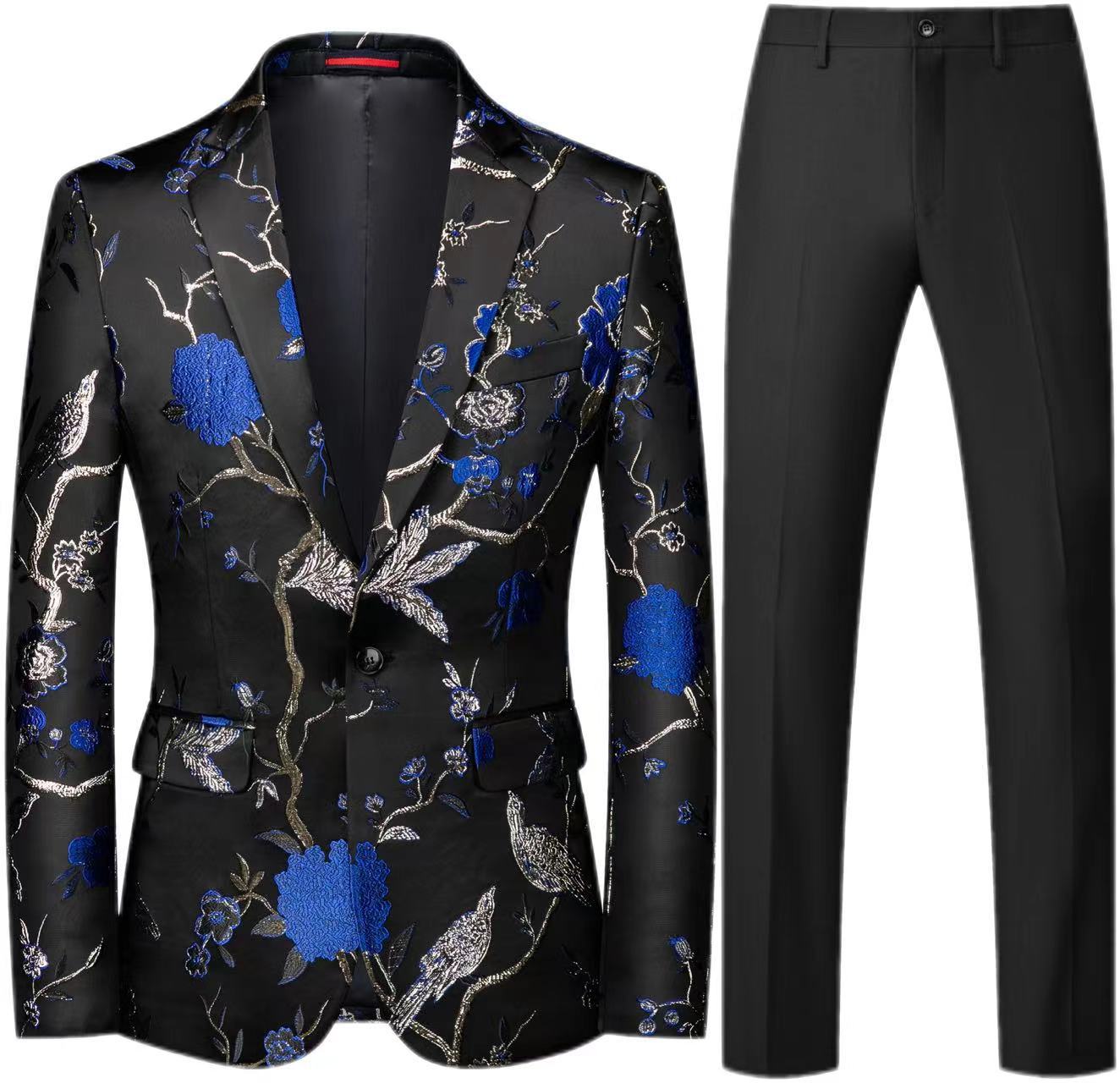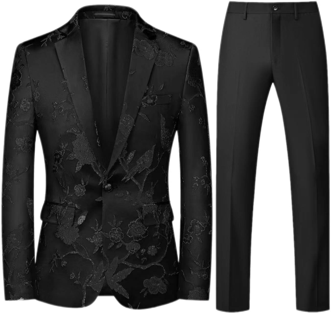 아마존 남성 패션 자카드 컬러 세트 세트 성격 무대 공연 연회 캐주얼 세트 투피스