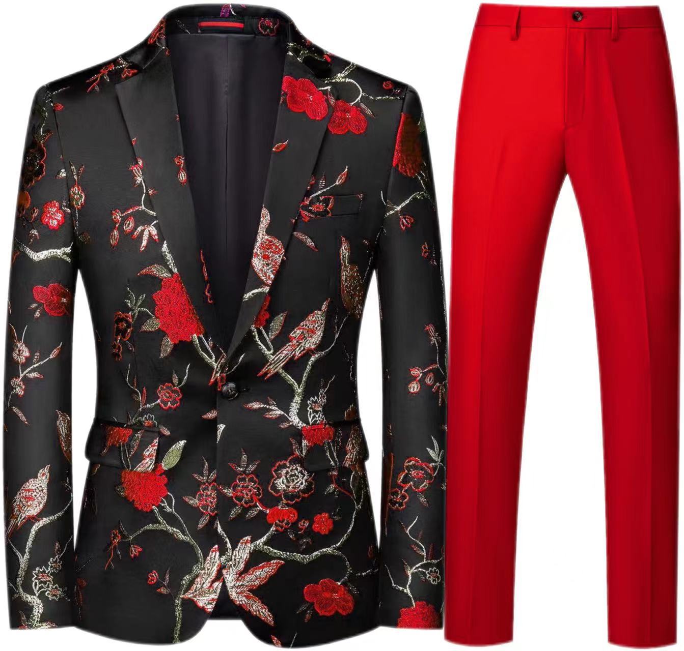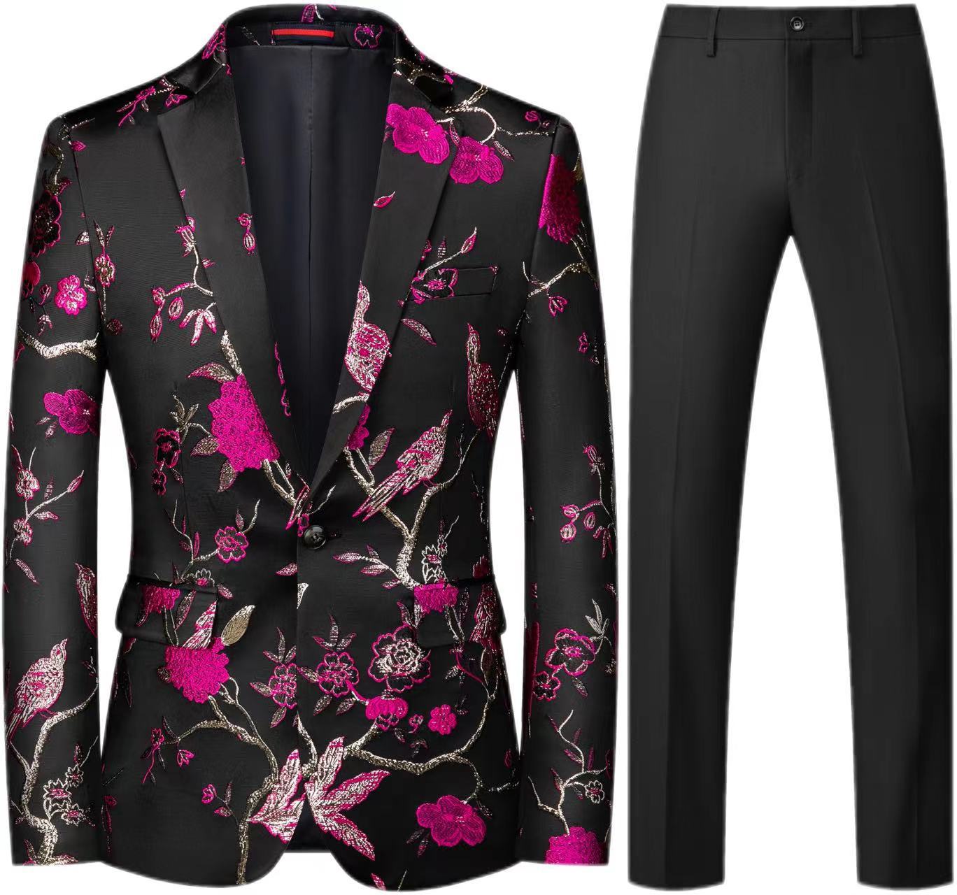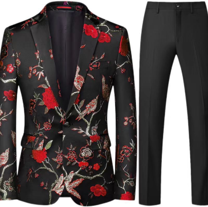 아마존 남성 패션 자카드 컬러 세트 세트 성격 무대 공연 연회 캐주얼 세트 투피스