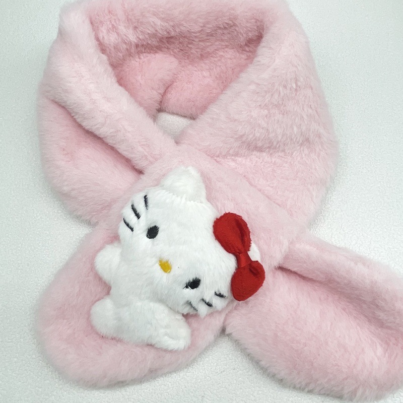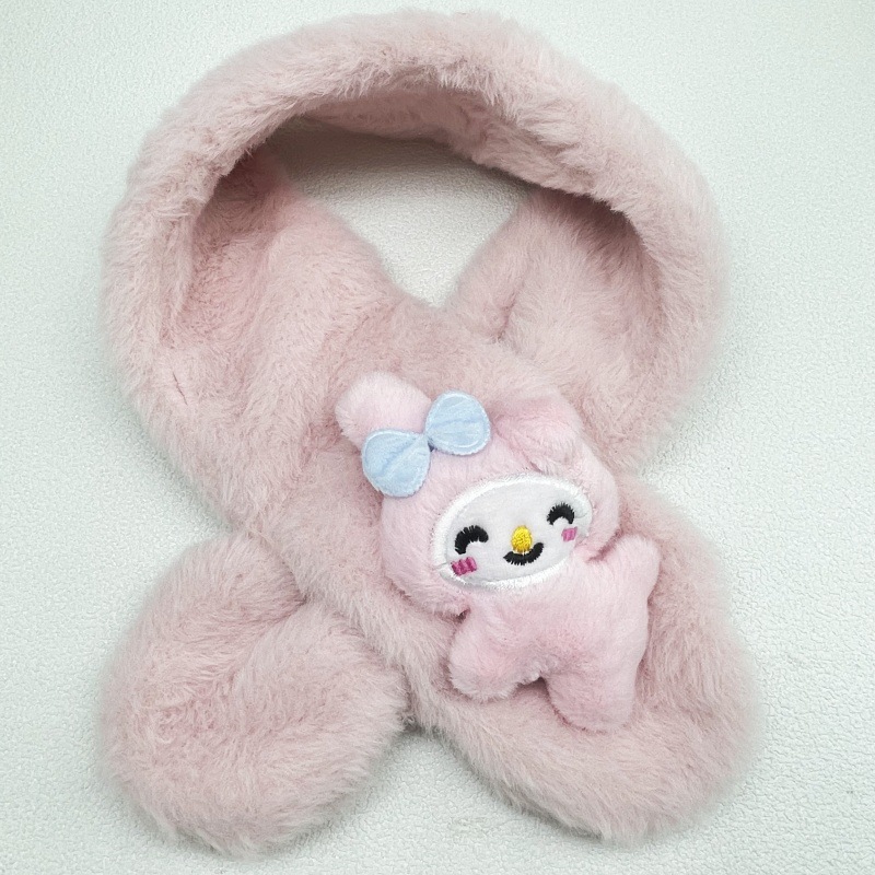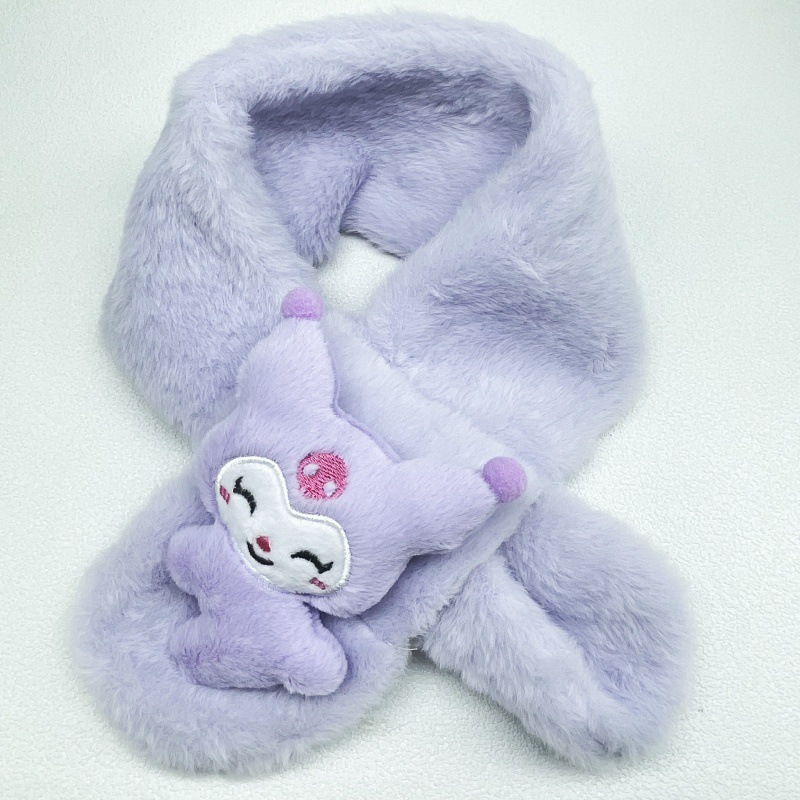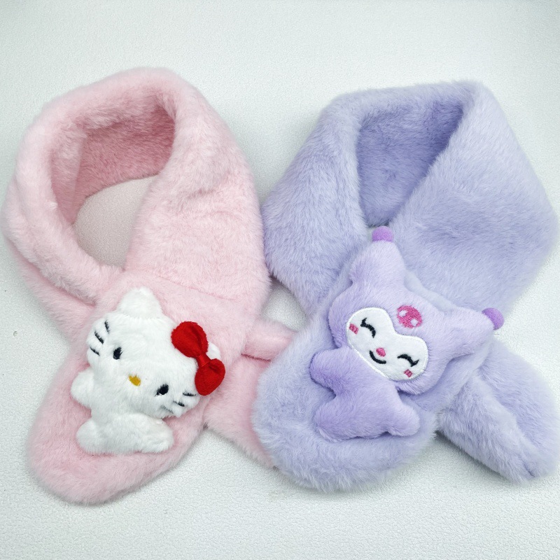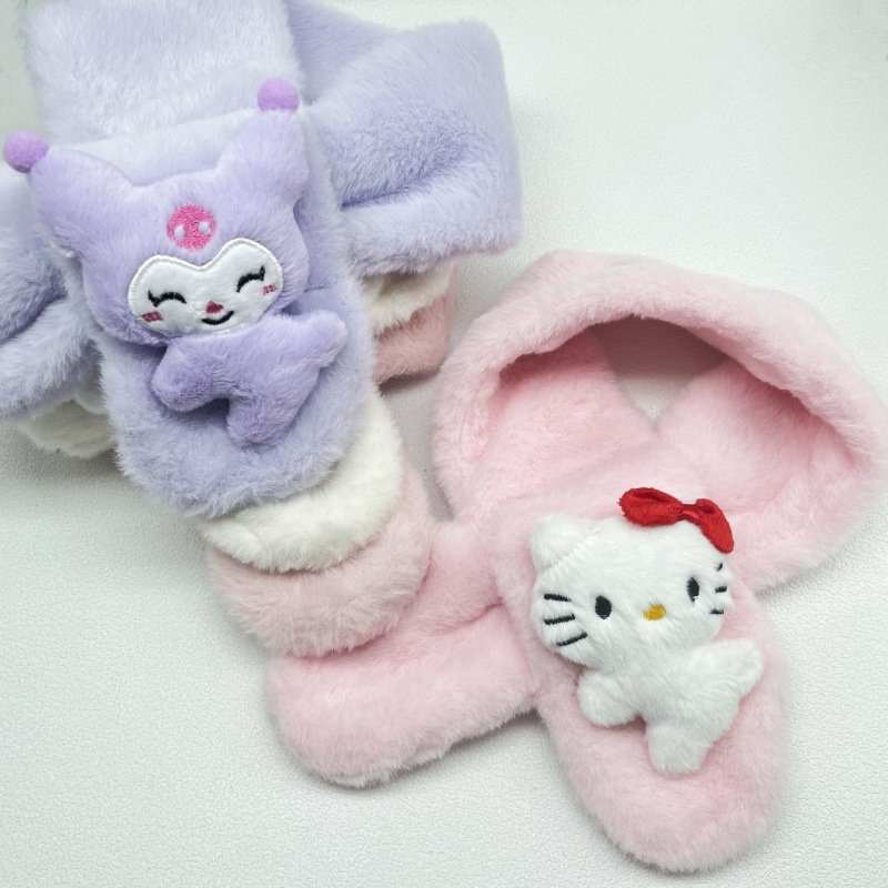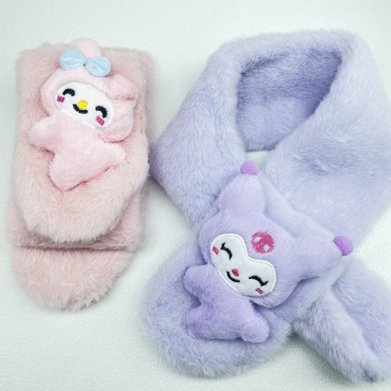 새로운 가을과 겨울 봉제 어린이 스카프 귀여운 만화 산리오 아기 스카프 두꺼운 모방 토끼 모피 크로스 스카프