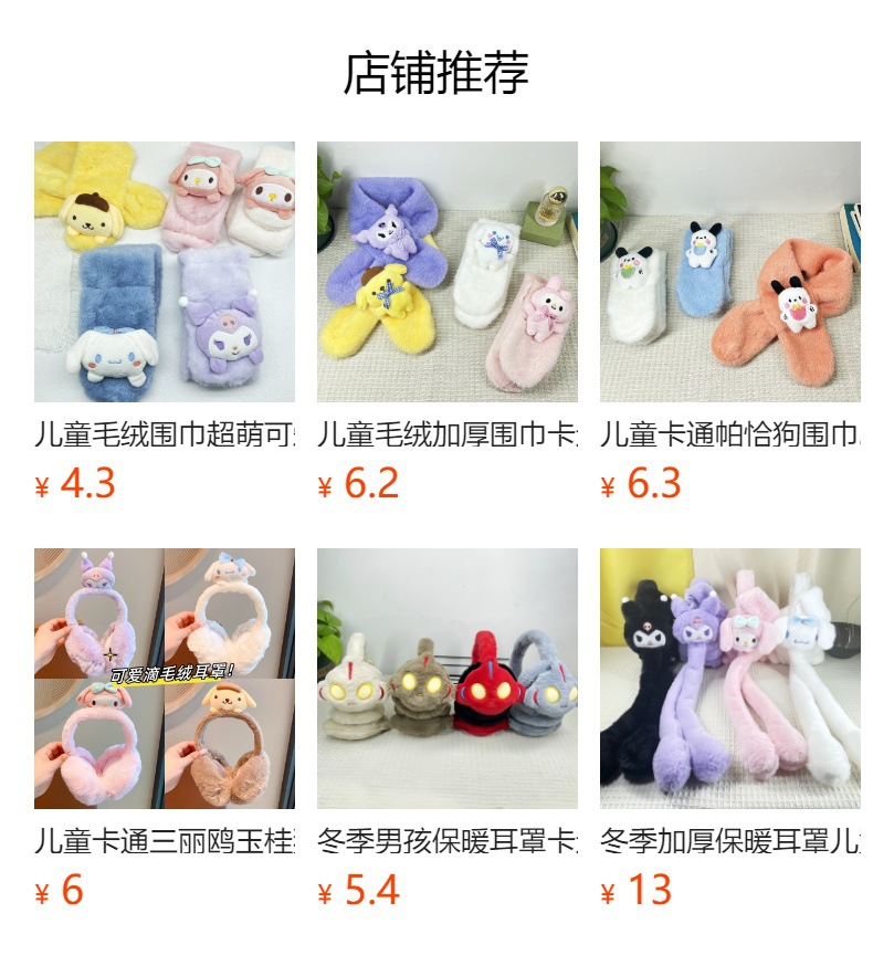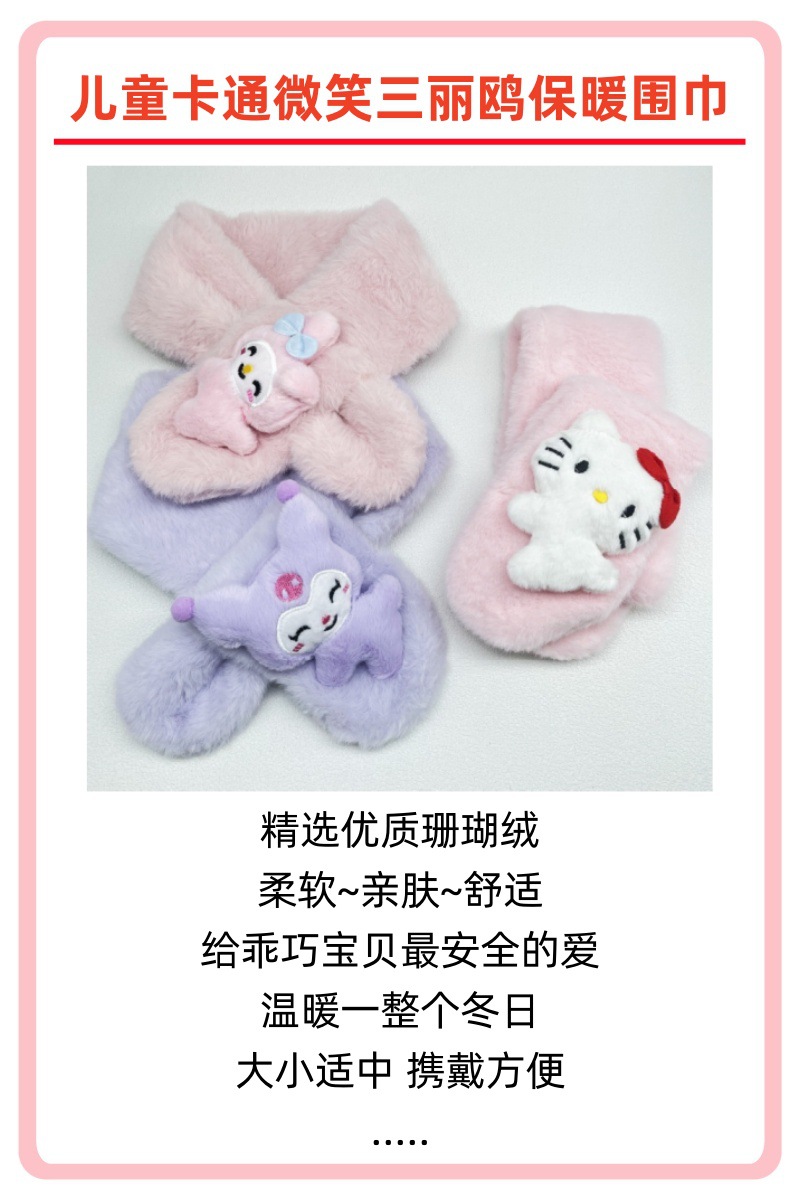 새로운 가을과 겨울 봉제 어린이 스카프 귀여운 만화 산리오 아기 스카프 두꺼운 모방 토끼 모피 크로스 스카프스토어 가기