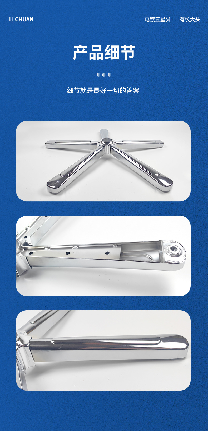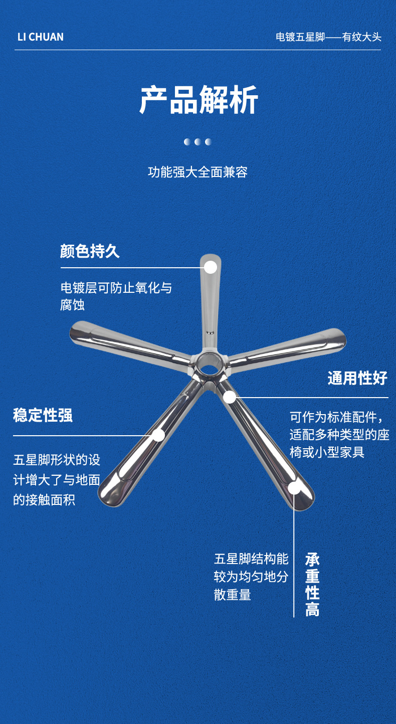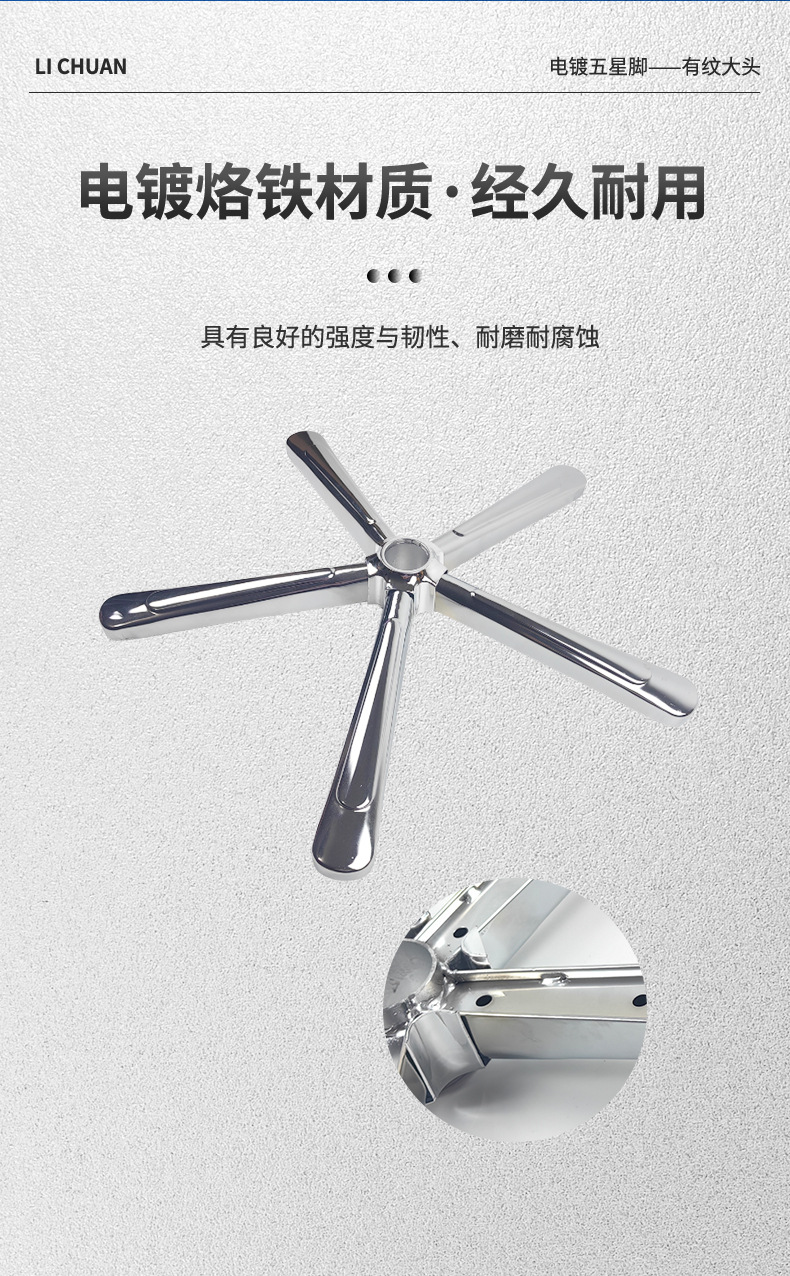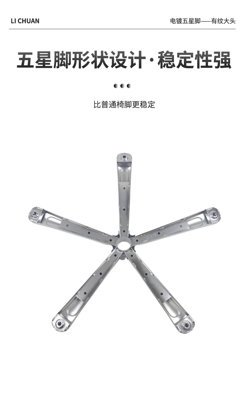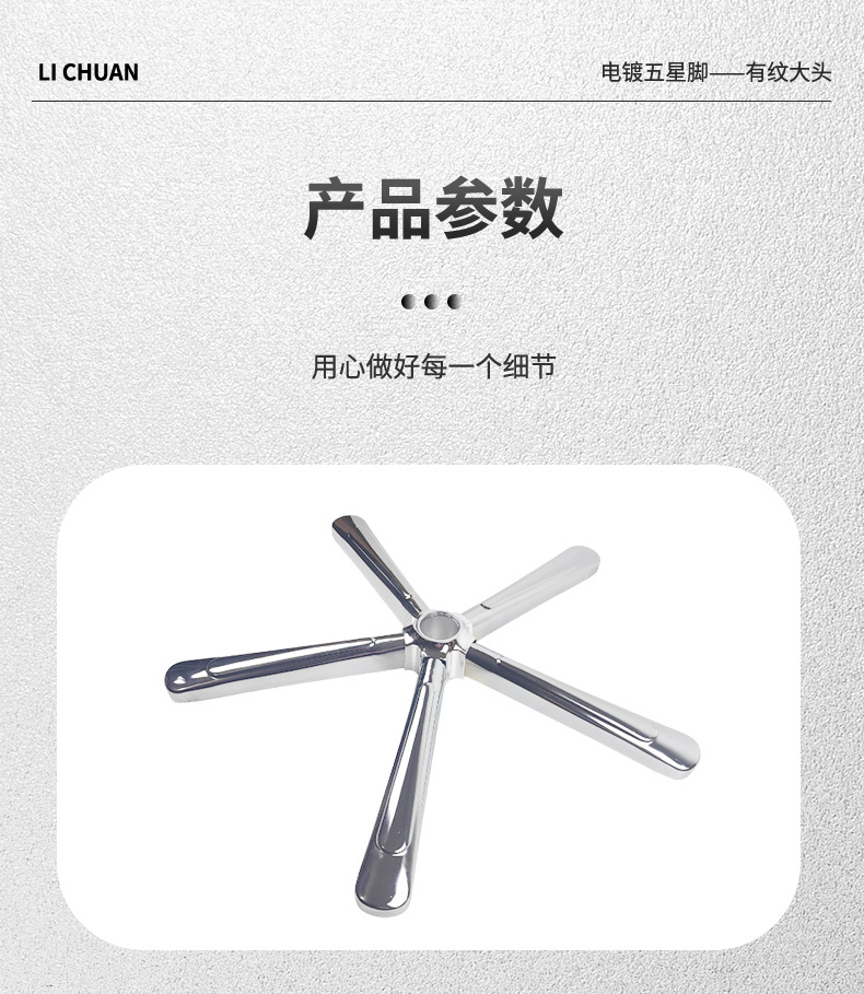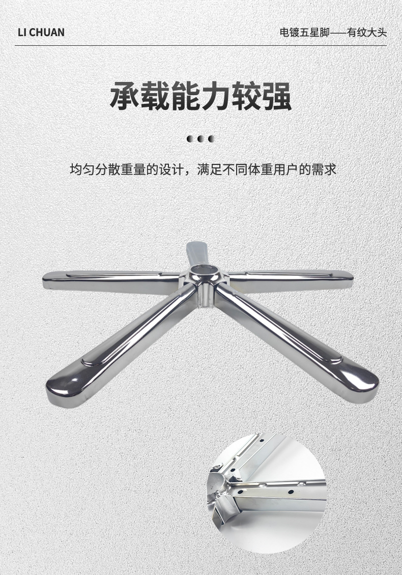 대형 헤드 전기 도금 하드웨어가 있는 리프팅 회전 의자 베이스 미국식 컴퓨터 의자 베이스 강철 5성 삼각대 사용자 정의스토어 가기