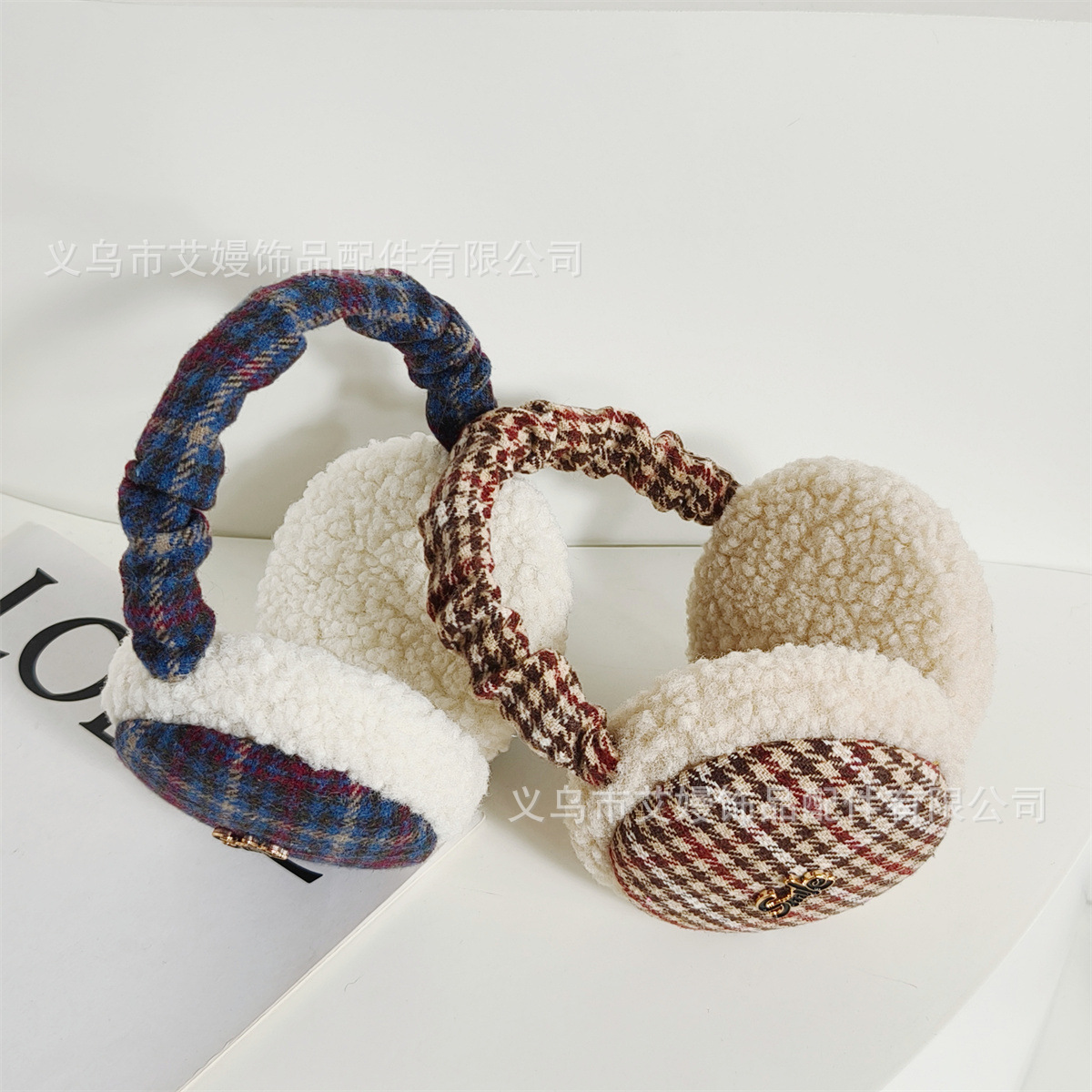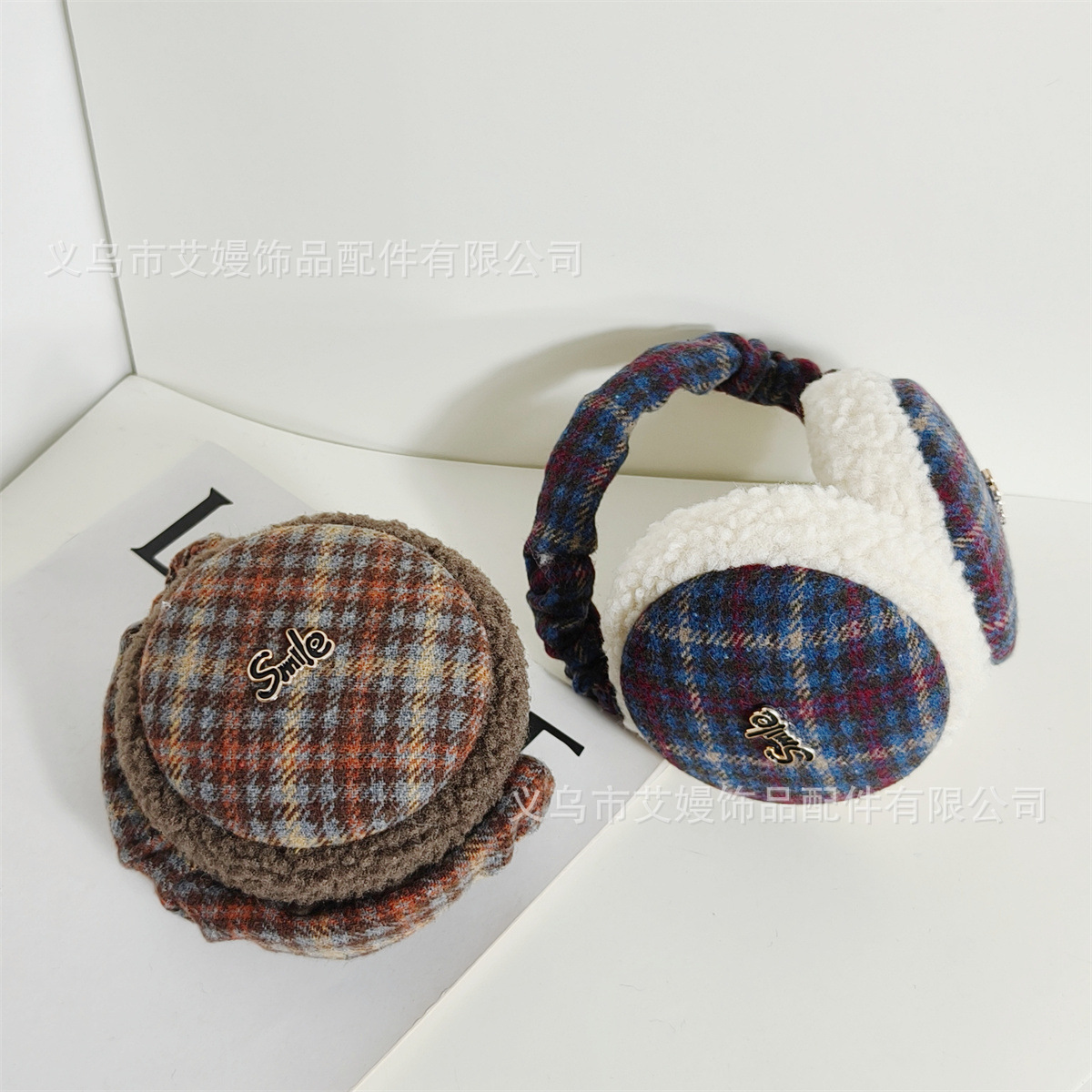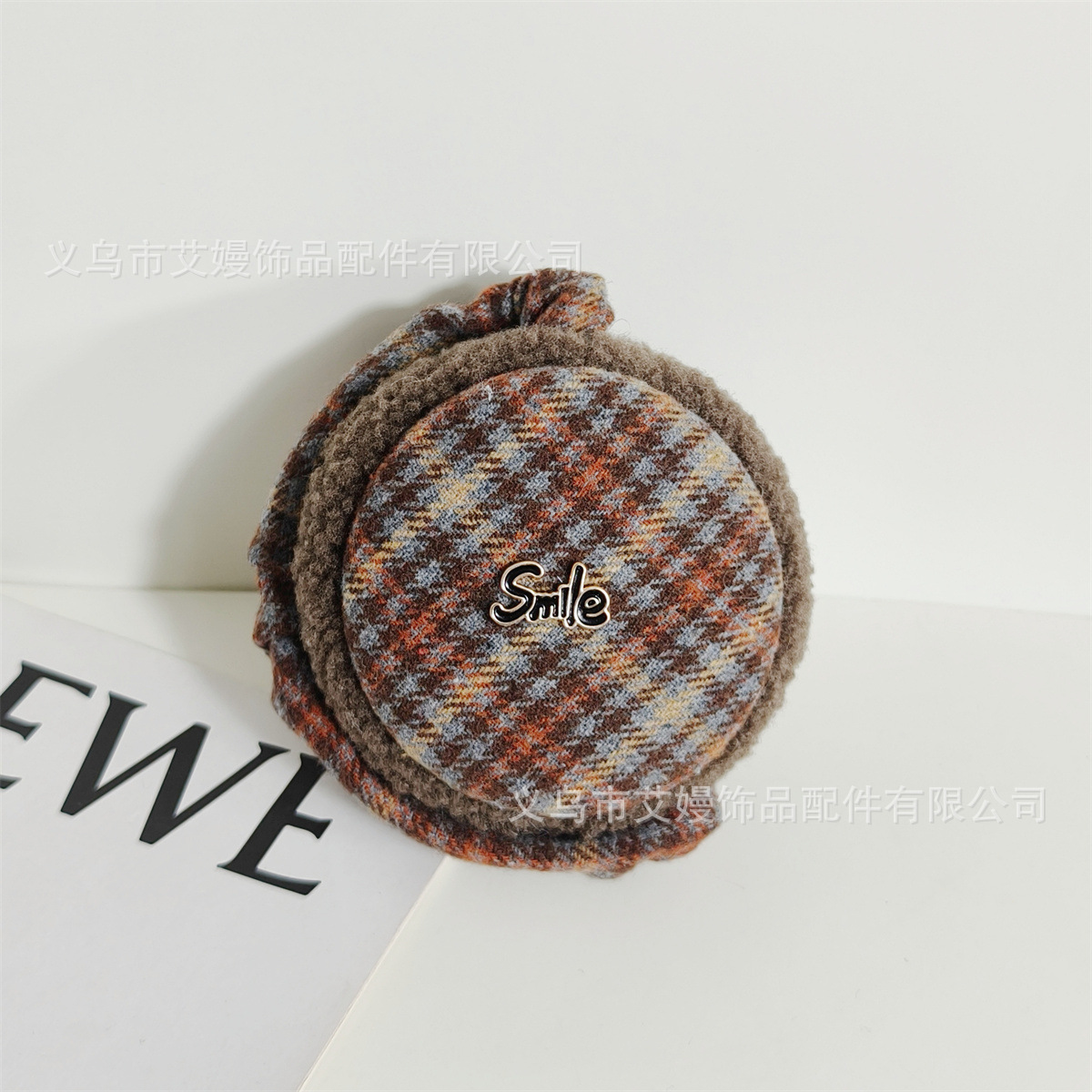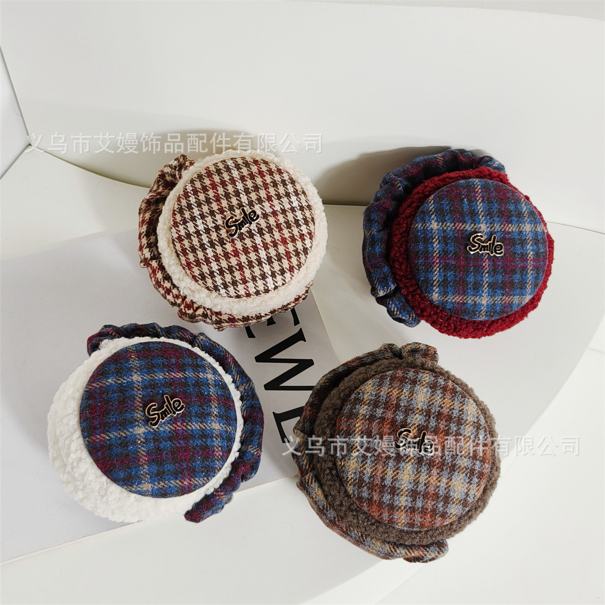 겨울 새로운 서양식 복고풍 격자 무늬 편지 라벨 감기 방지 귀 보호 두꺼운 귀 가방을 타는 학생들을위한 접이식 귀마개