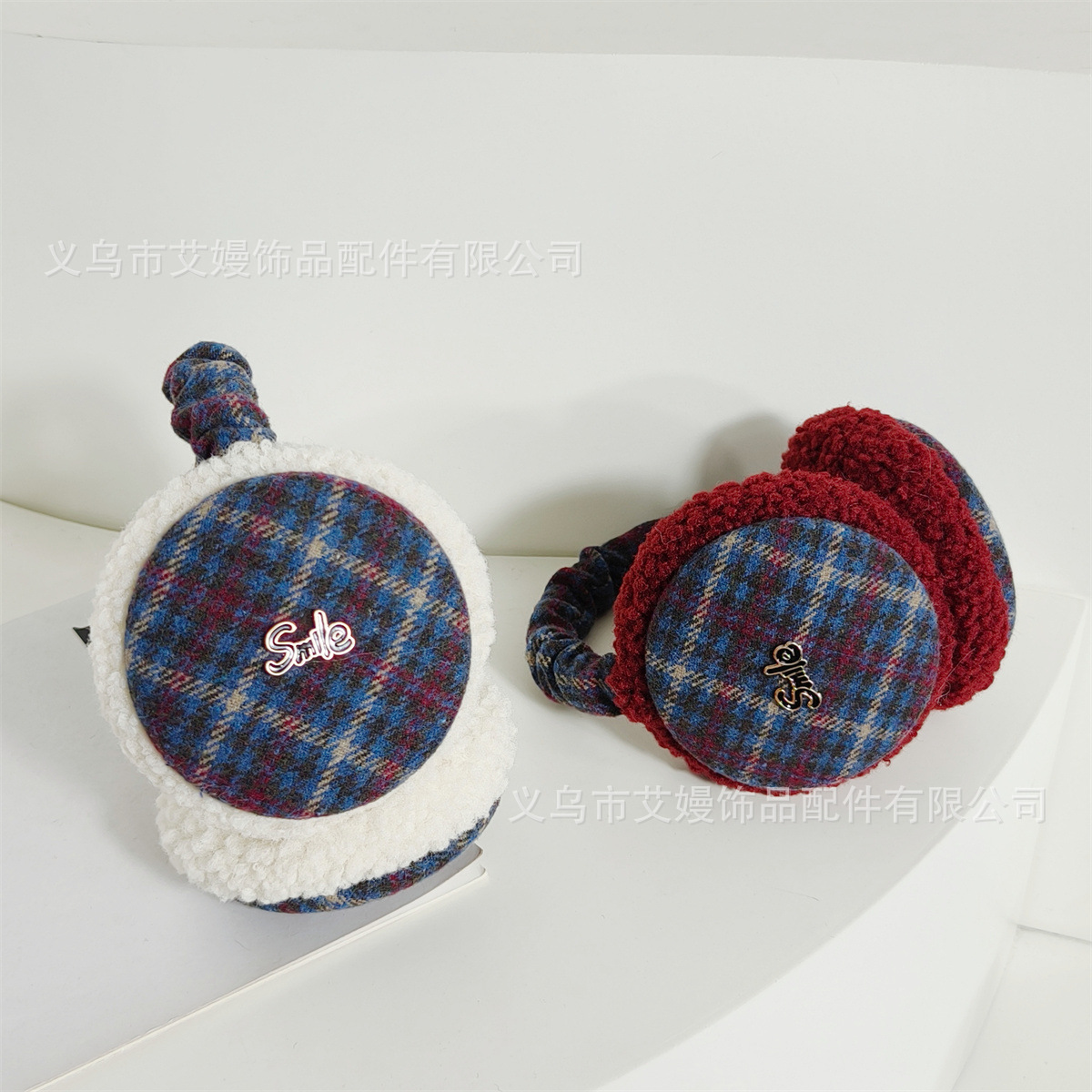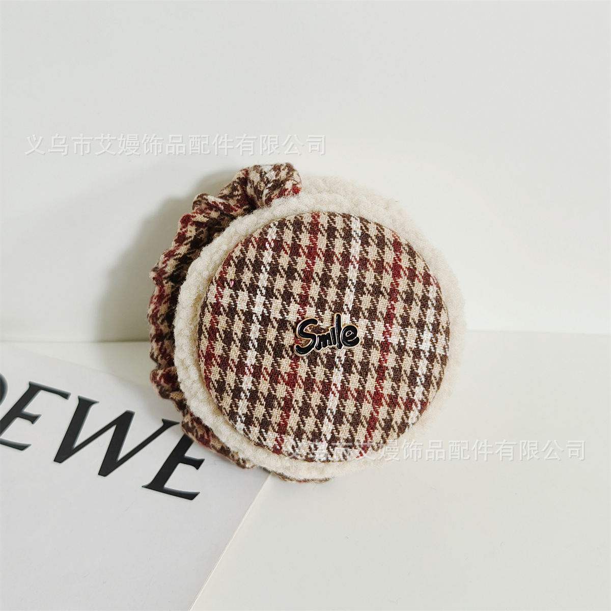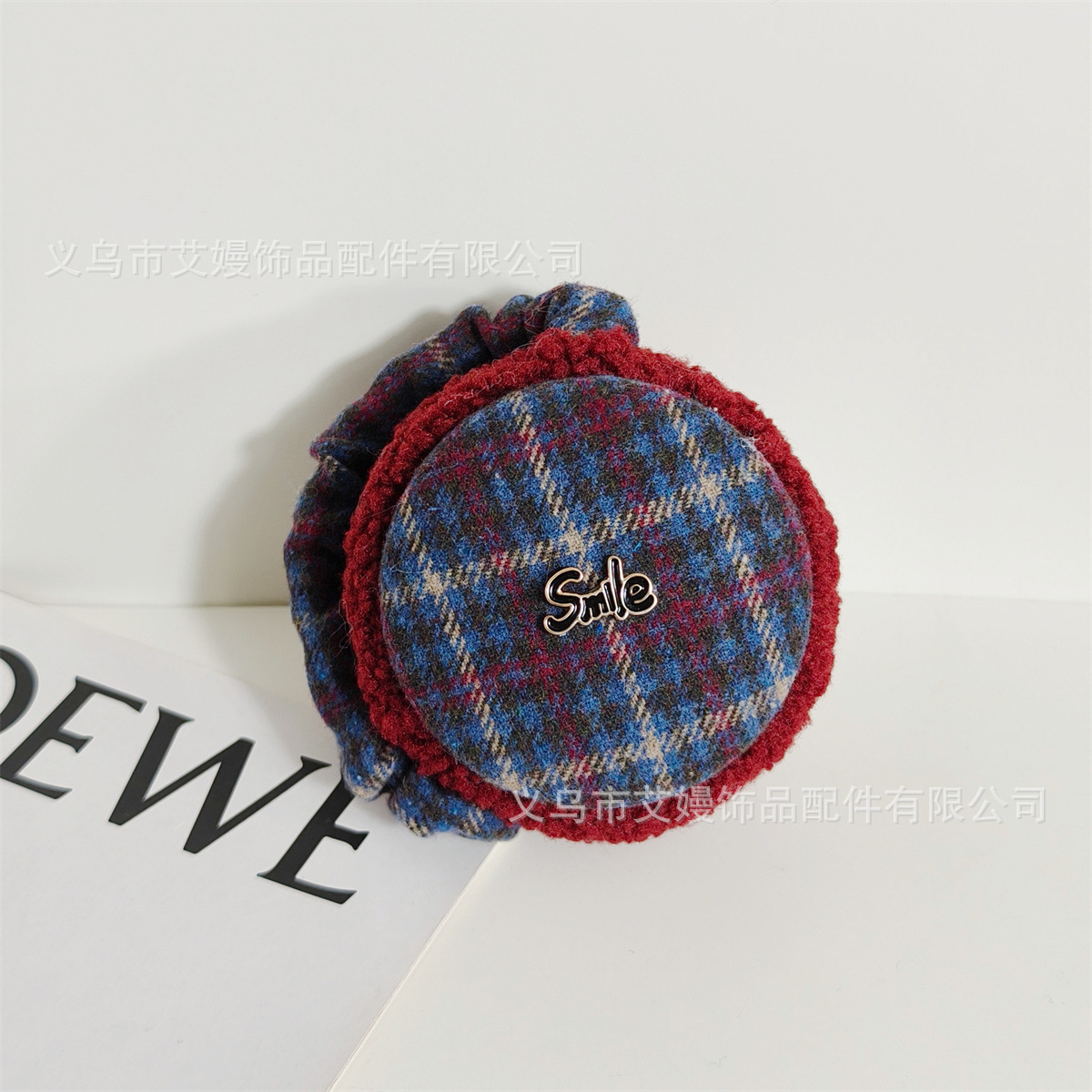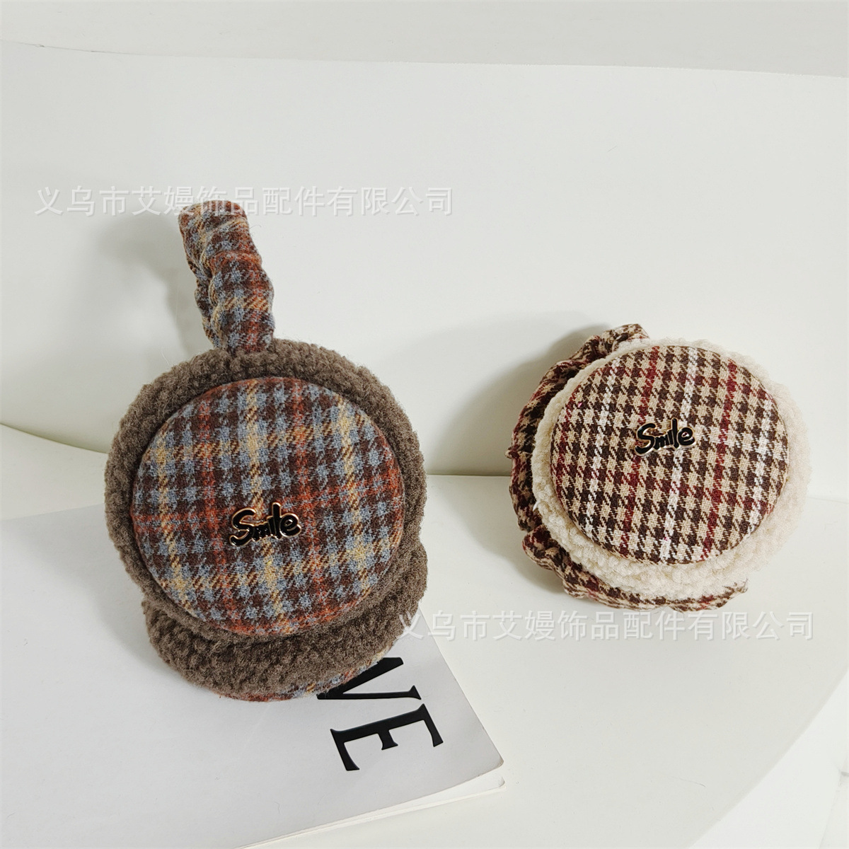 겨울 새로운 서양식 복고풍 격자 무늬 편지 라벨 감기 방지 귀 보호 두꺼운 귀 가방을 타는 학생들을위한 접이식 귀마개