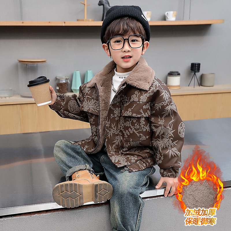 남아용 자카드 플리스 가죽 자켓, 가을 겨울 신상품, 아동용 중국풍 가죽 자켓, 남아용 겨울용 두꺼운 보온 방한 자켓