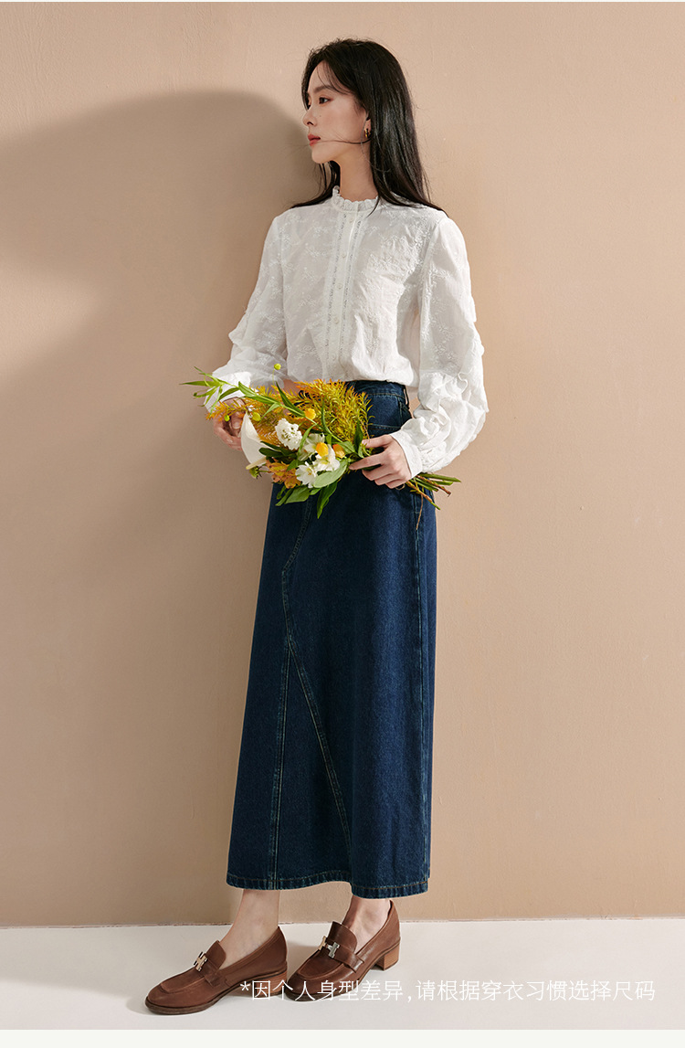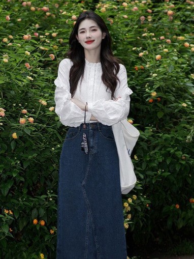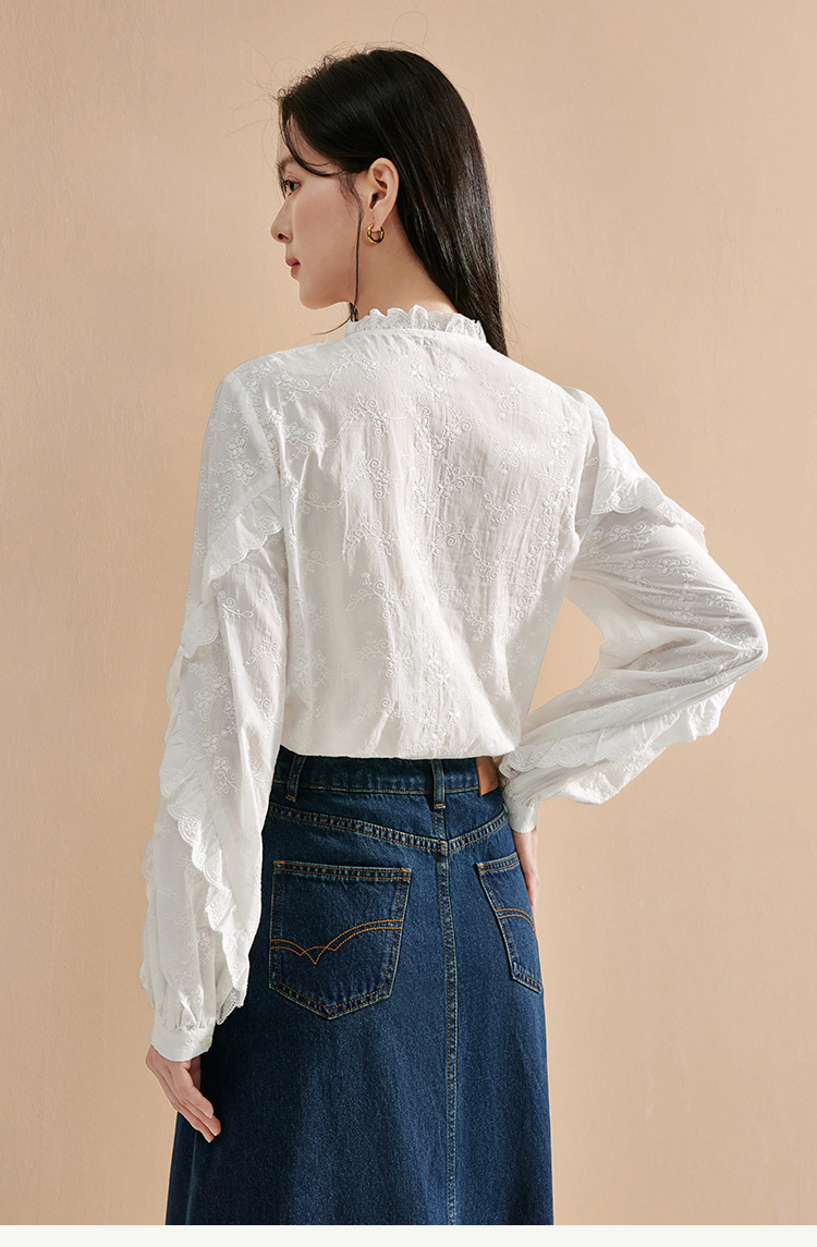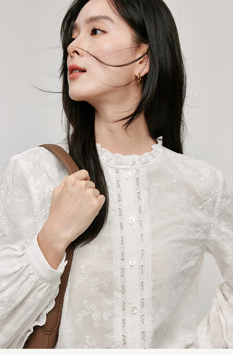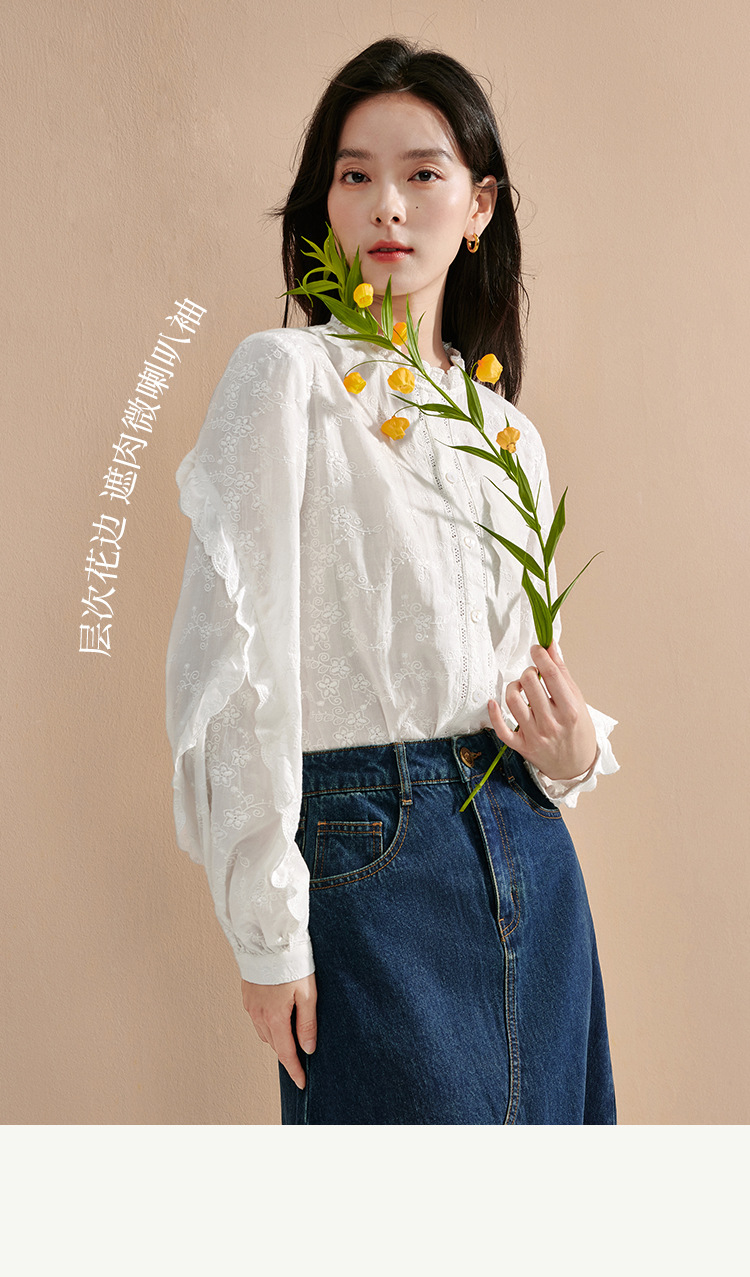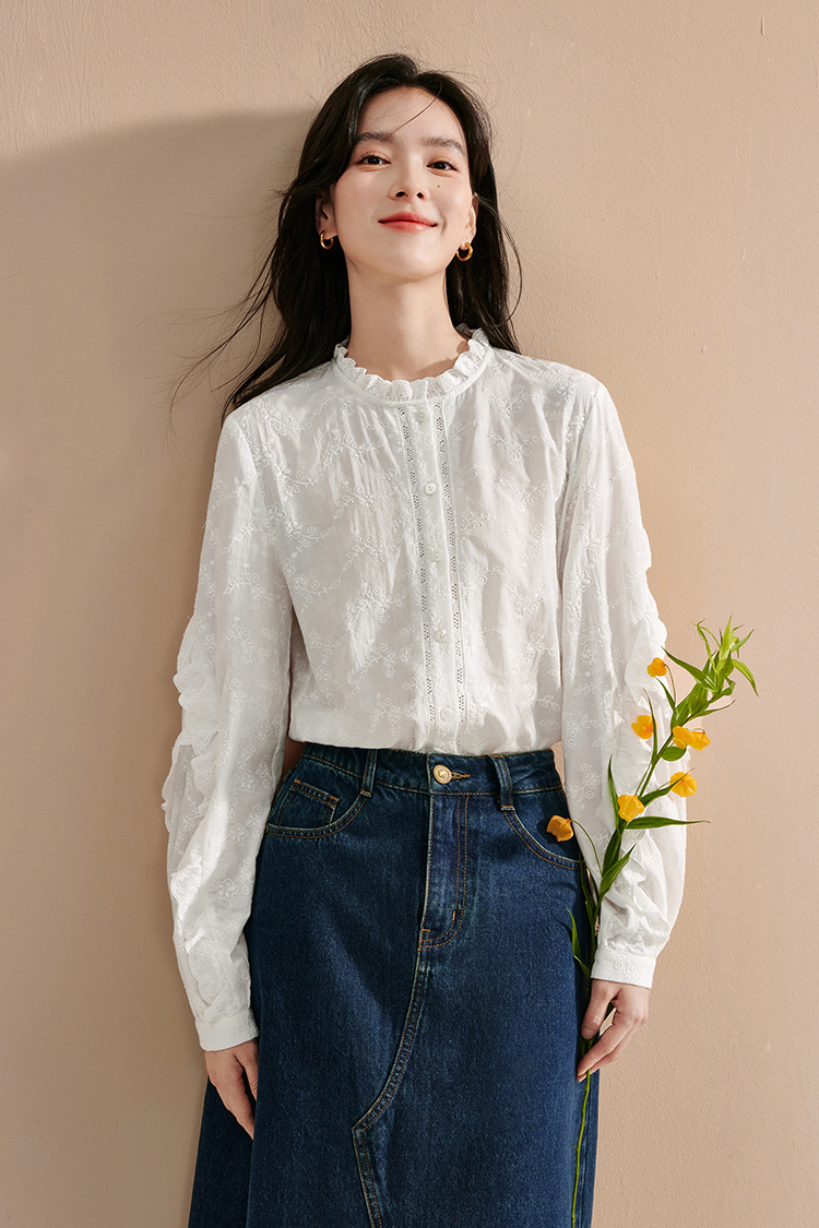 인자 프렌치 디자인 스타일의 연잎 소매 스탠드 칼라 셔츠 여성용 2026년 봄 여름 신상 고급 자수 루즈핏 탑스토어 가기