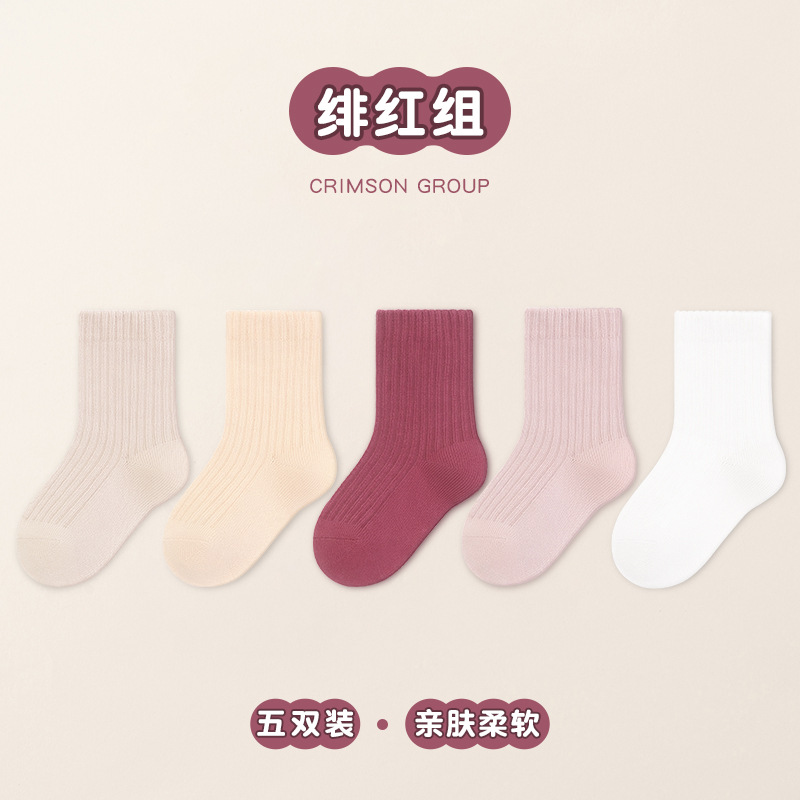 24 가을과 겨울 빗질 면화 남녀 학생 양말 조커 중소 어린이 양말 도매 5 쌍의 단색 이중 바늘 양말