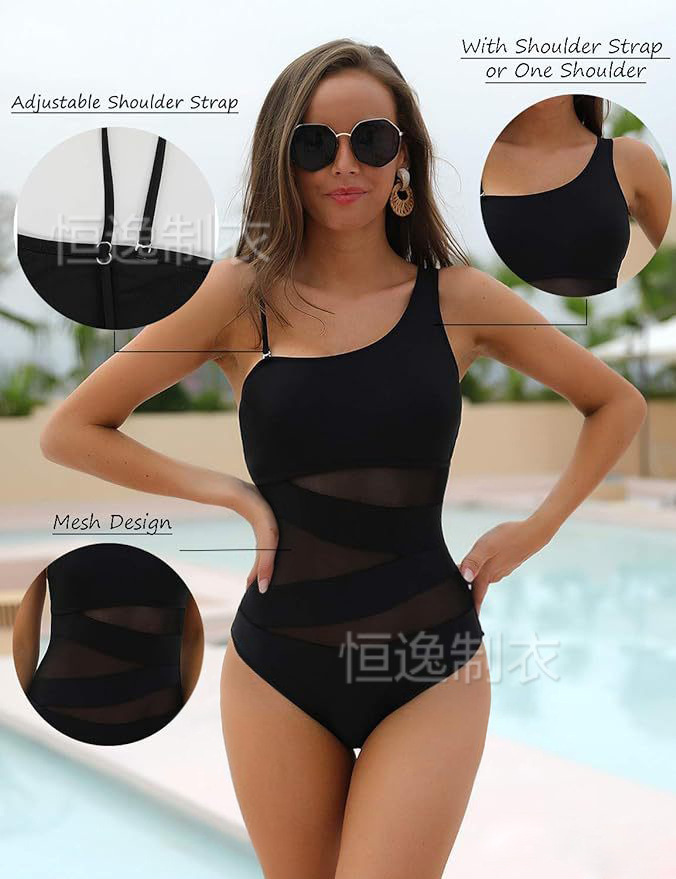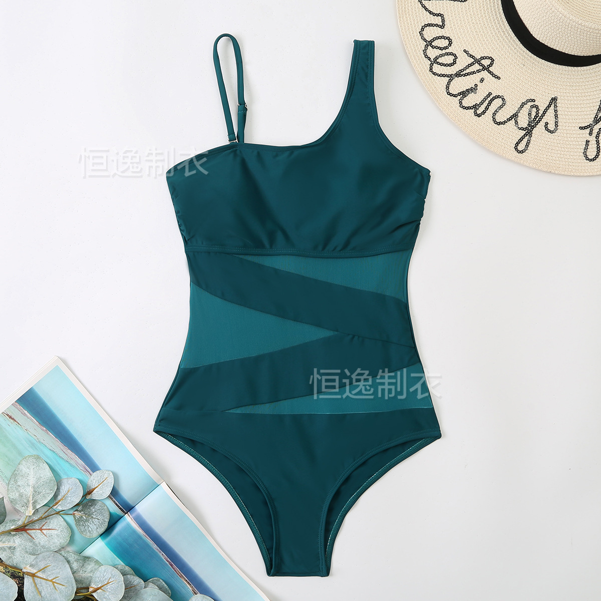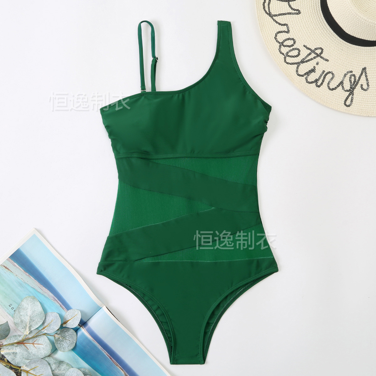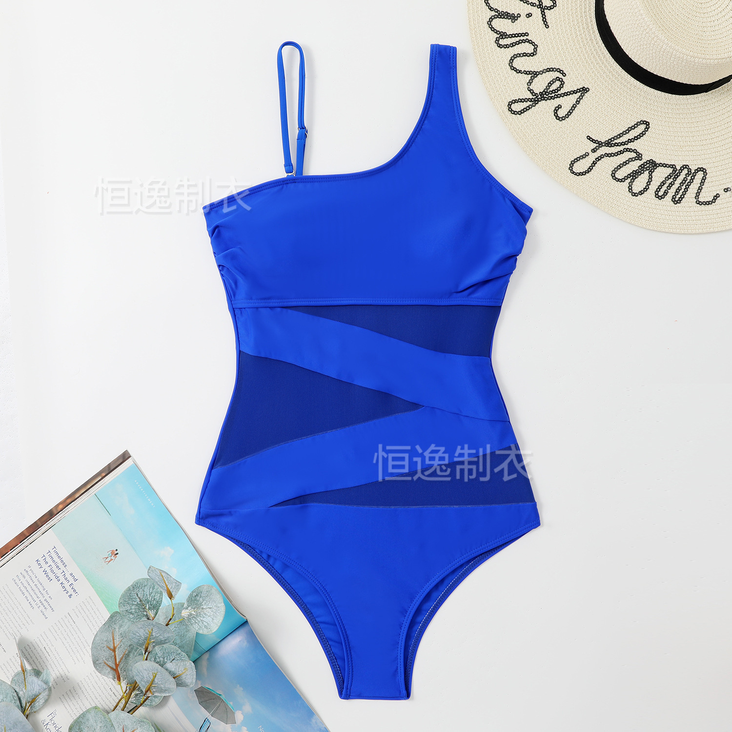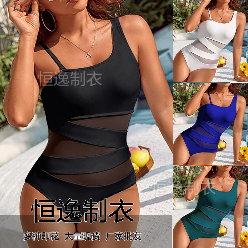 2024 새로운 스티칭 거즈 원피스 수영복 여성의 얇은 벨트 비스듬한 어깨 보수적 인 비키니 크로스 보더스토어 가기