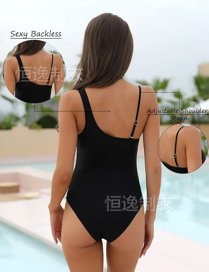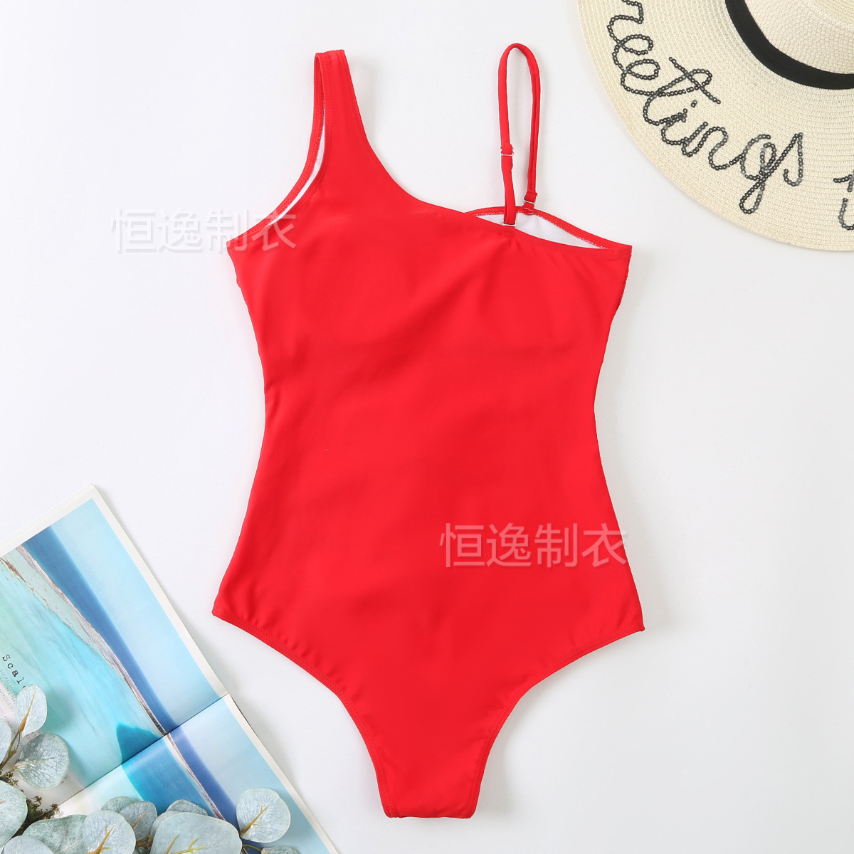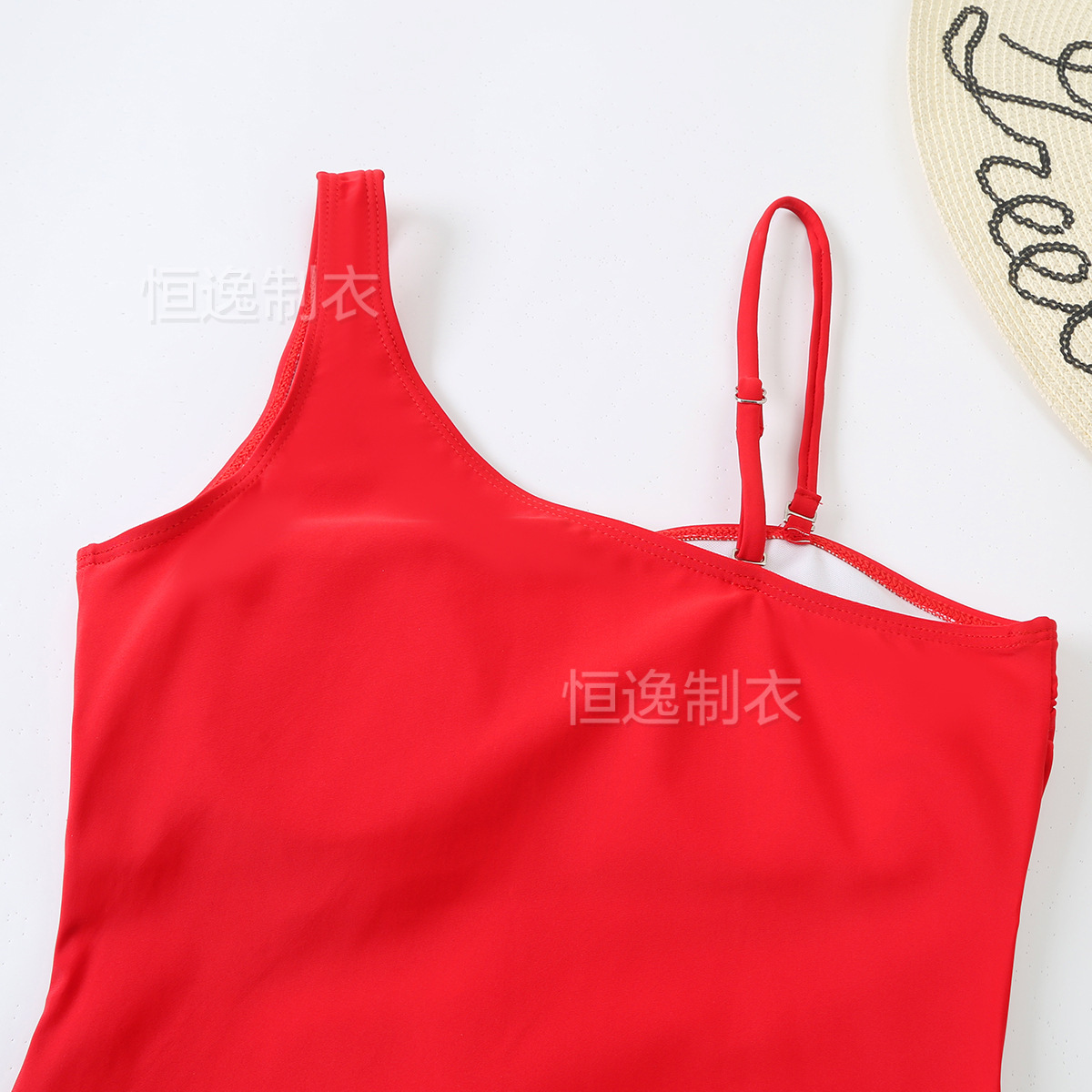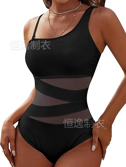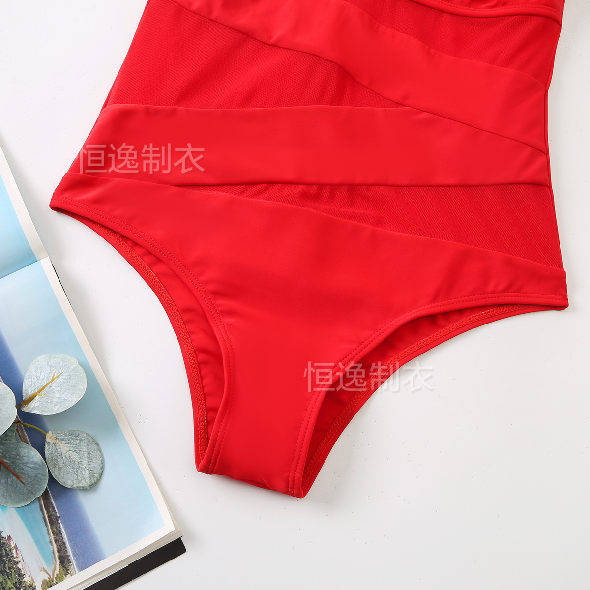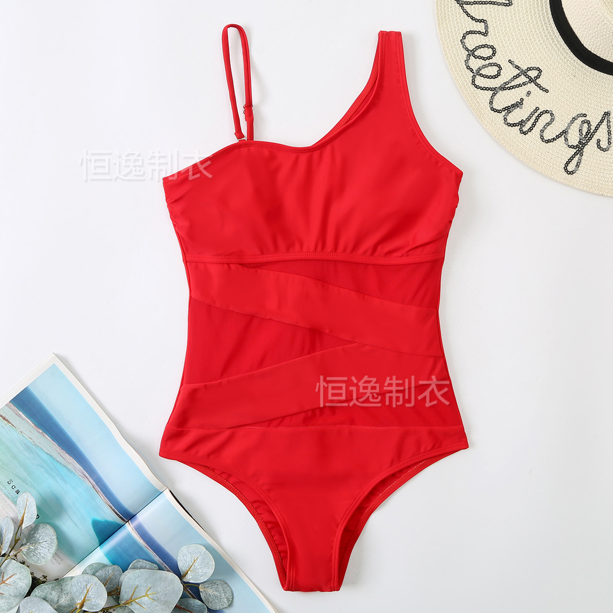 2024 새로운 스티칭 거즈 원피스 수영복 여성의 얇은 벨트 비스듬한 어깨 보수적 인 비키니 크로스 보더