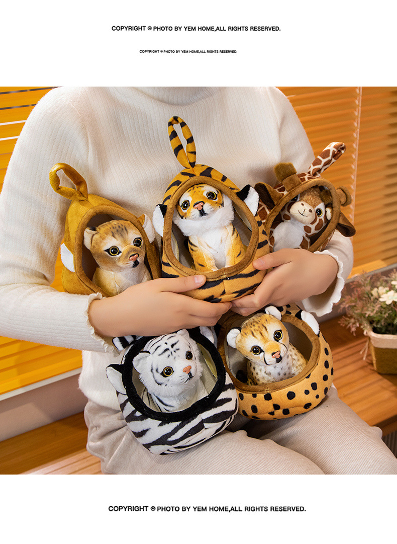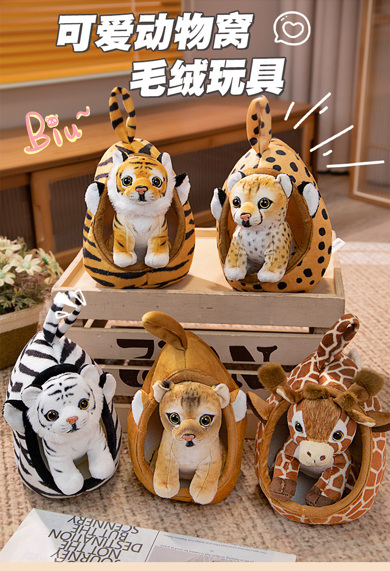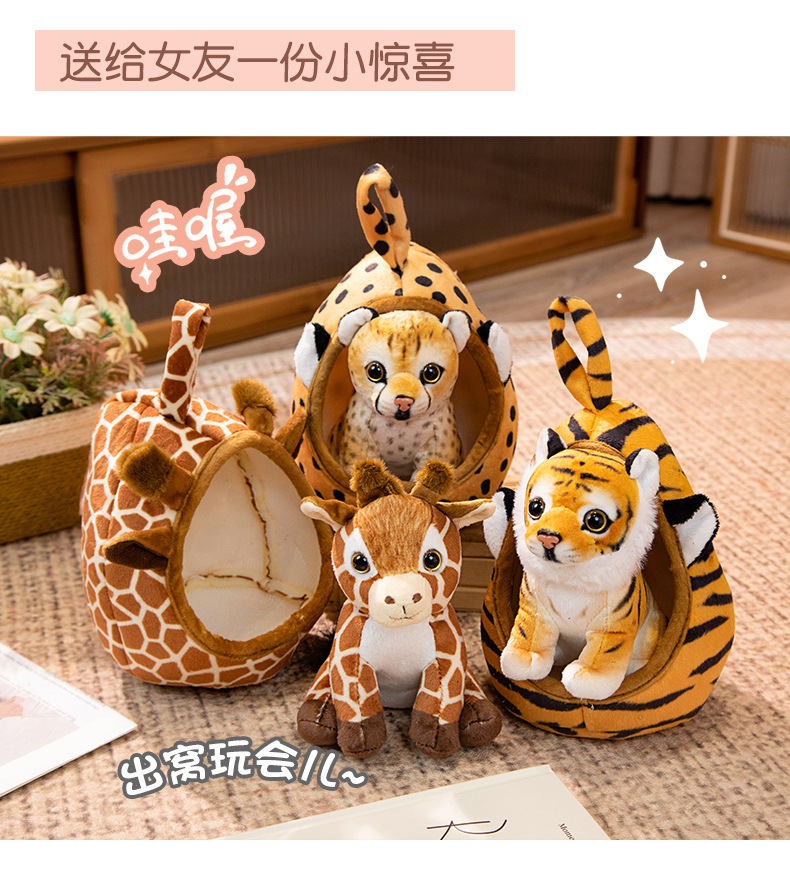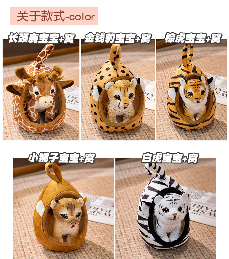 귀여운 시뮬레이션 작은 동물 인형 흰 호랑이 아기 기린 사자 표범 둥지 봉제 장난감 어린이 선물스토어 가기