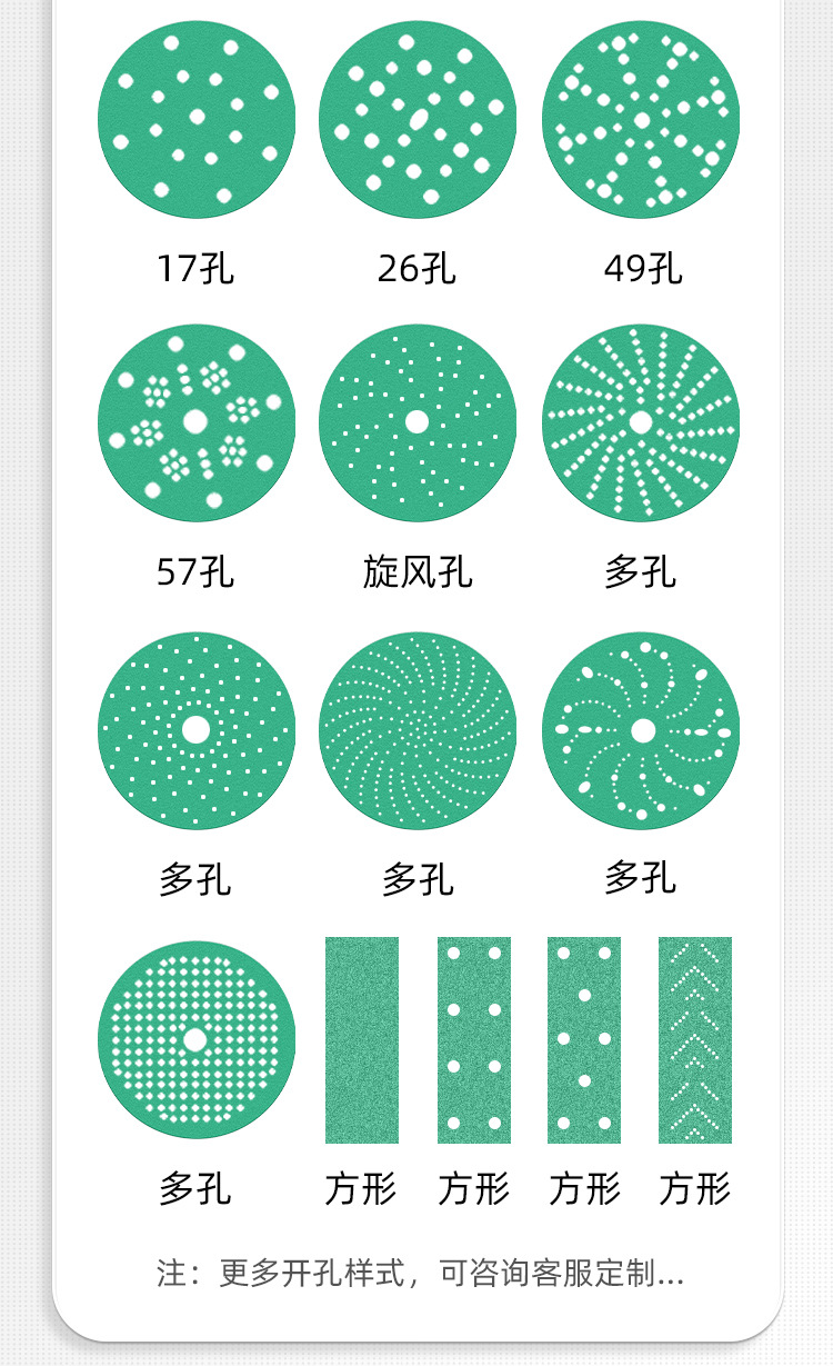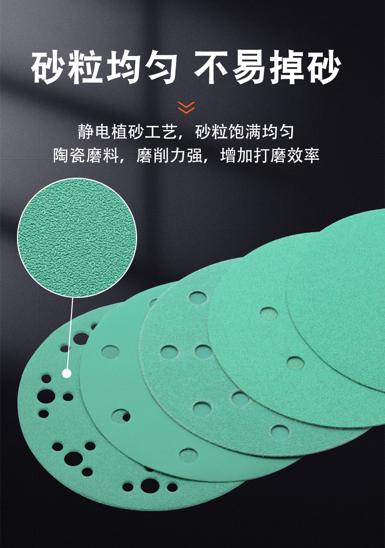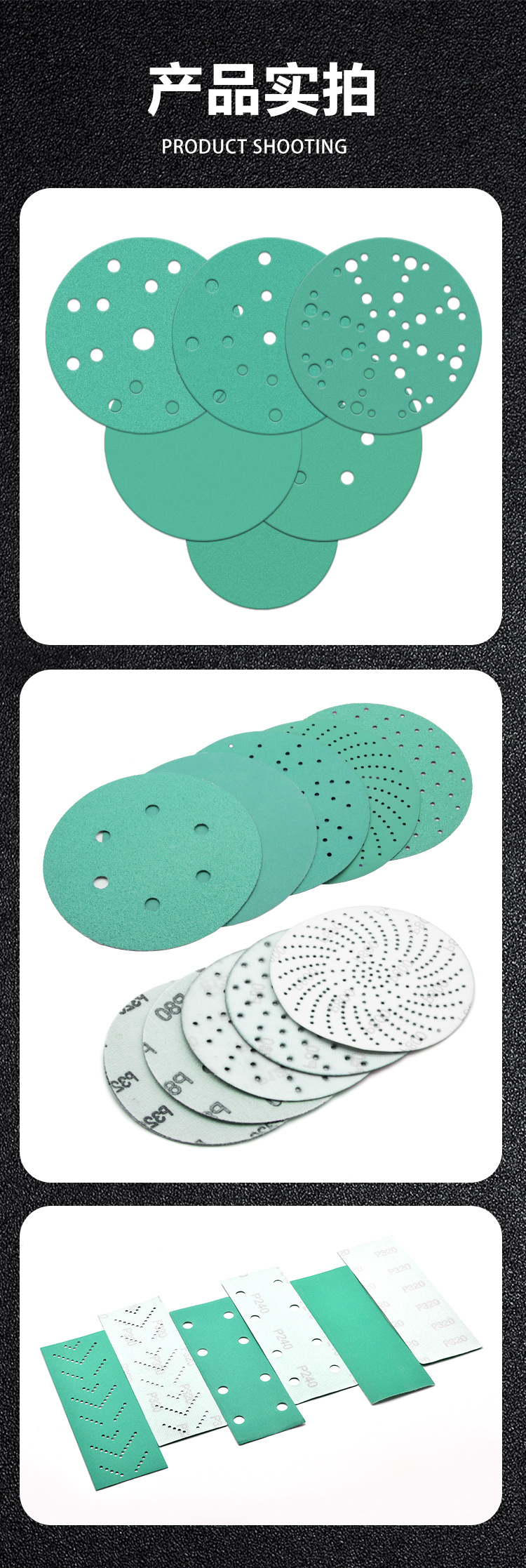 지르코늄 커런덤 직사각형 다공성 안티 차단 녹색 사포의 국경 직접 공급 6 인치 17 홀 먼지가없는 드라이 연삭 벨벳 사포스토어 가기