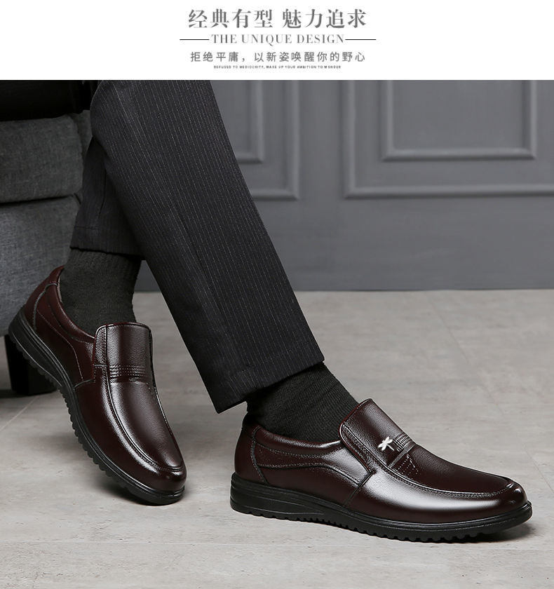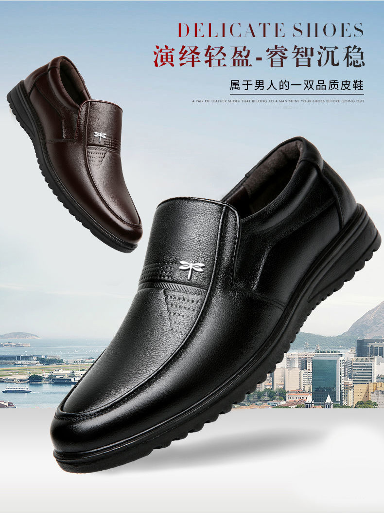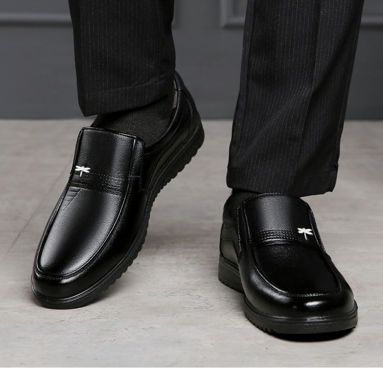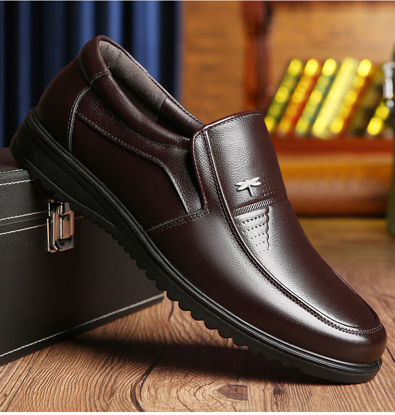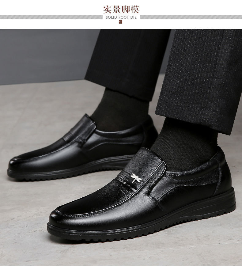 정품 잠자리 브랜드 2024 새로운 남성 가죽 신발 사업 캐주얼 가죽 신발 미끄럼 방지 소프트 하단 게으른 슬립 온