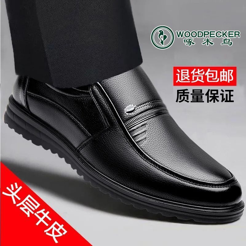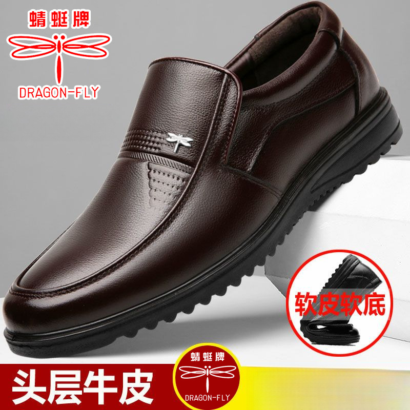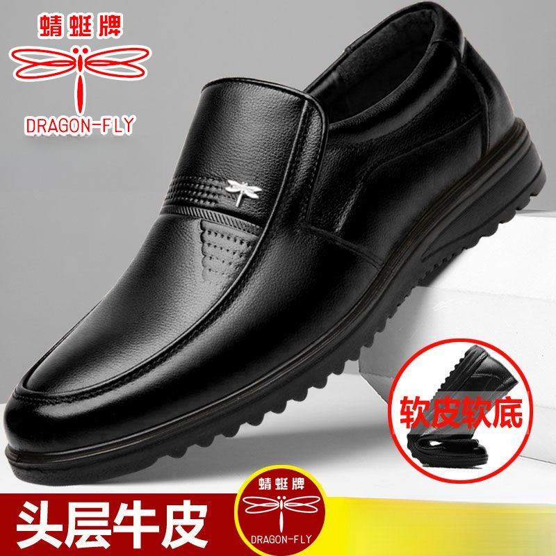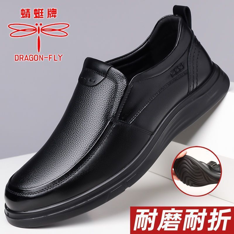 정품 잠자리 브랜드 2024 새로운 남성 가죽 신발 사업 캐주얼 가죽 신발 미끄럼 방지 소프트 하단 게으른 슬립 온스토어 가기