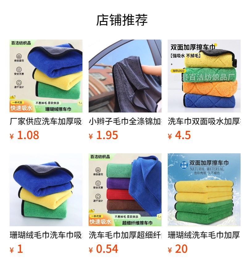 세차 타월 두꺼운 극세사 흡수성 빠른 건조 차량 닦는 타월 머리 감기 타월 청소용 천 400g 도매스토어 가기