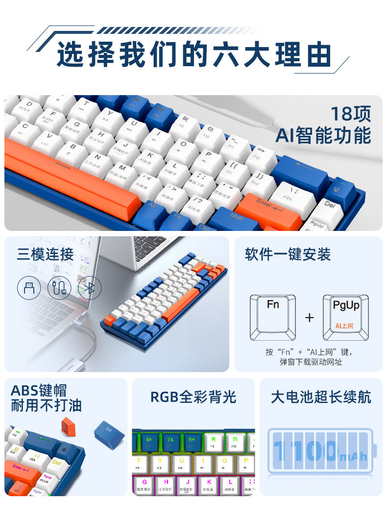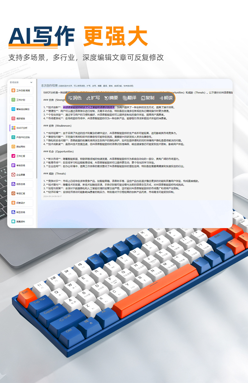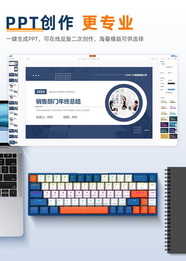스포트 AI 키보드 PPT, 일간지, 주간지, 삼중 모드 스마트 키보드, 맞춤형 사무용