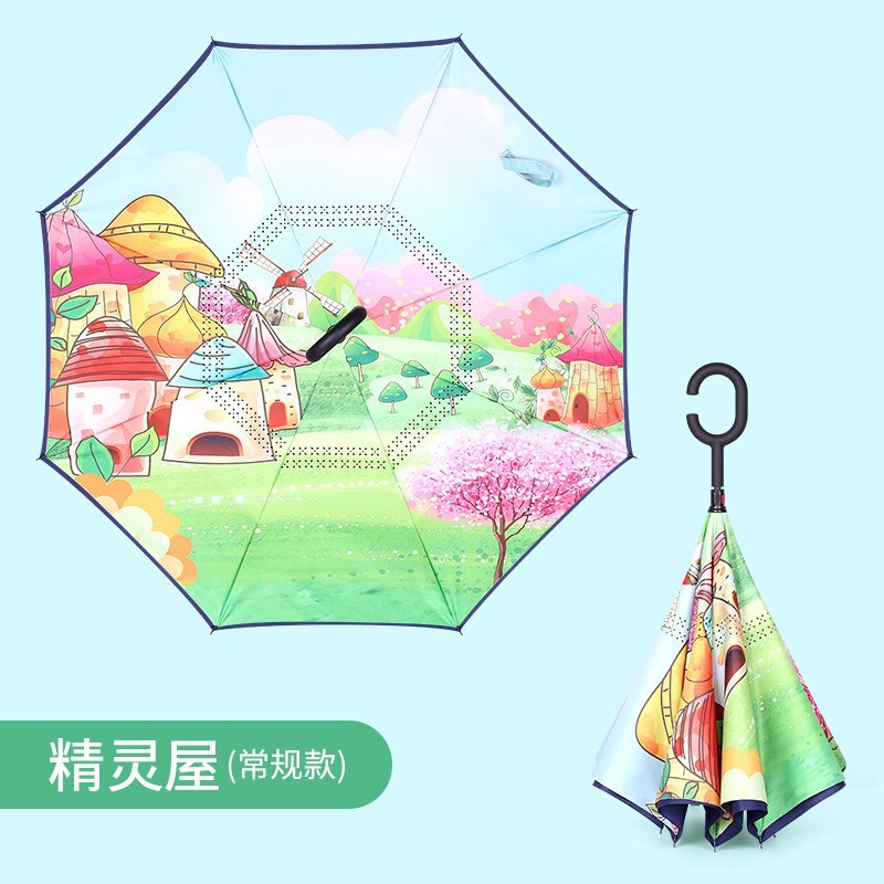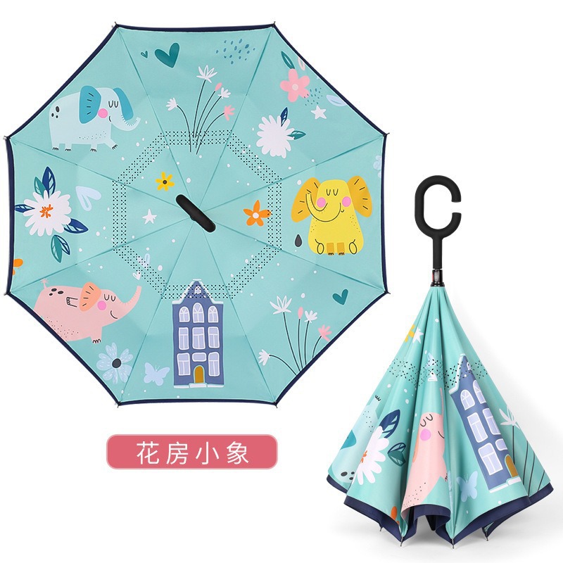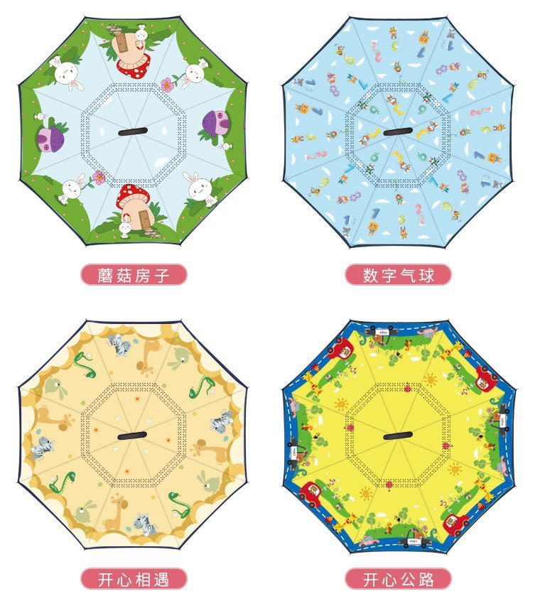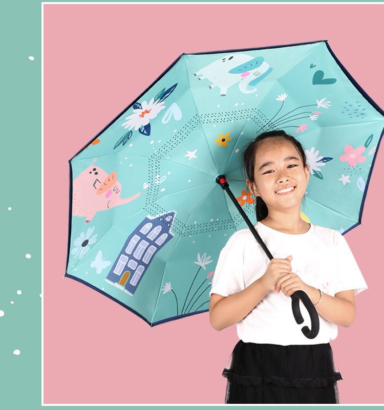 만화 리버스 우산 컬러 핸들 공룡 어린이 우산 귀여운 더블 레이어 핸즈프리 긴 핸들 우산 도매스토어 가기
