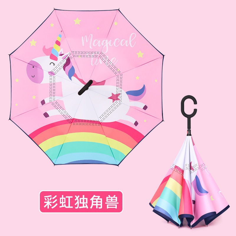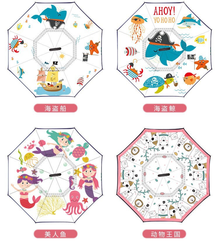 만화 리버스 우산 컬러 핸들 공룡 어린이 우산 귀여운 더블 레이어 핸즈프리 긴 핸들 우산 도매