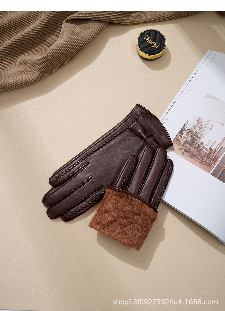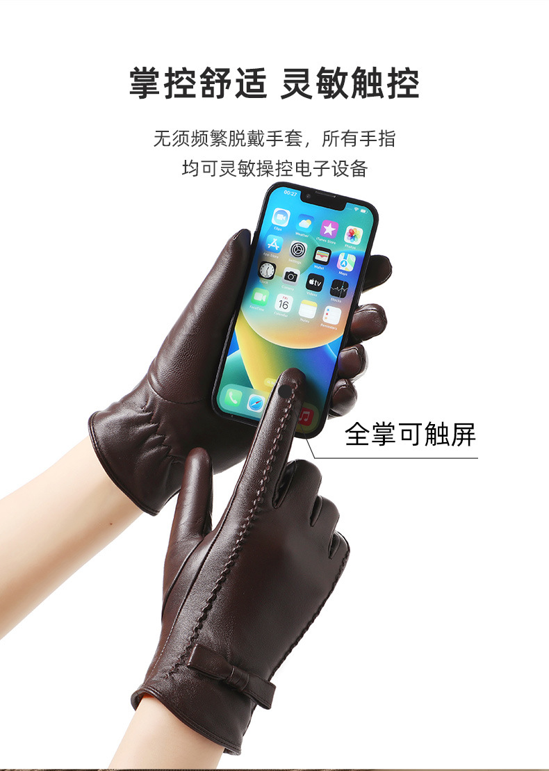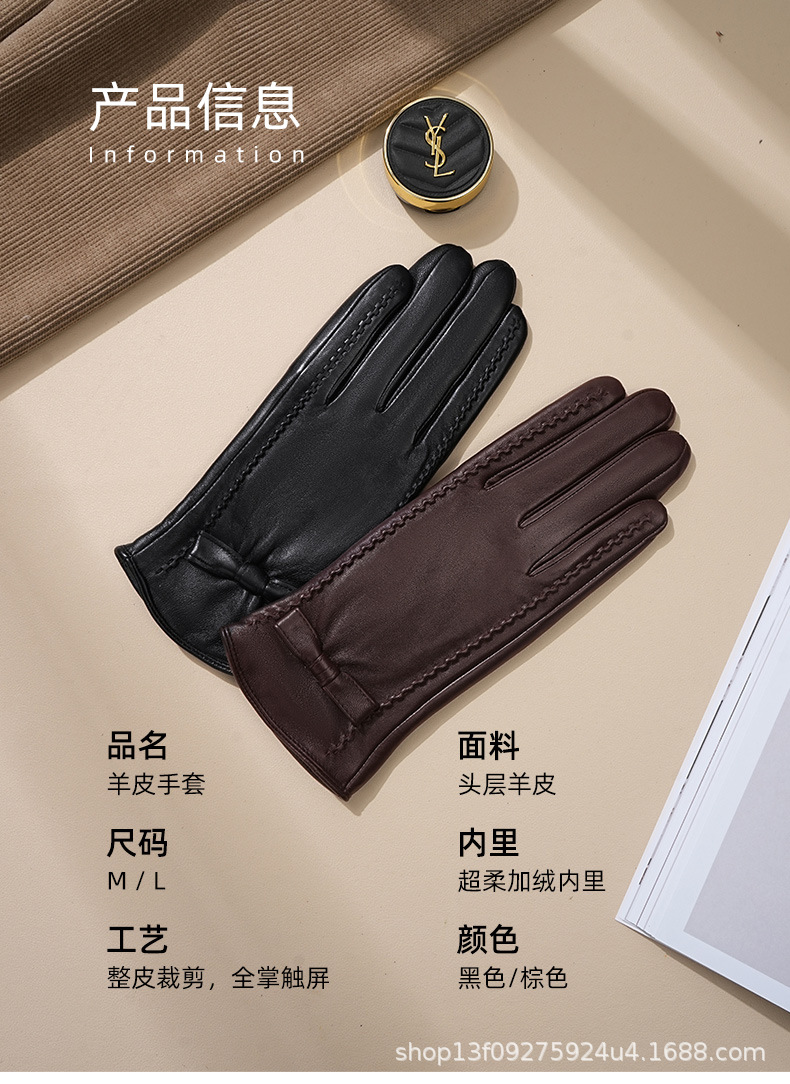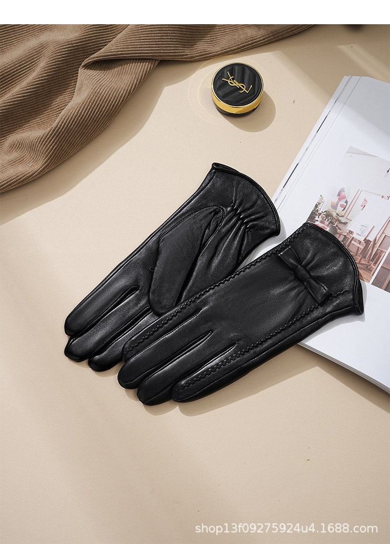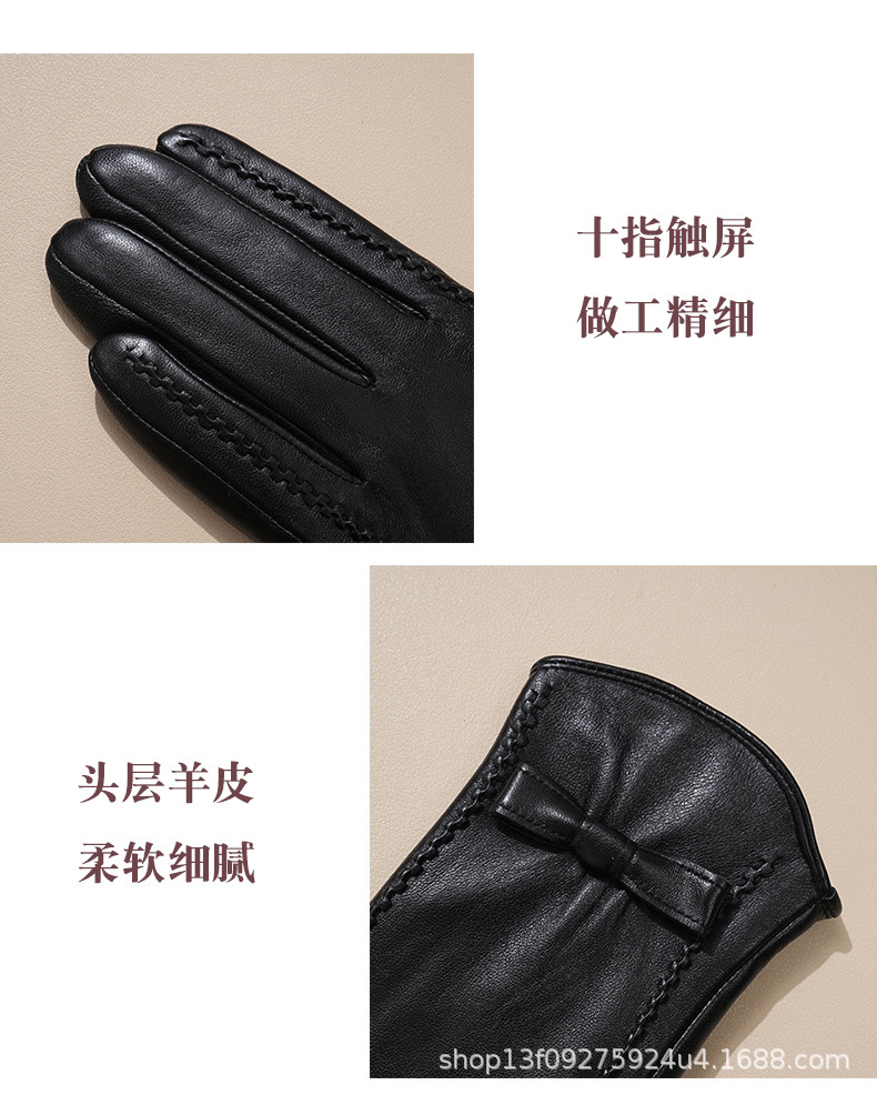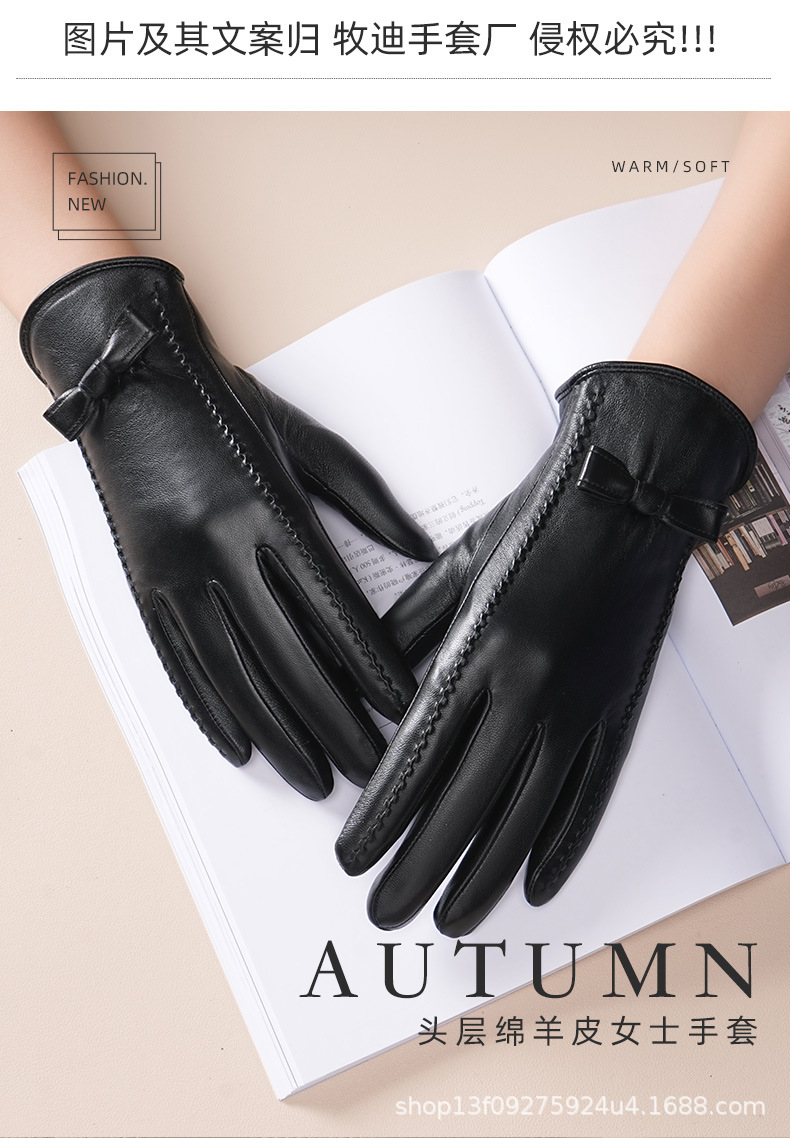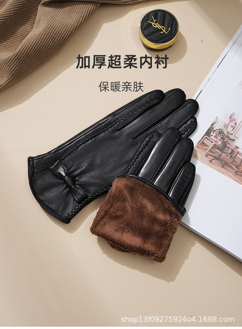 양가죽 장갑의 첫 번째 레이어 여성의 겨울 기모 두꺼운 터치 스크린 운전 방풍 차가운 끈 나비