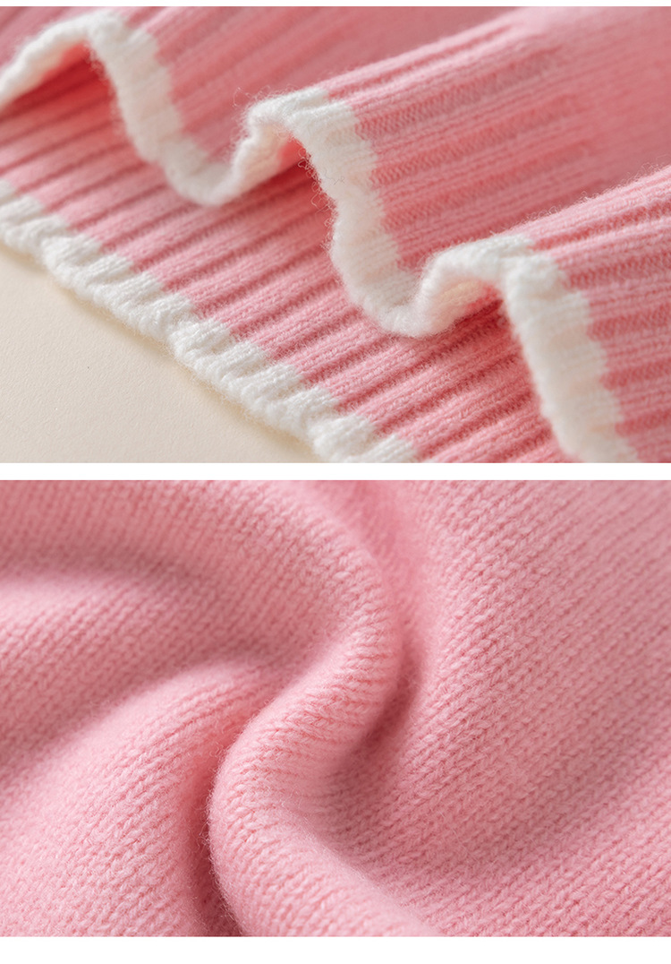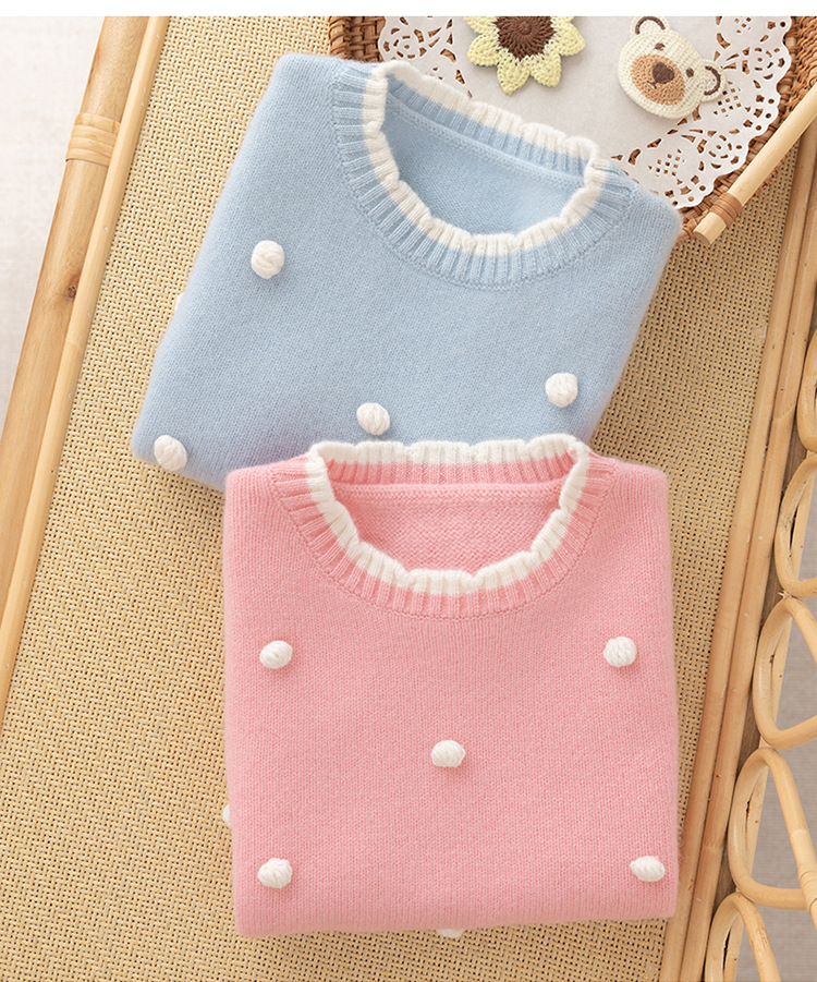 가을과 겨울 새로운 어린이 모든 울 볼 스웨터 조끼 귀여운 소녀 아기의 대비 컬러 레이스 칼라 워어 탑
