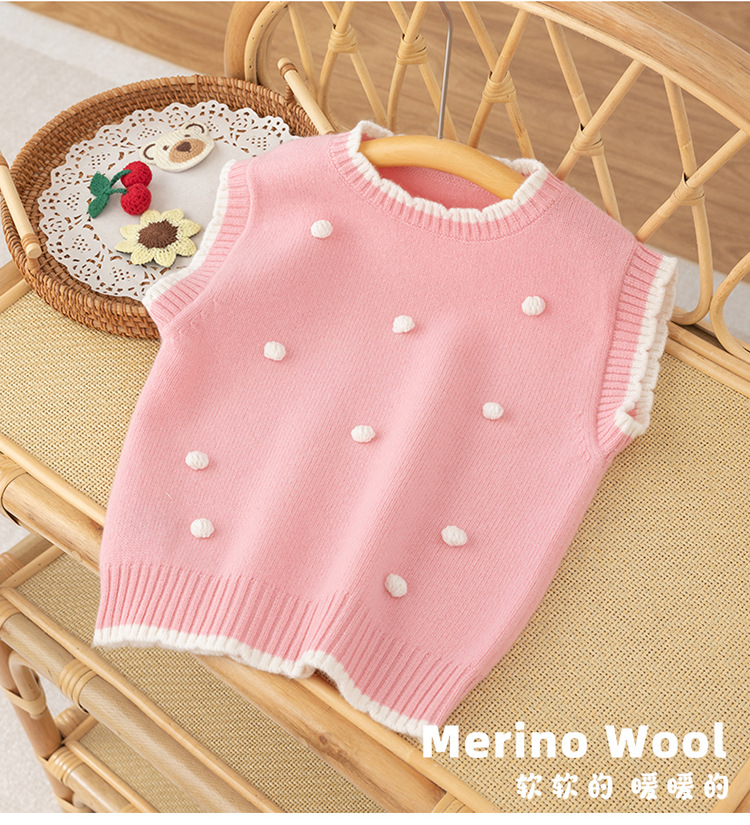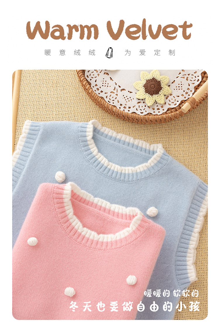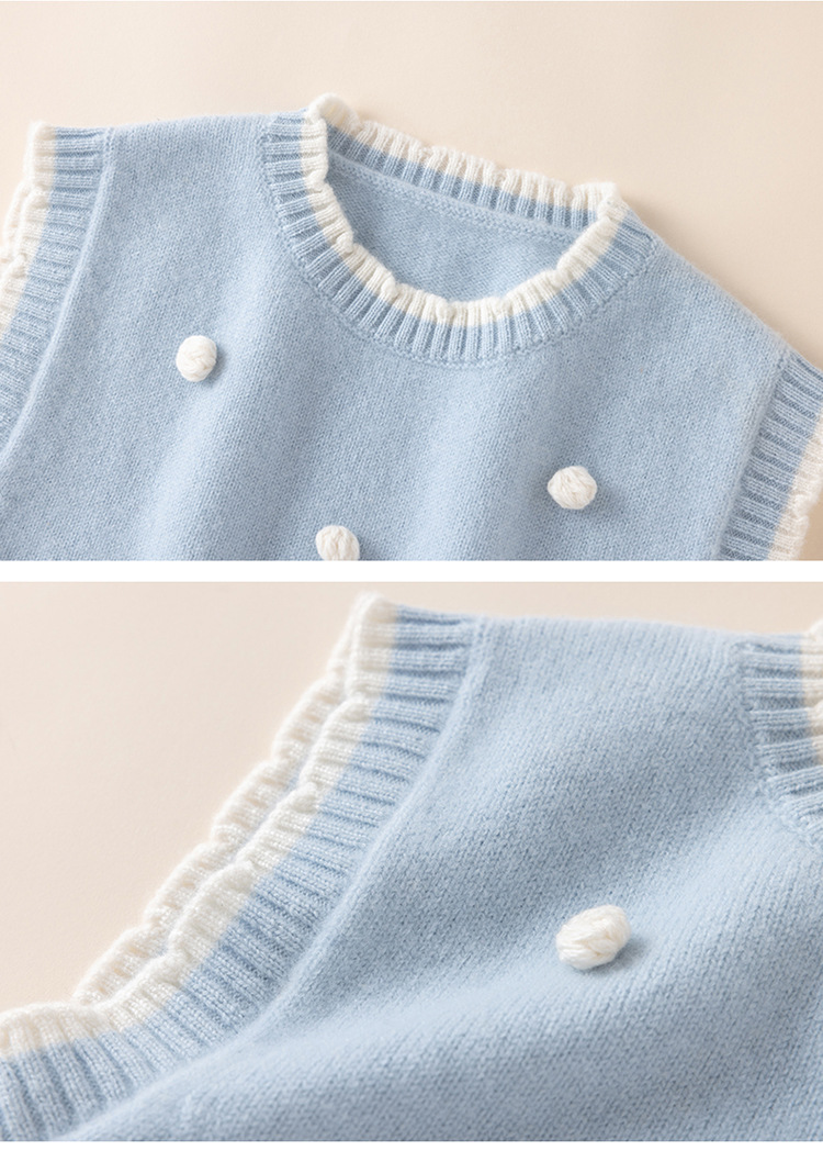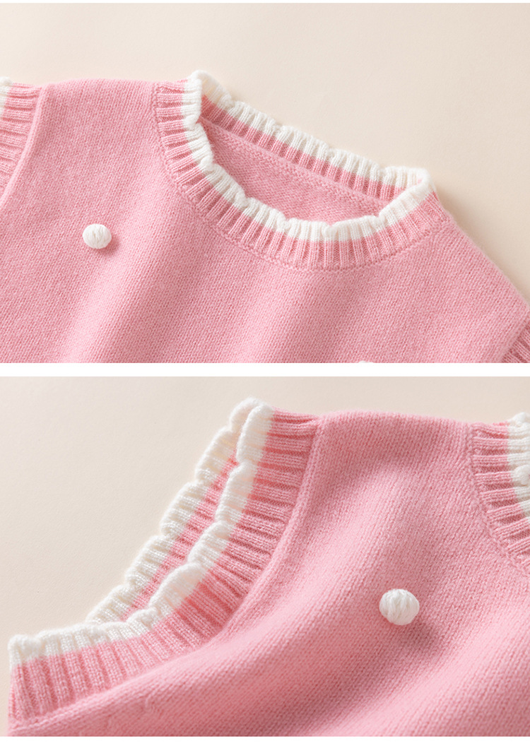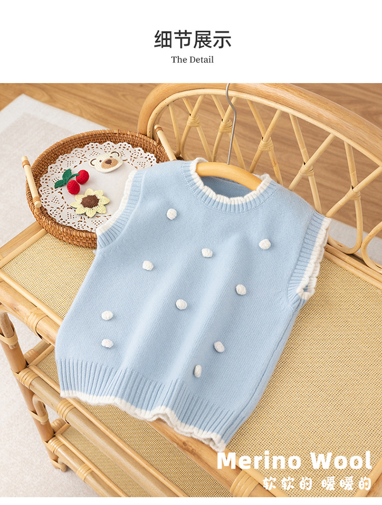 가을과 겨울 새로운 어린이 모든 울 볼 스웨터 조끼 귀여운 소녀 아기의 대비 컬러 레이스 칼라 워어 탑스토어 가기