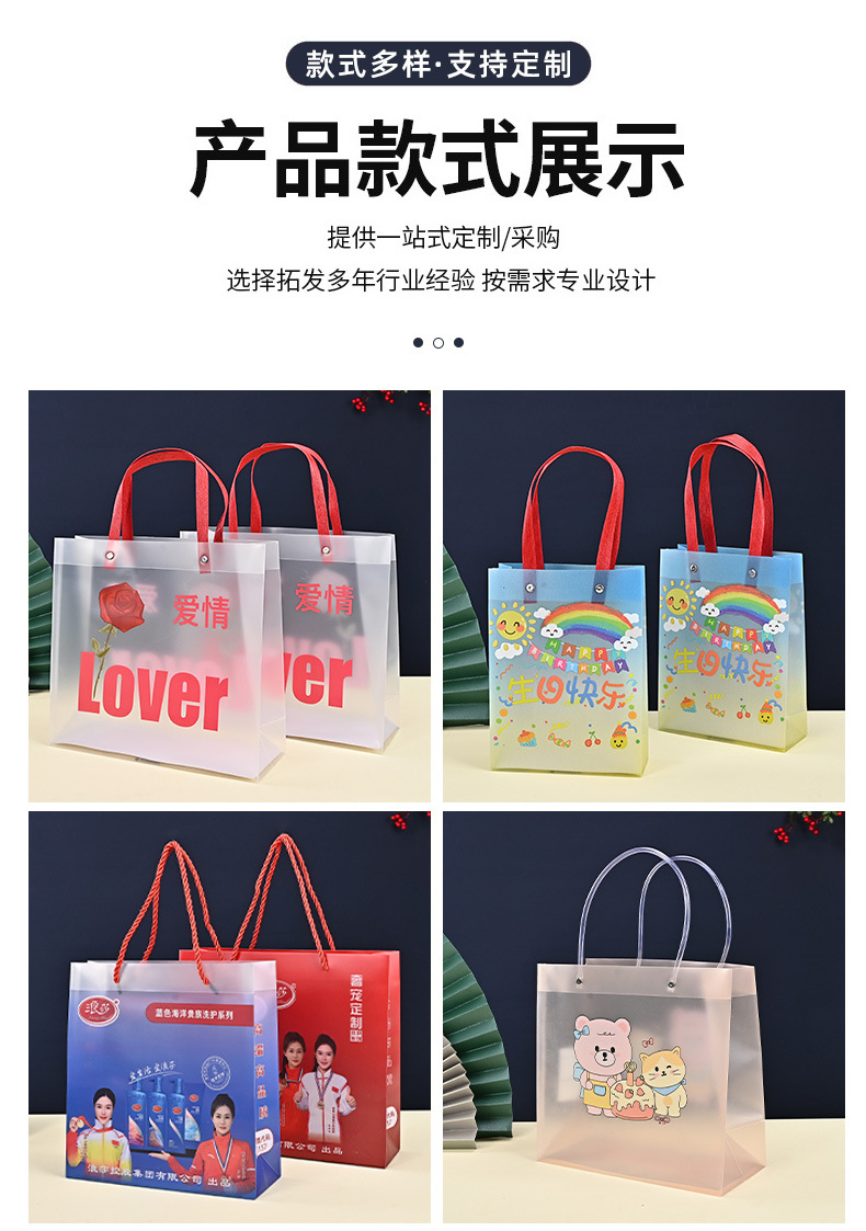재고 pp 플라스틱 토트 백 투명 젖빛 선물 토트 백 맞춤형 친환경 pvc 토트 백 인쇄 로고스토어 가기