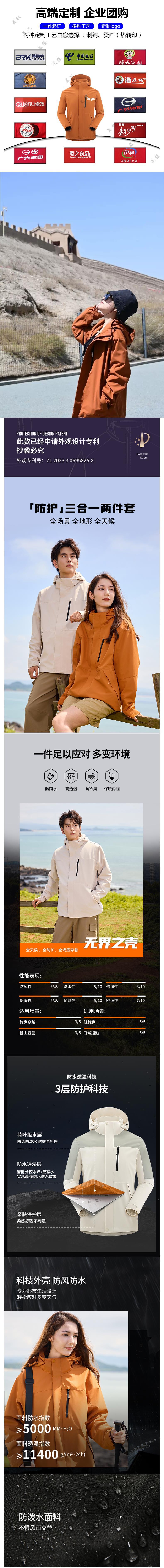 맞춤형 로고95588 아메리칸 울프 3-in-1 재킷 폴라 플리스 안감 플러스 벨벳 방수 및 따뜻한 작업복 맞춤형 로고스토어 가기
