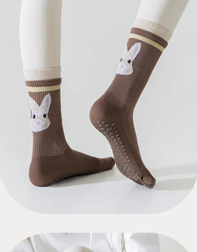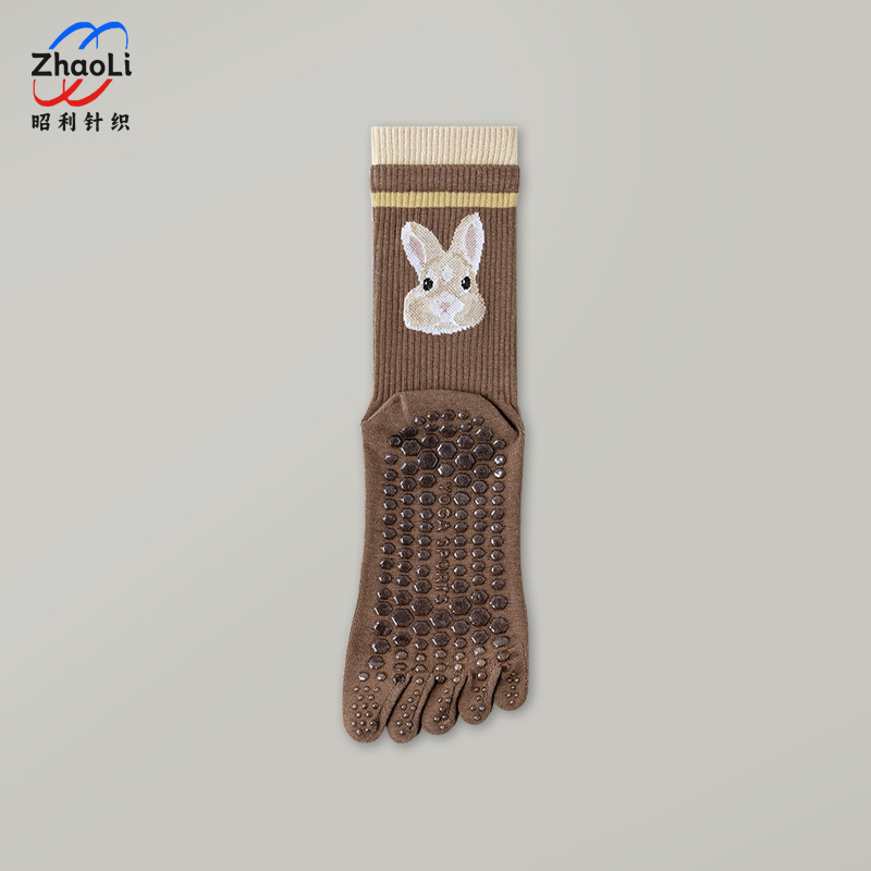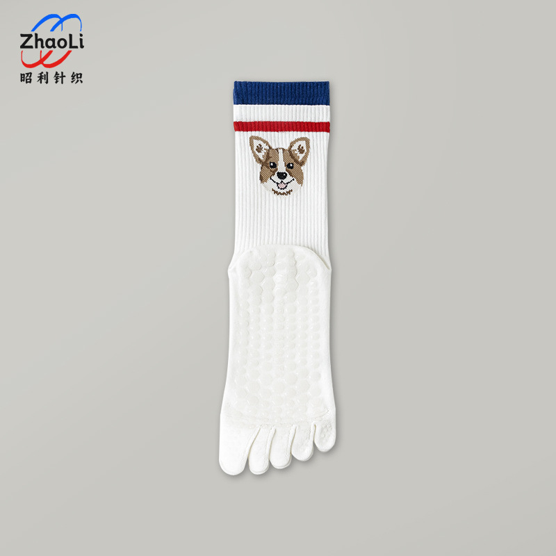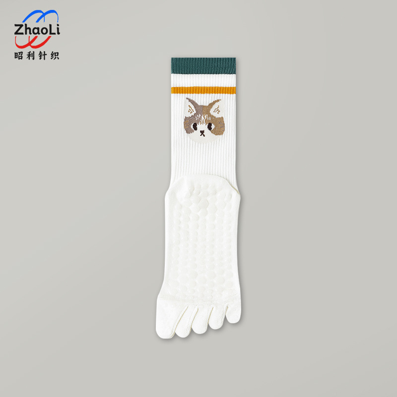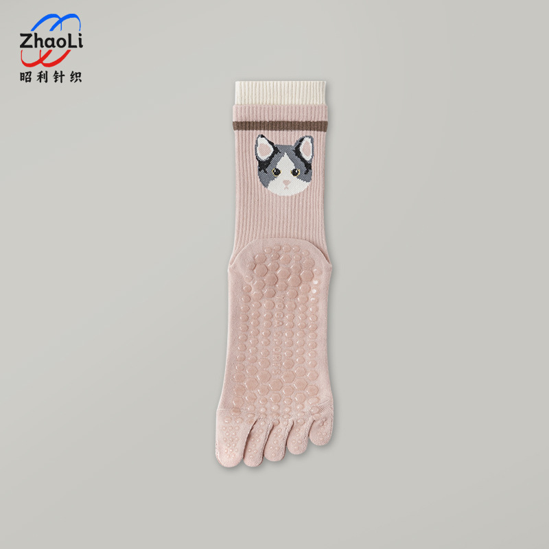 고무 밑창이 있는 다섯 손가락 양말, 전문 미끄럼 방지 여성용 봄 여름 미드 튜브 스플릿 발가락 필라테스 스포츠 요가 양말 Zhuji