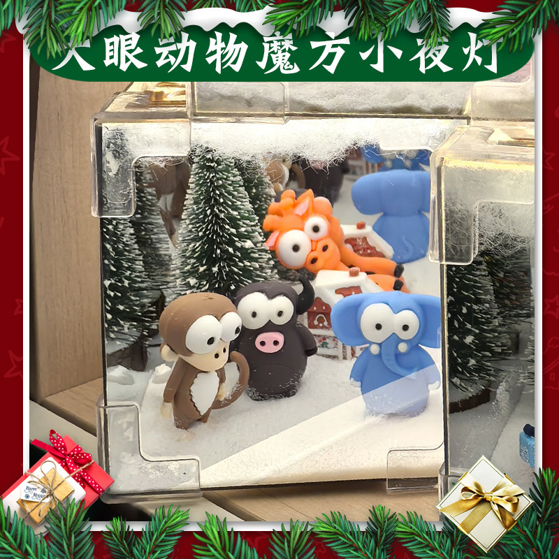 • 루빅스 큐브 만화 큰 눈 동물 야간 조명(재료 전체 세트)