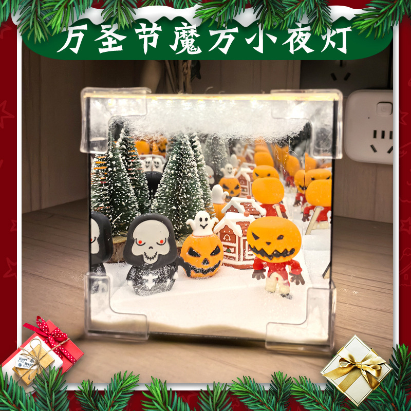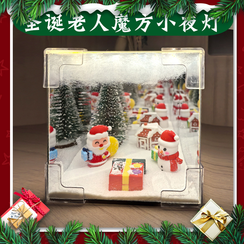 圣诞魔方小夜灯diy立体圣诞装饰氛围灯送孩子圣诞魔方镜子小夜灯