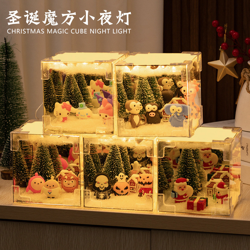크리스마스 루빅스 큐브 나이트 라이트 diy 스테레오 크리스마스 장식 분위기 빛 어린이 크리스마스 루빅스 큐브 미러 나이트 라이트 보내기스토어 가기