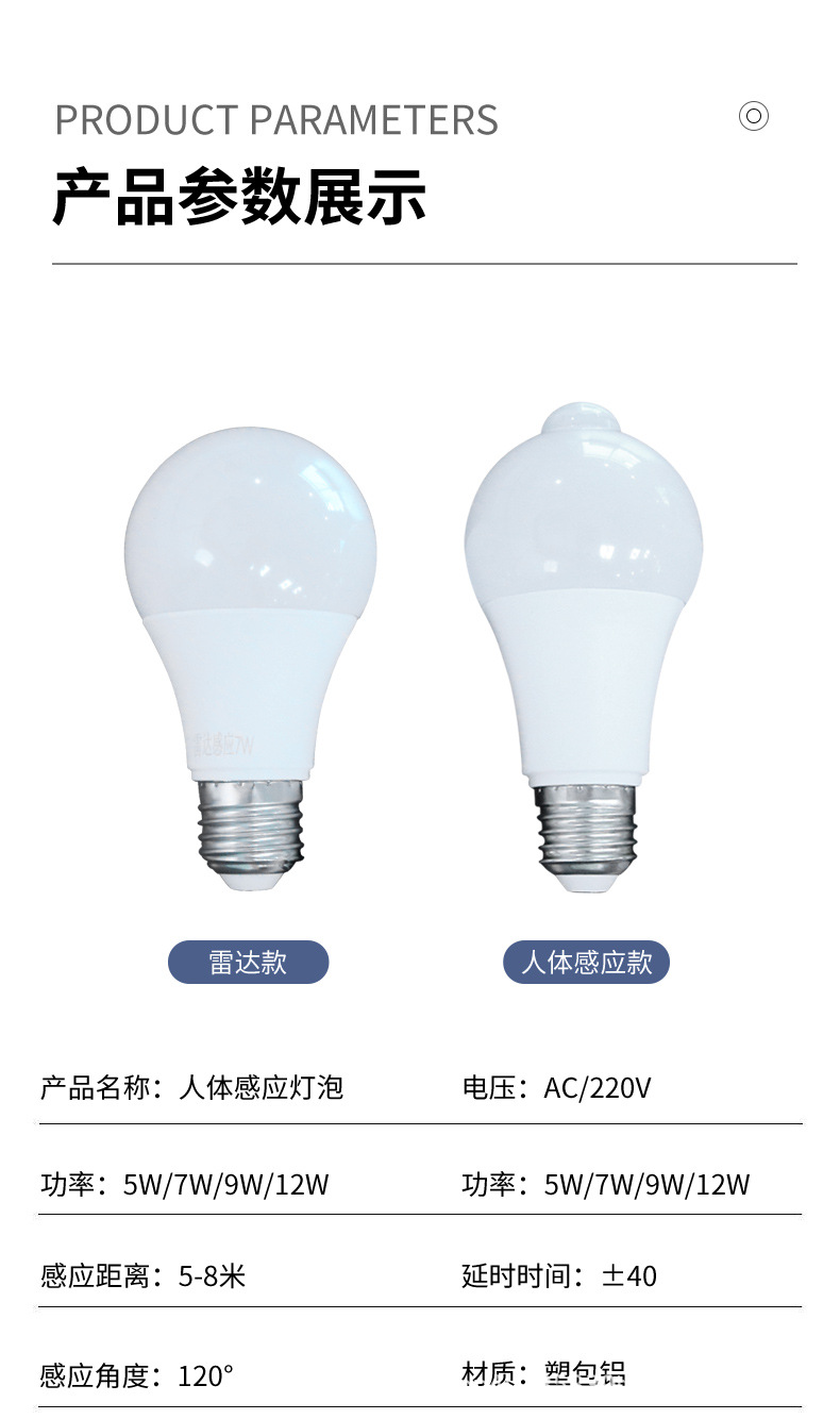 感应灯泡5w 感应灯泡人走灯灭