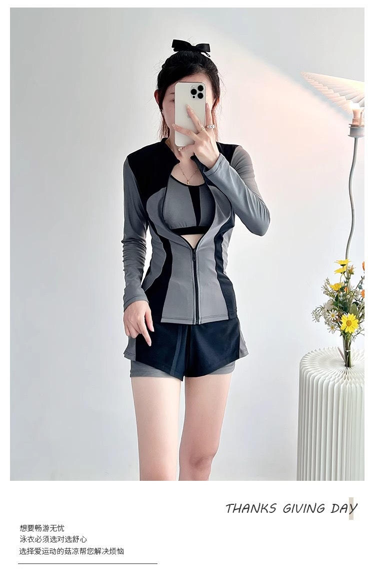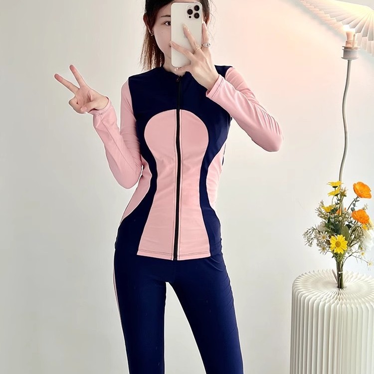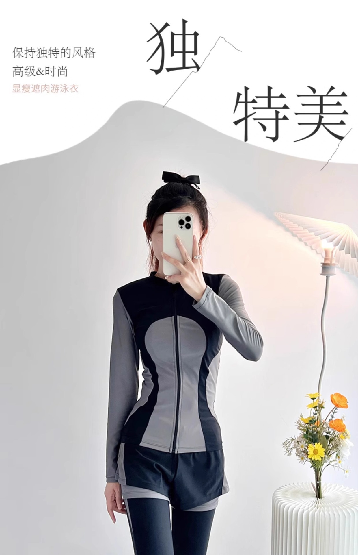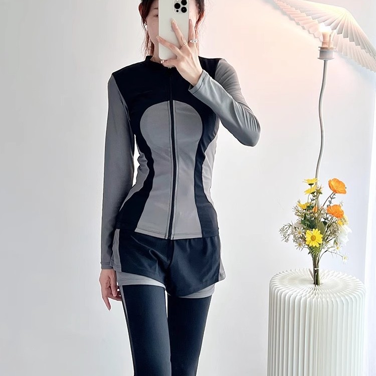 스포츠 분할 수영복 여성 여름 새로운 보수 고기 커버 슬리밍 긴 소매 태양 보호 온천 전문 수영복 도매스토어 가기