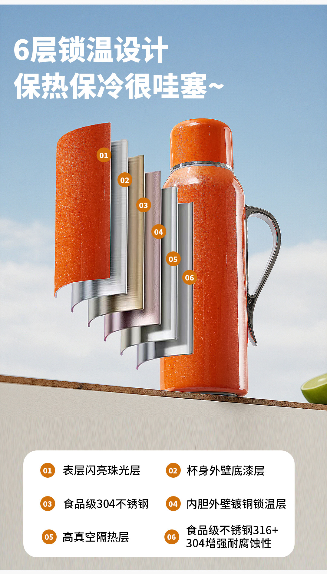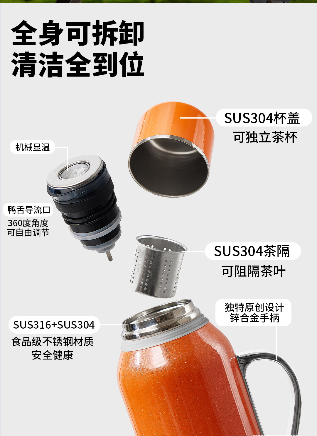 맞춤형 316 스테인리스 차 주전자, 야외용 대용량 휴대용 차 컵, 가정용 보온병, 차 끓이기용 컵