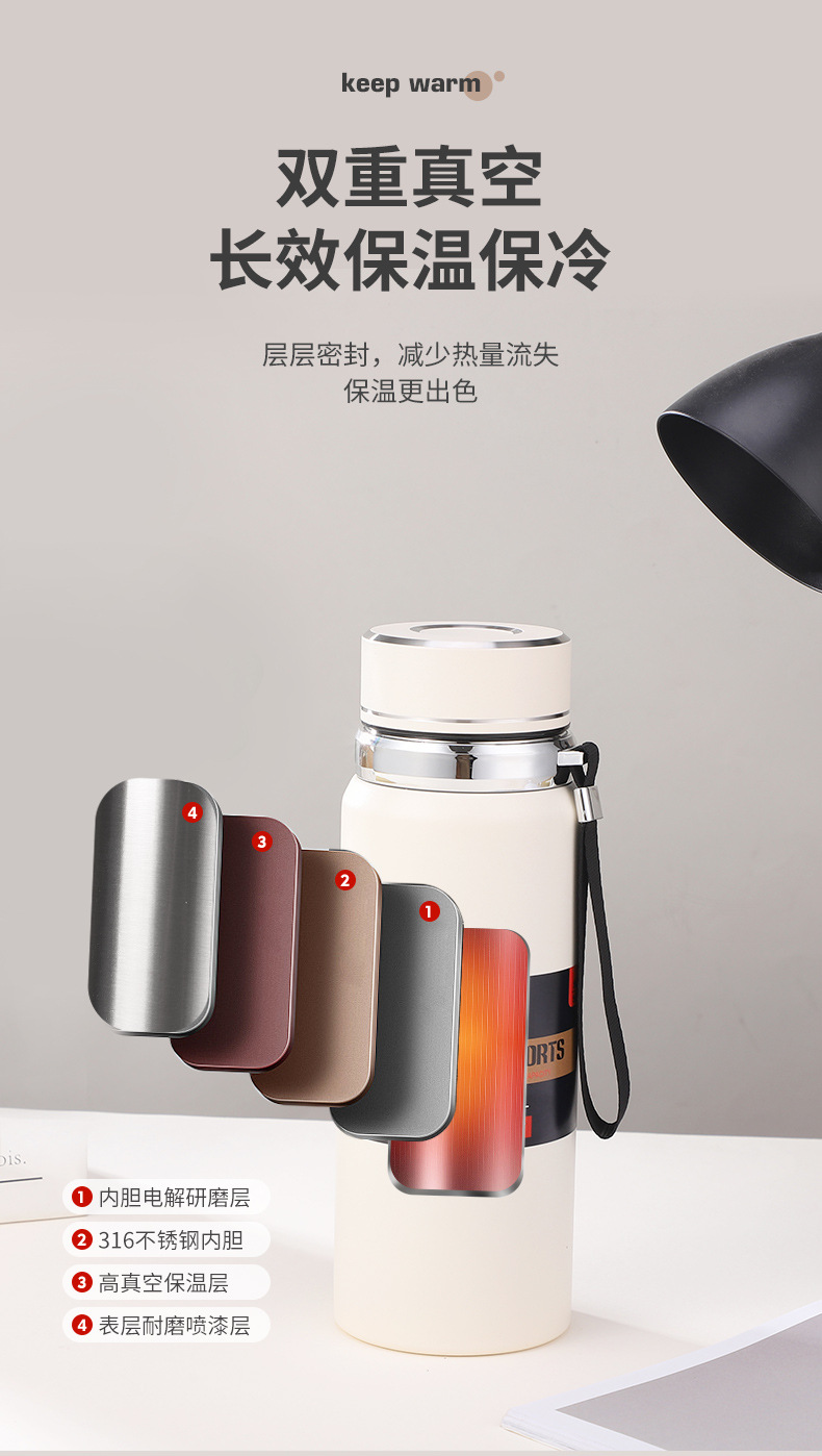 316 스테인레스 스틸 보온병 컵 사업 대용량 야외 휴대용 슬링 스포츠 냄비 남자 태양 냄비 조각 로고