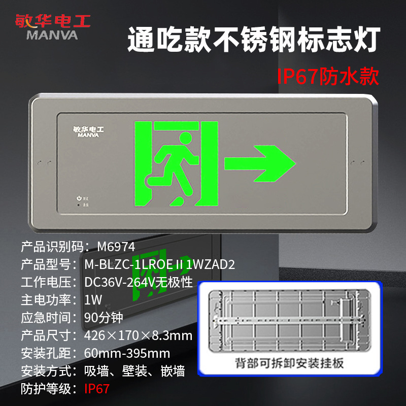 • IP67 만능 스테인리스 사인등 [안전출구] M6972