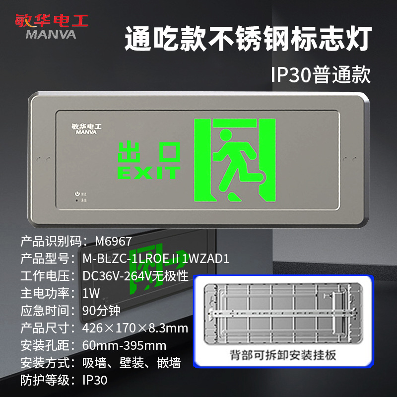 민화 스테인리스 표지등 벽걸이형 다용도 화재 안전 출구 표지등 도매 비상등
