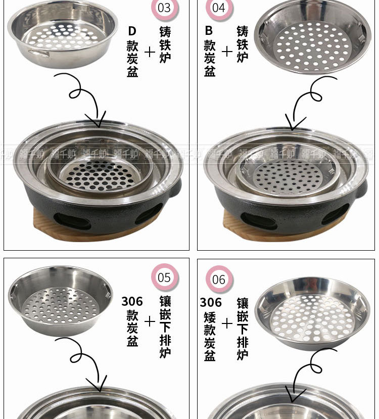 오븐 범용 숯 분지 구식 탄소 오븐 스몰 사이즈 상부 및 하부 연기 배기 숯 오븐 한국식 숯 오븐 두껍게 한 조각 큰 크기스토어 가기