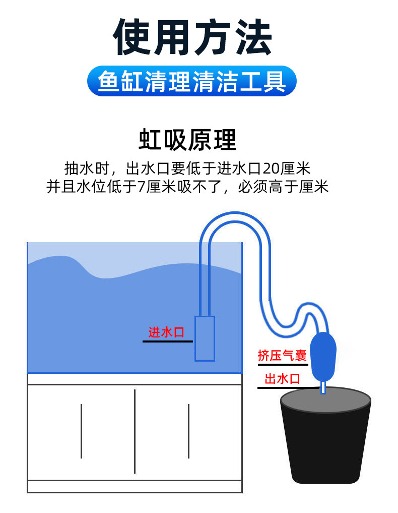 물고기 탱크 물 교환기 흡입 화장실 물 변경 유물 청소 흡입관 물 흡수 물고기 분뇨 수동 사이펀 탱크 파이프스토어 가기