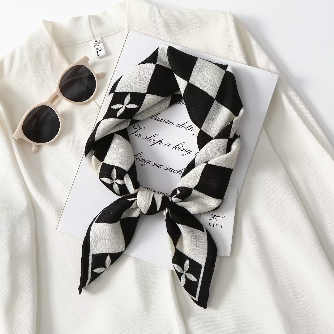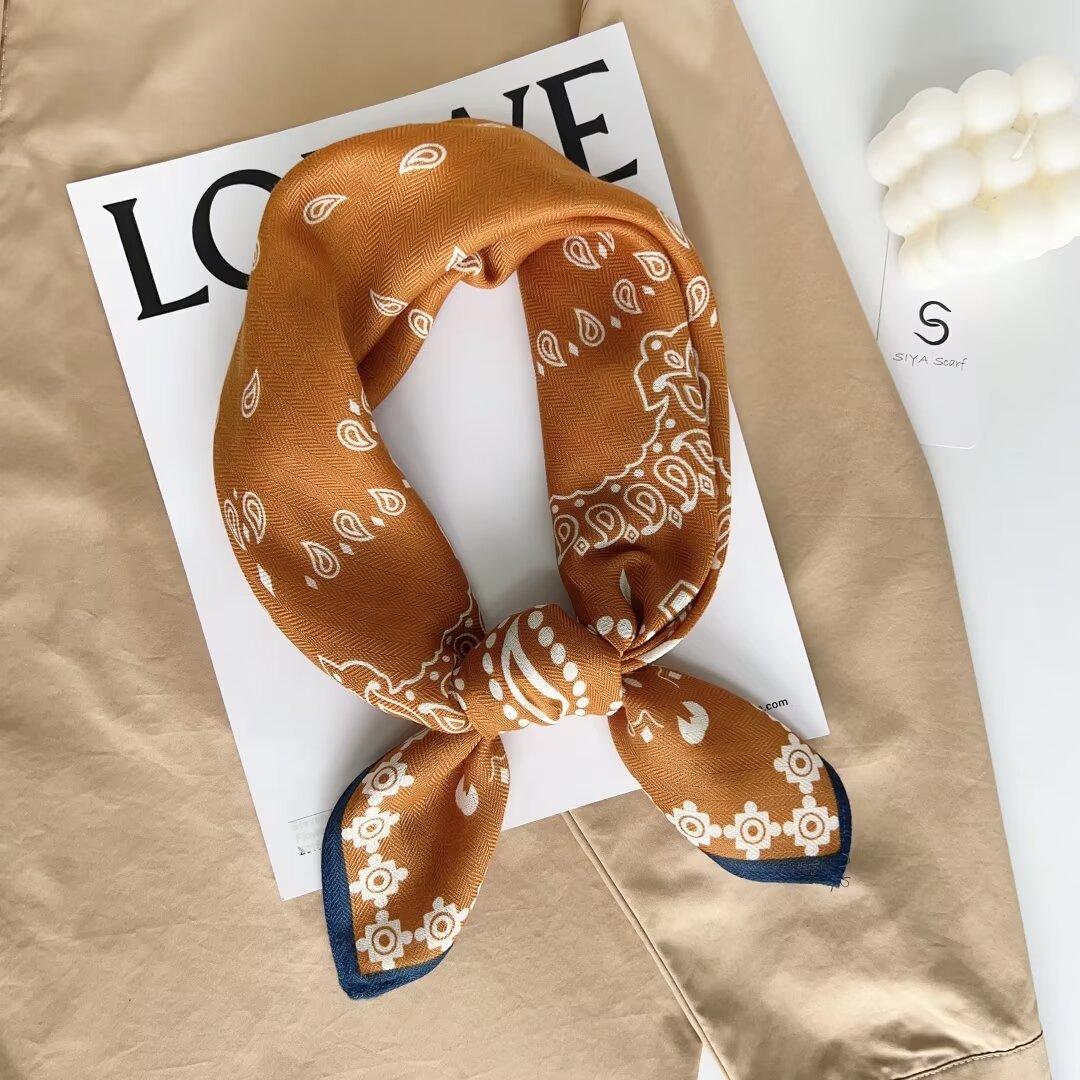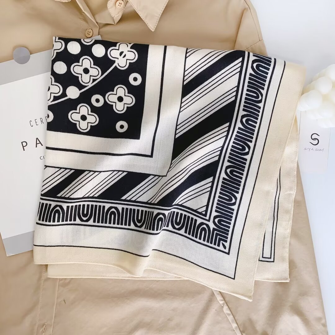 봄과 가을 68cm 면 린넨 손 느낌 작은 광장 스카프 여성 한국 스타일 패션 실크 스카프 전문 통근 스카프 선스크린 스카프