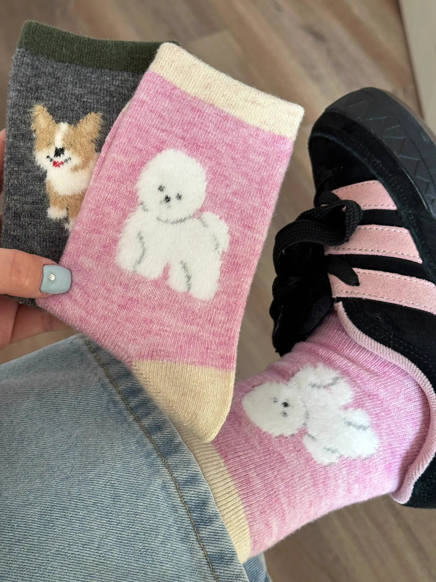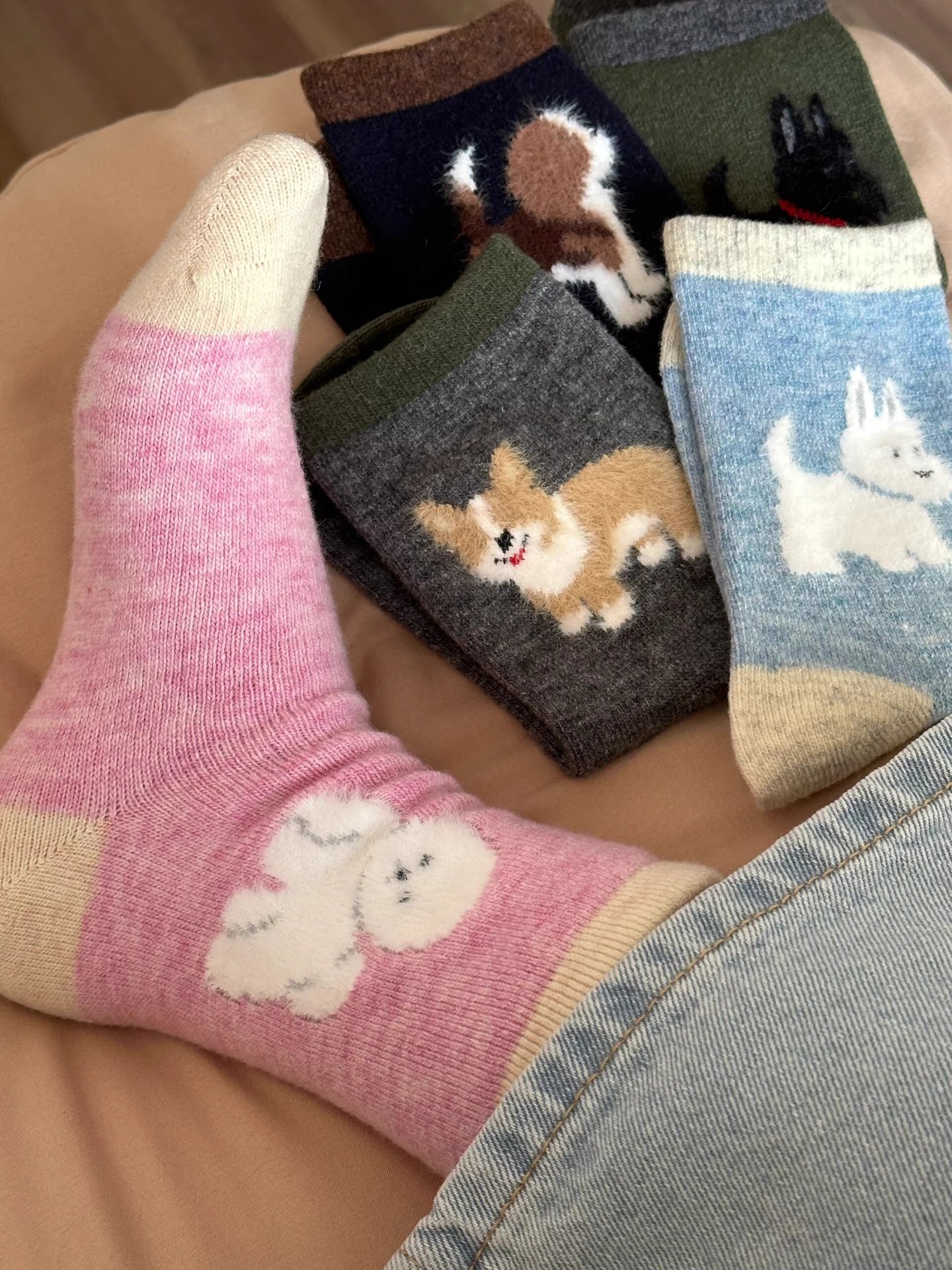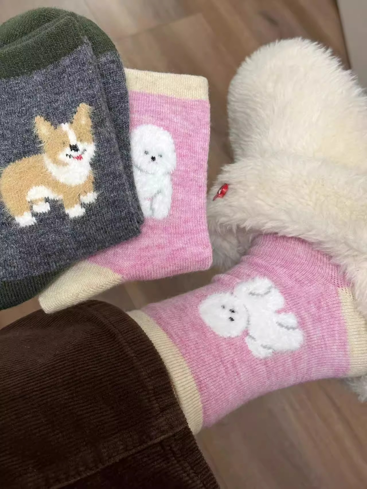 가을과 겨울 양모 3 차원 강아지 한국 유행 양말 뼈없는 모직 따뜻한 양말 여성 양말 대조적 인 색상 쌓인 양말