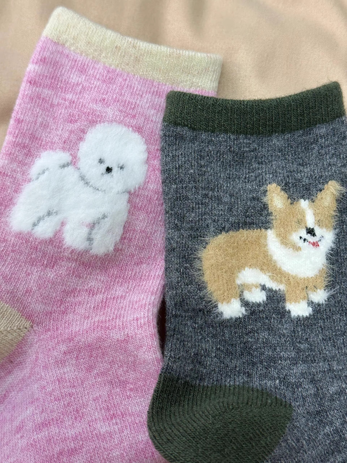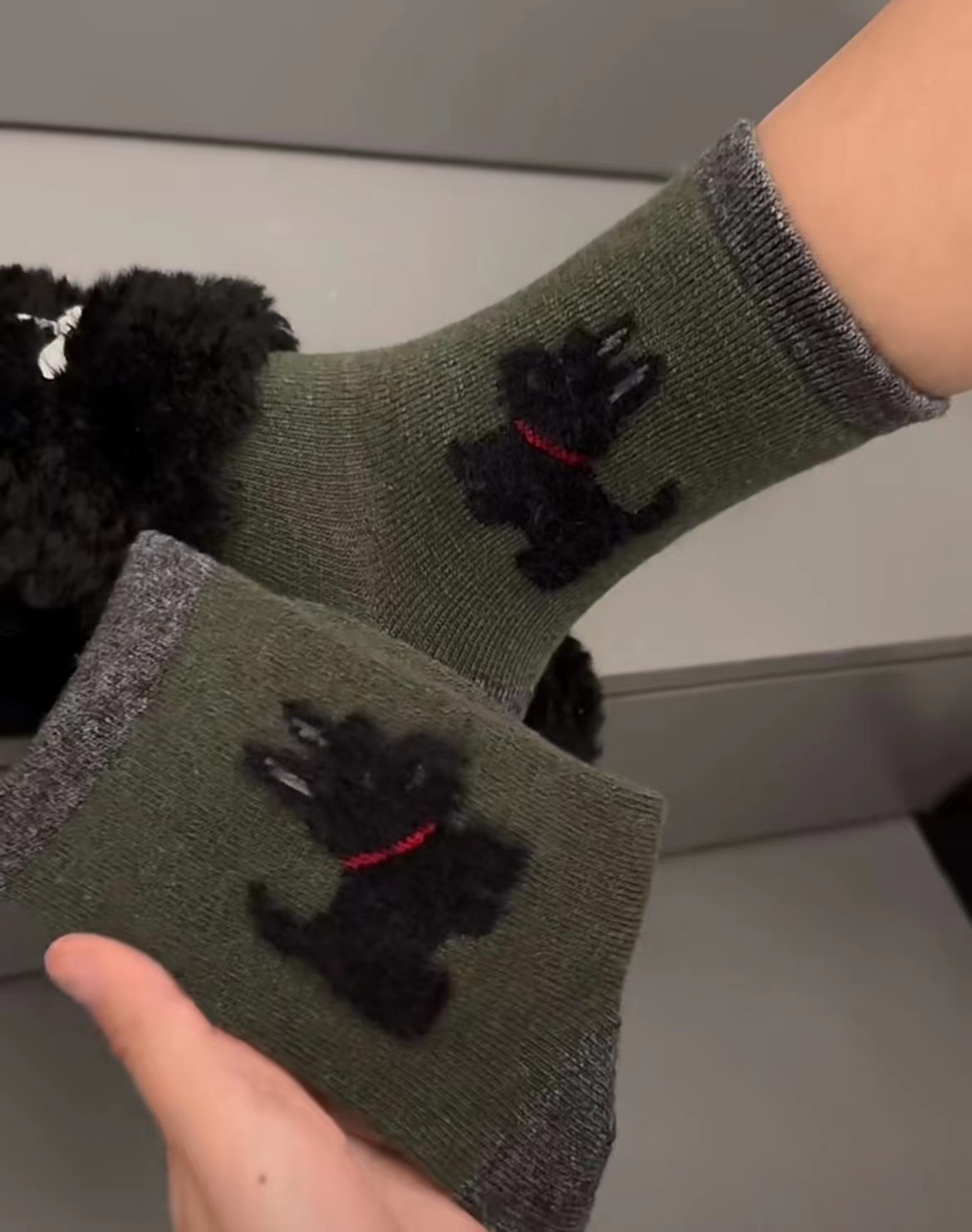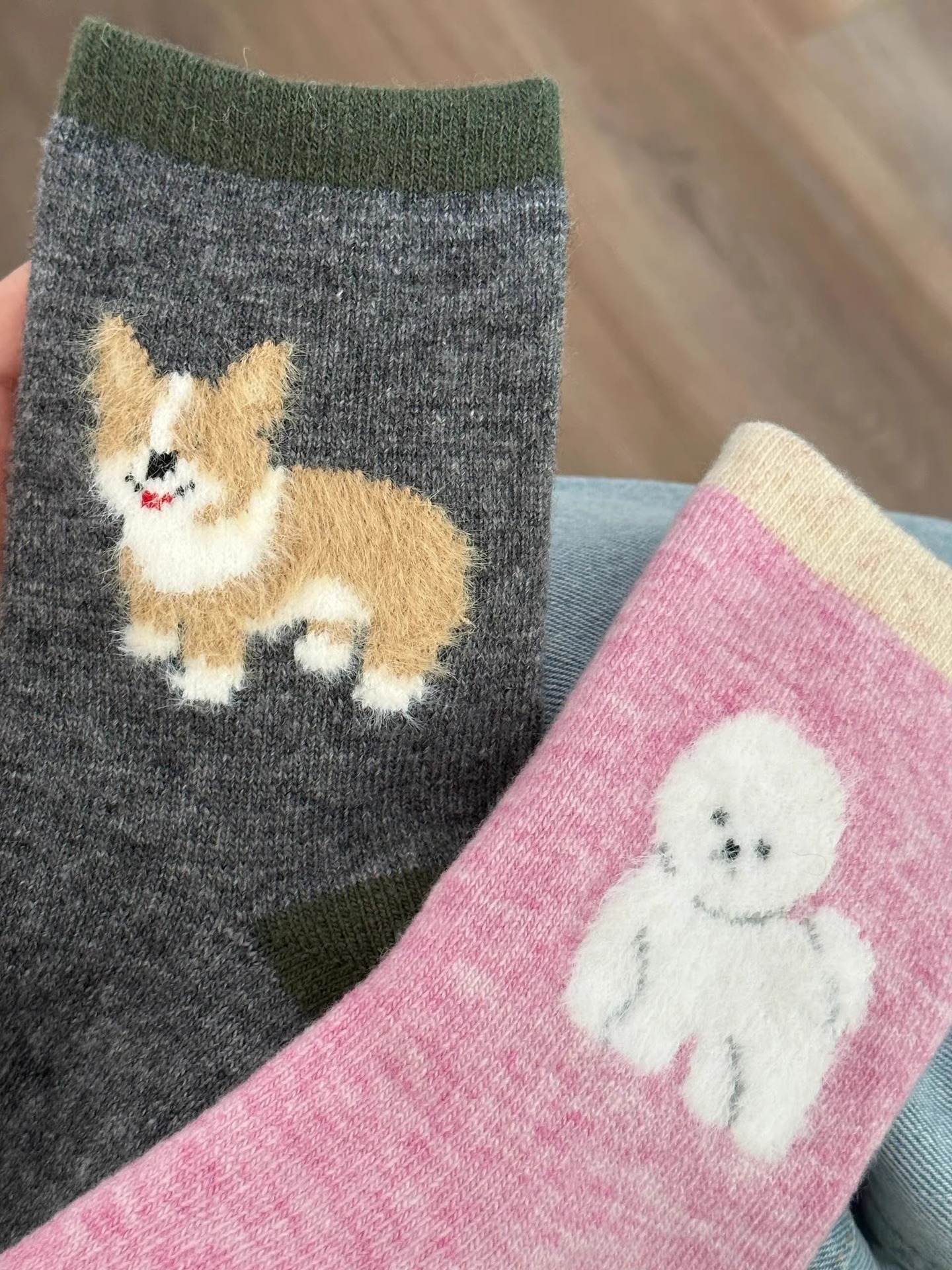 가을과 겨울 양모 3 차원 강아지 한국 유행 양말 뼈없는 모직 따뜻한 양말 여성 양말 대조적 인 색상 쌓인 양말