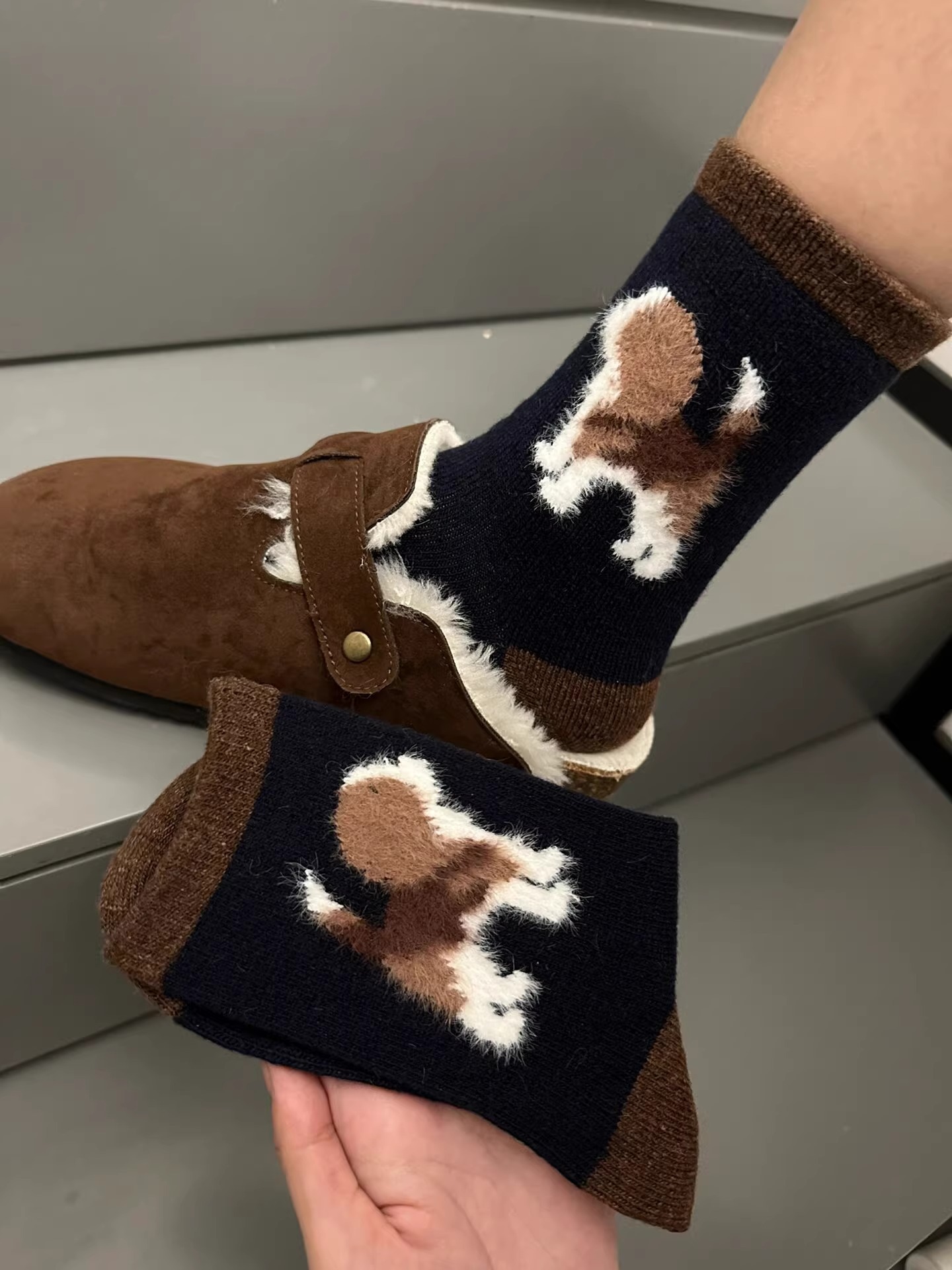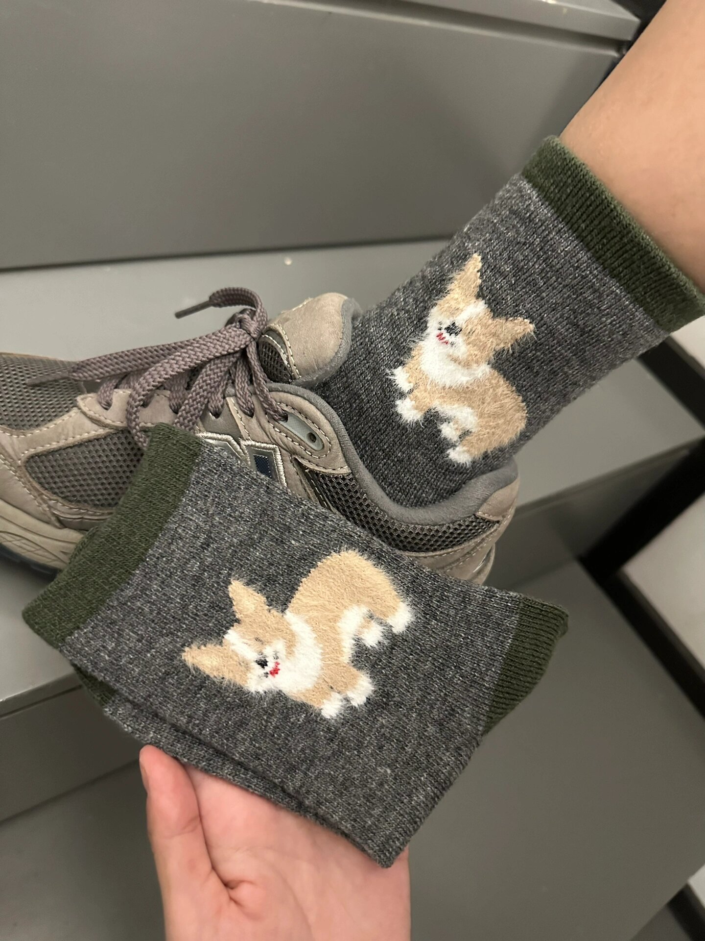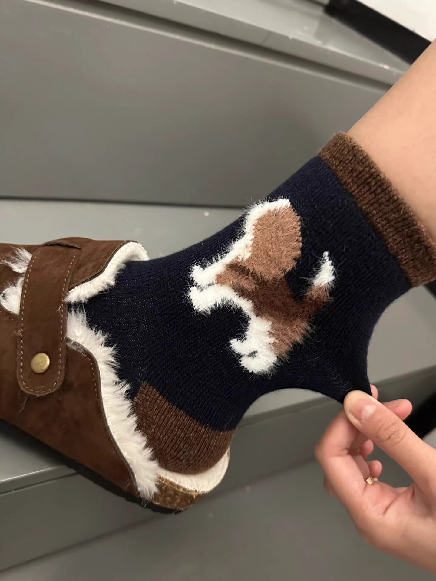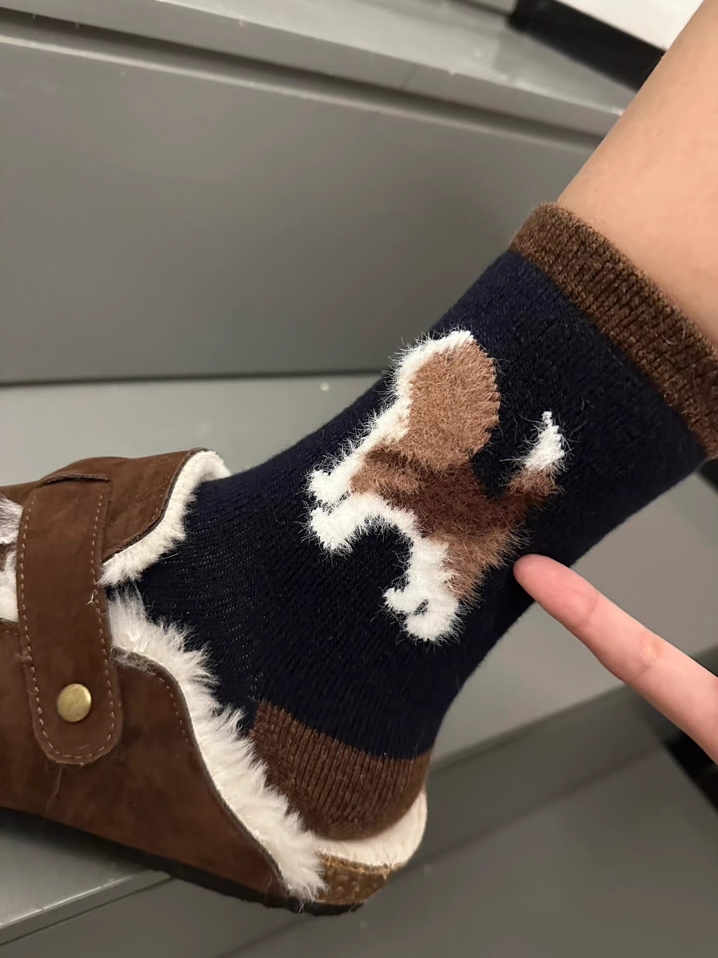 가을과 겨울 양모 3 차원 강아지 한국 유행 양말 뼈없는 모직 따뜻한 양말 여성 양말 대조적 인 색상 쌓인 양말스토어 가기