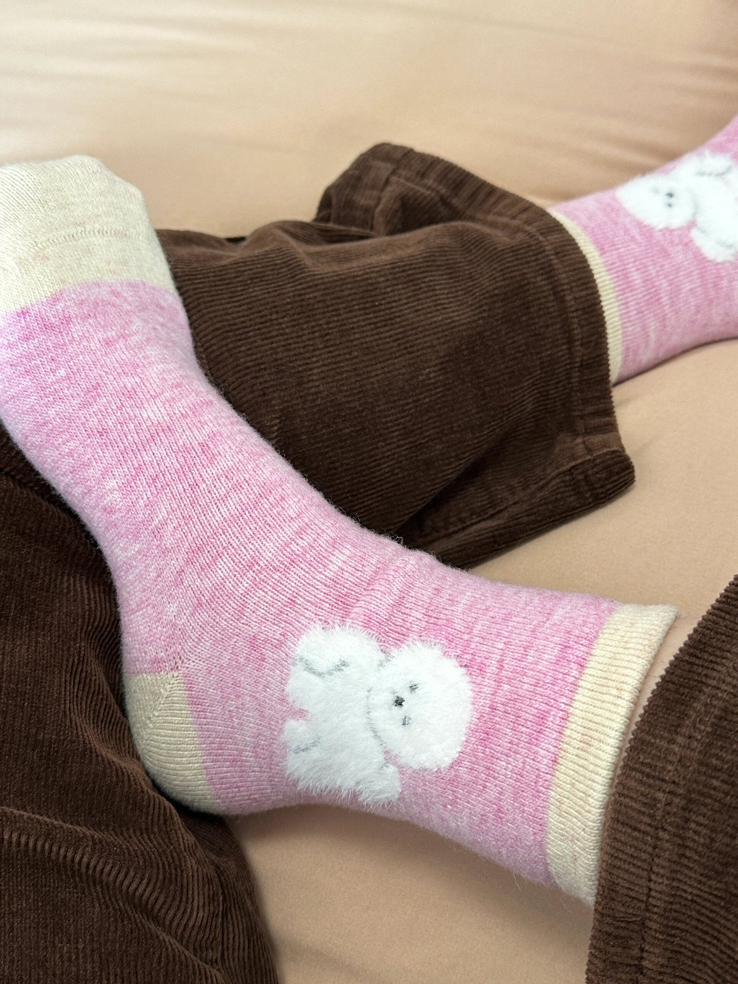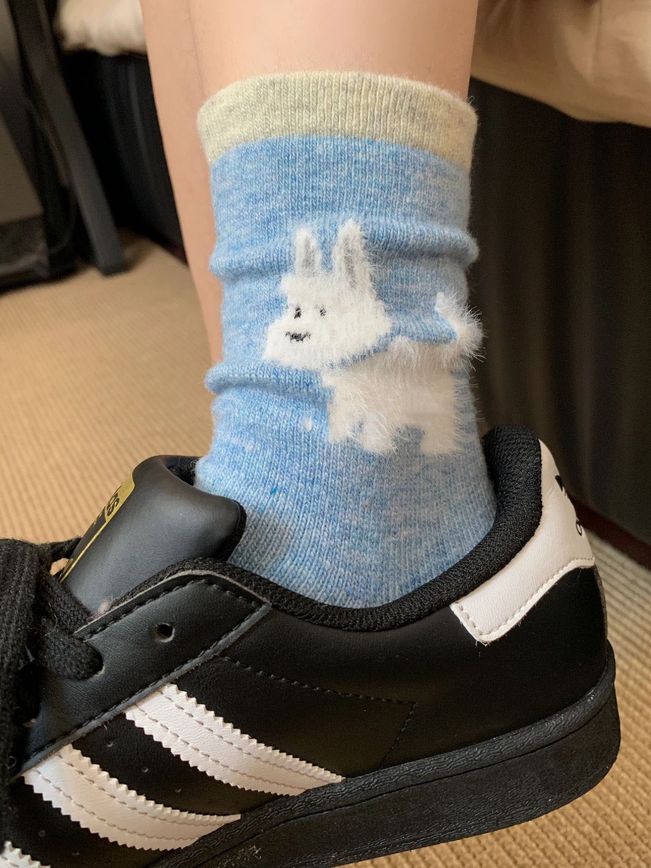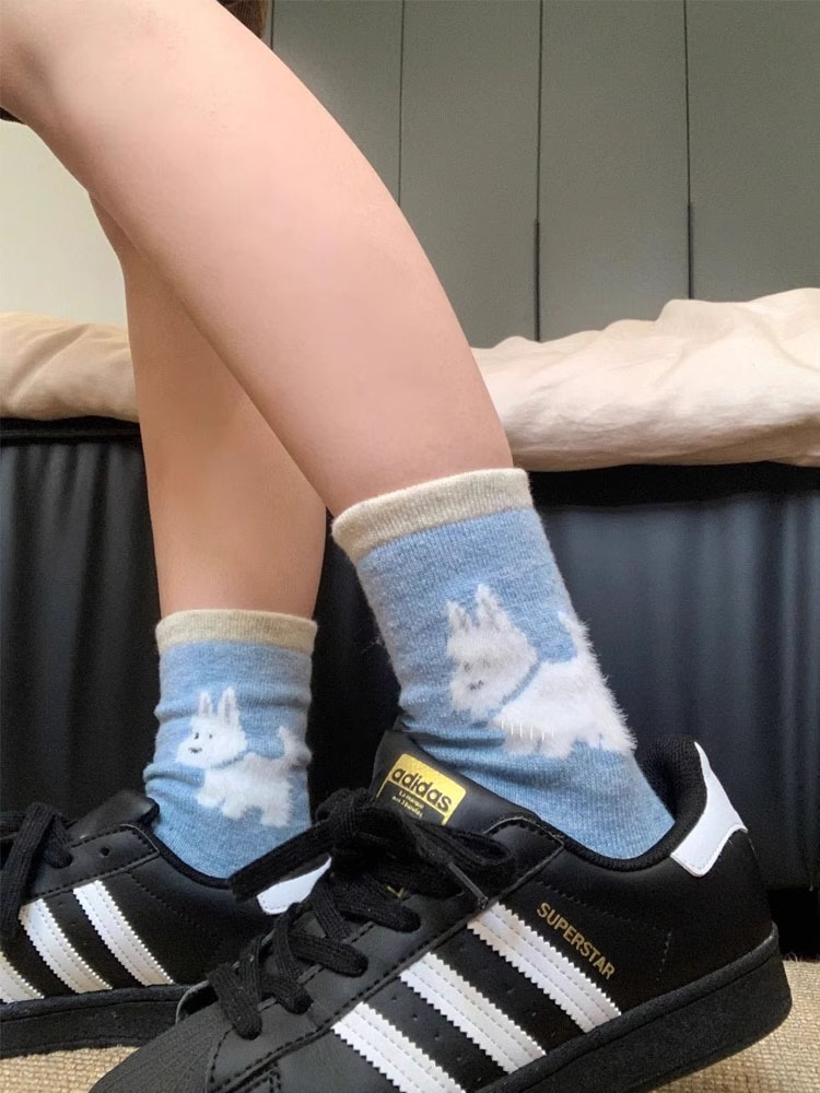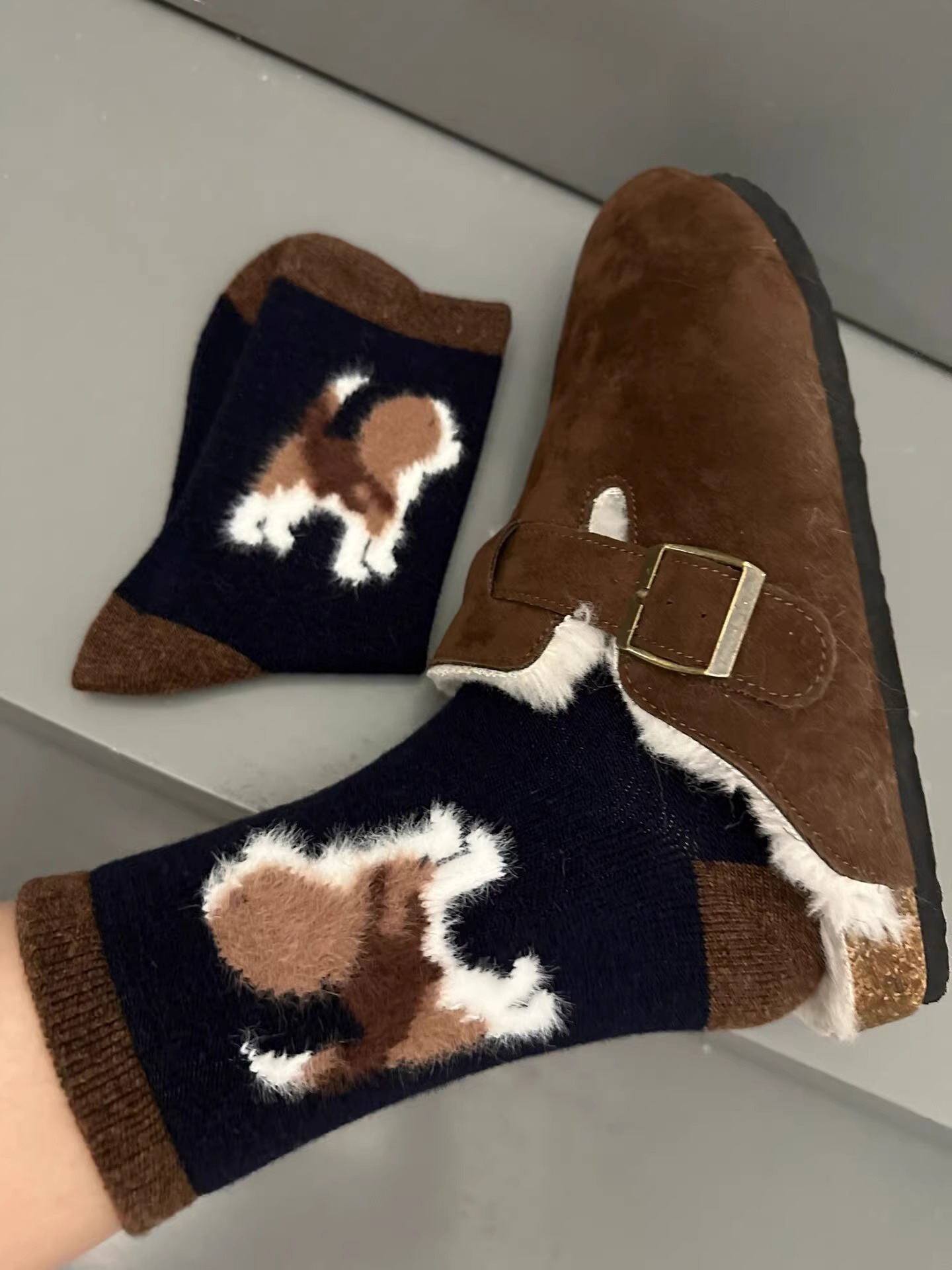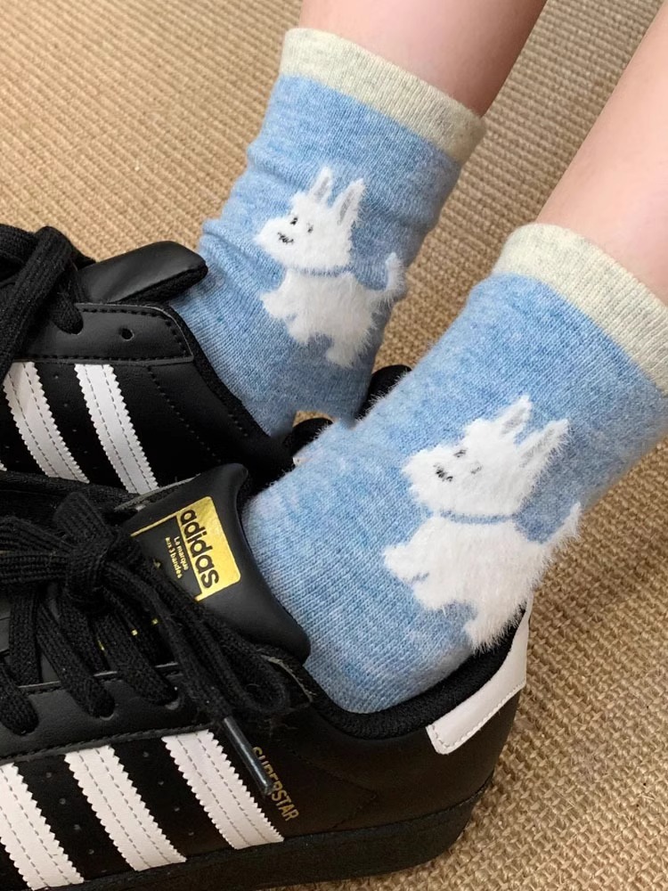 가을과 겨울 양모 3 차원 강아지 한국 유행 양말 뼈없는 모직 따뜻한 양말 여성 양말 대조적 인 색상 쌓인 양말스토어 가기