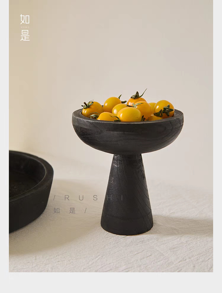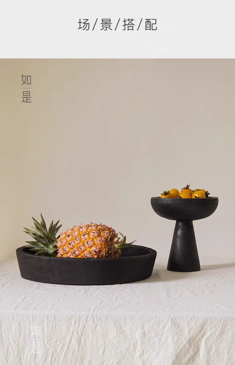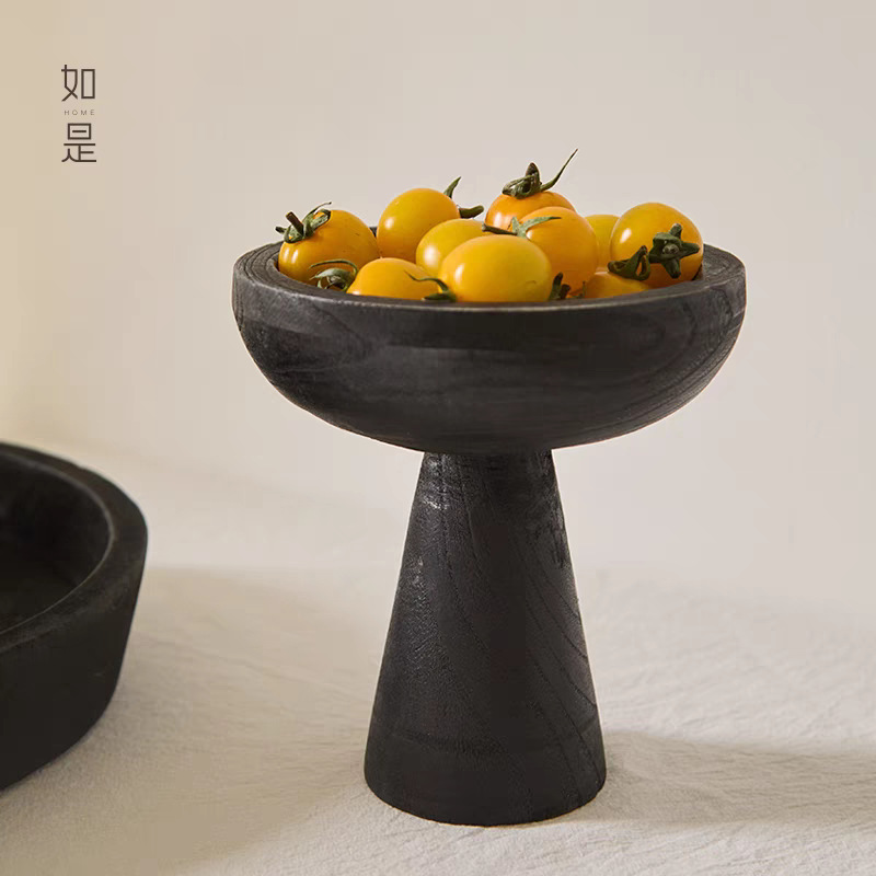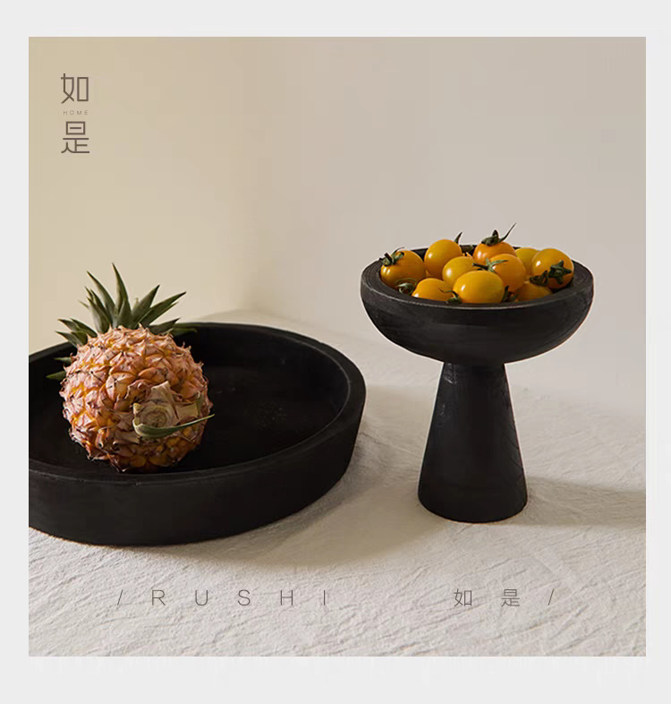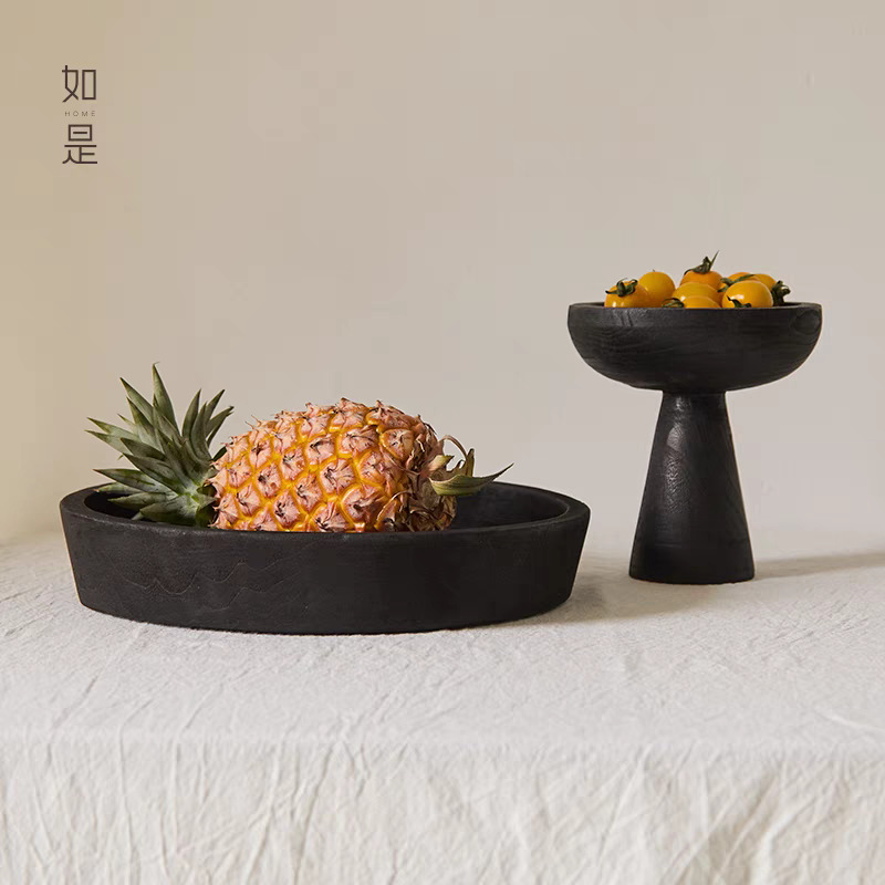 조용한 스타일 블랙 하이 피트 작은 과일 플레이트 빈티지 오래 된 마른 과일 플레이트 솔리드 우드 트레이 나무 과일 플레이트 장식품스토어 가기