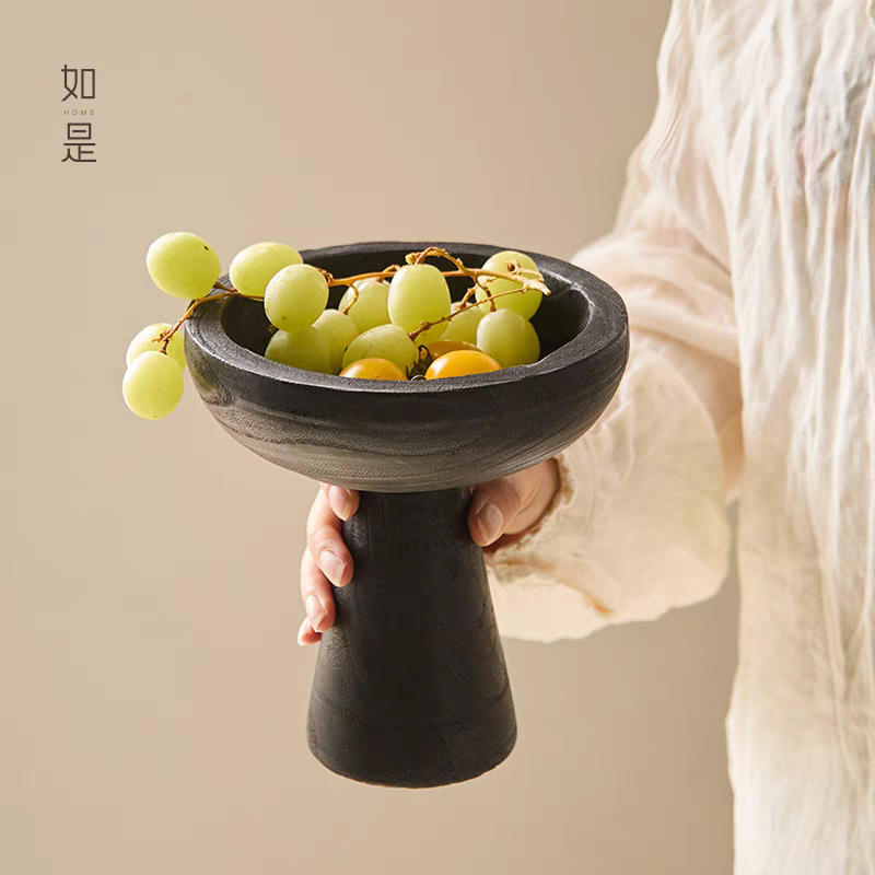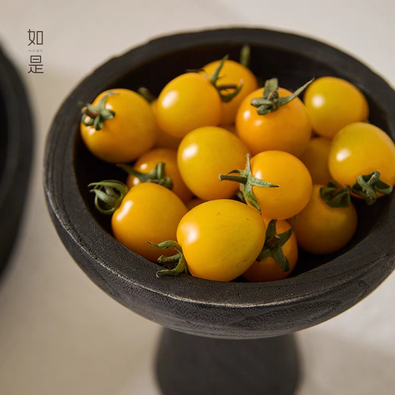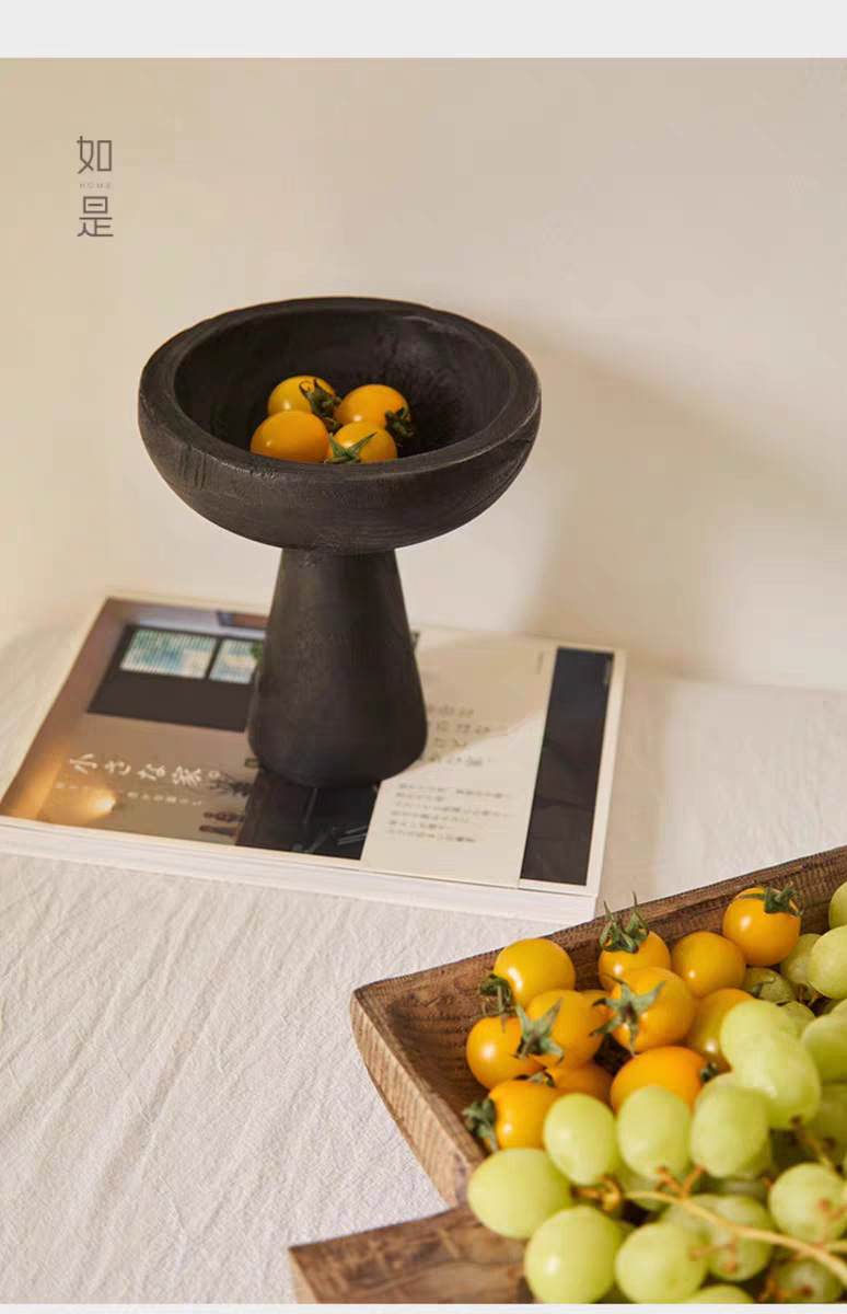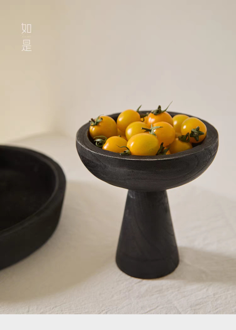조용한 스타일 블랙 하이 피트 작은 과일 플레이트 빈티지 오래 된 마른 과일 플레이트 솔리드 우드 트레이 나무 과일 플레이트 장식품스토어 가기